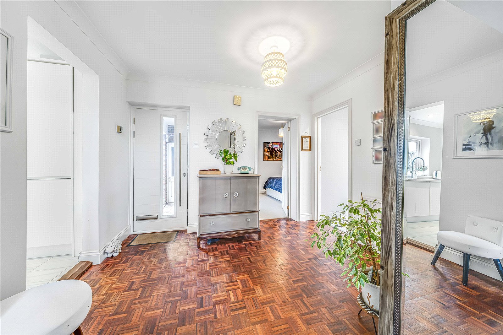 - Large welcoming entrance hall with parquet flooring.