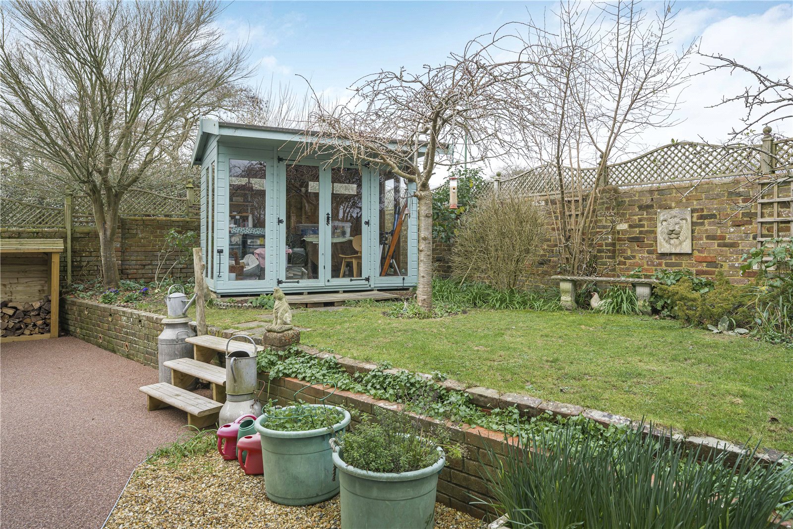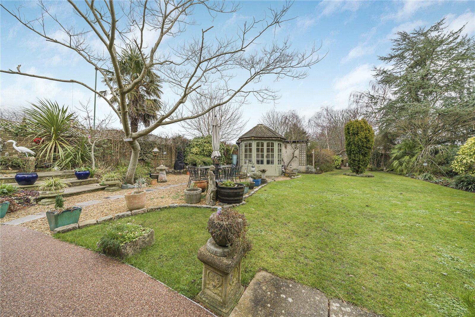 The grounds include a studio outbuilding and two charming summer houses, ideal for relaxation or hobbies. Additionally, there is ample off-road parking and a generously sized double garage to complete this attractive outdoor space.