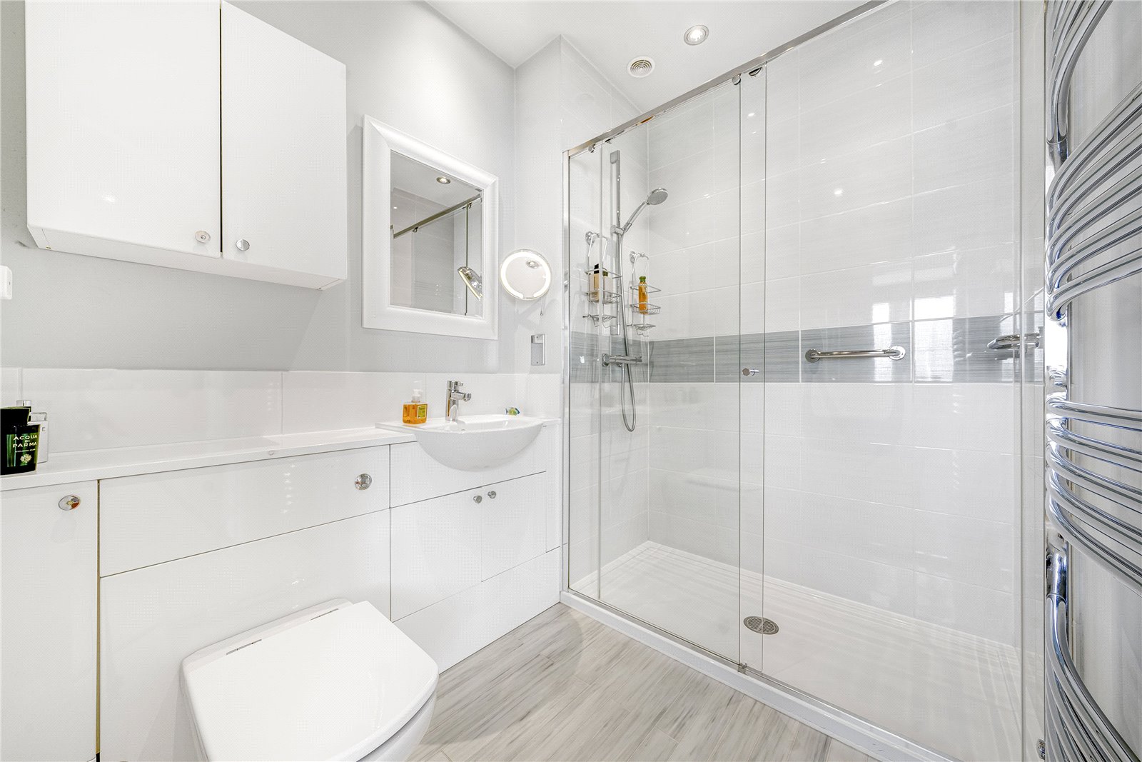 The second-floor hosts three further bedrooms. The light and airy principal bedroom benefits from a stylish ensuite, while the remaining two bedrooms share an elegant shower room. One of these rooms is currently used as a dressing room, featuring fitted drawers, hanging space, and access to a boarded loft for additional storage.