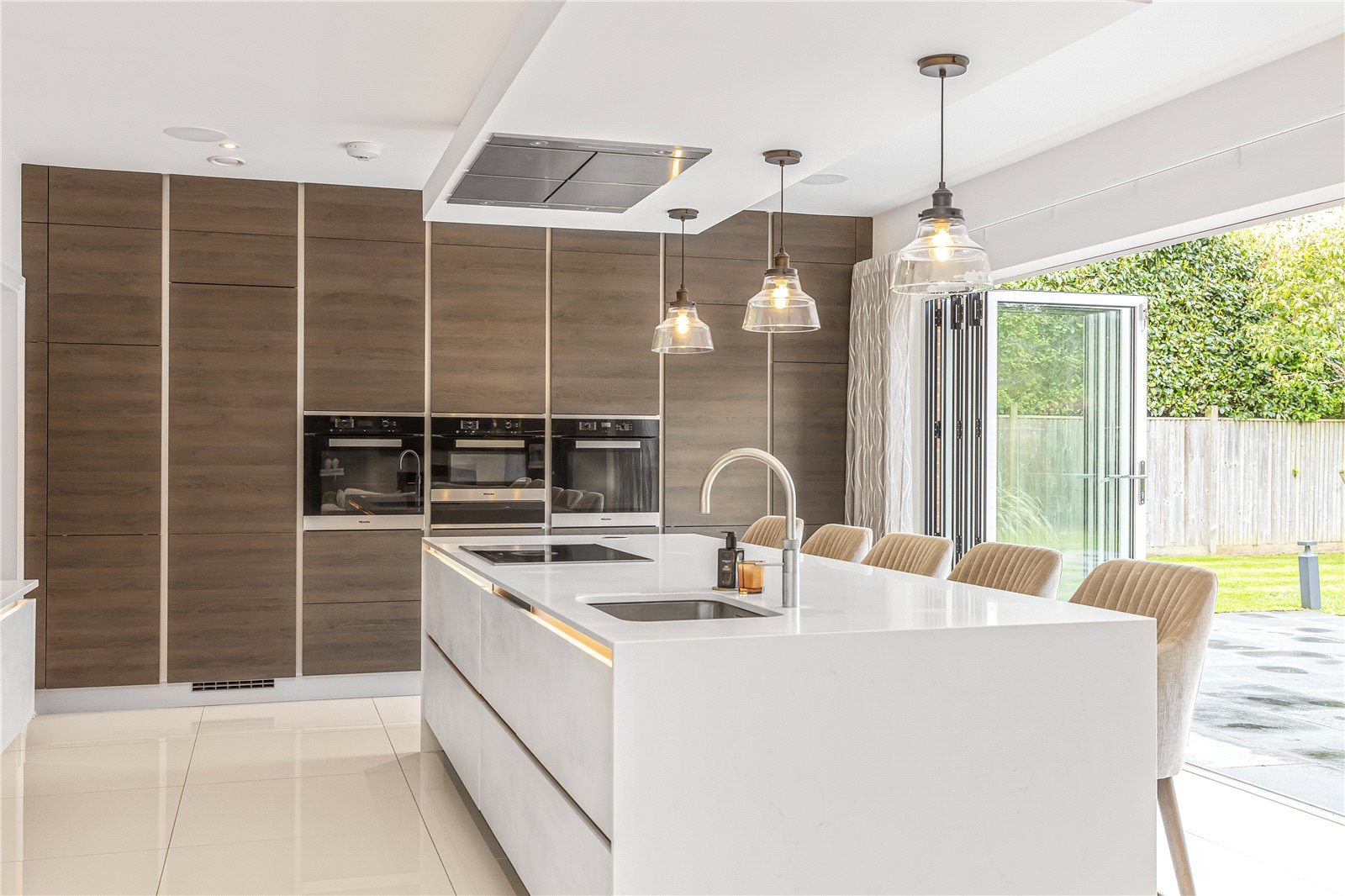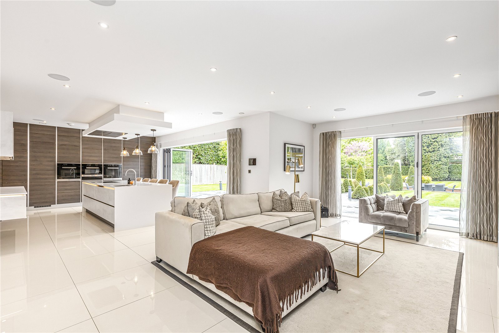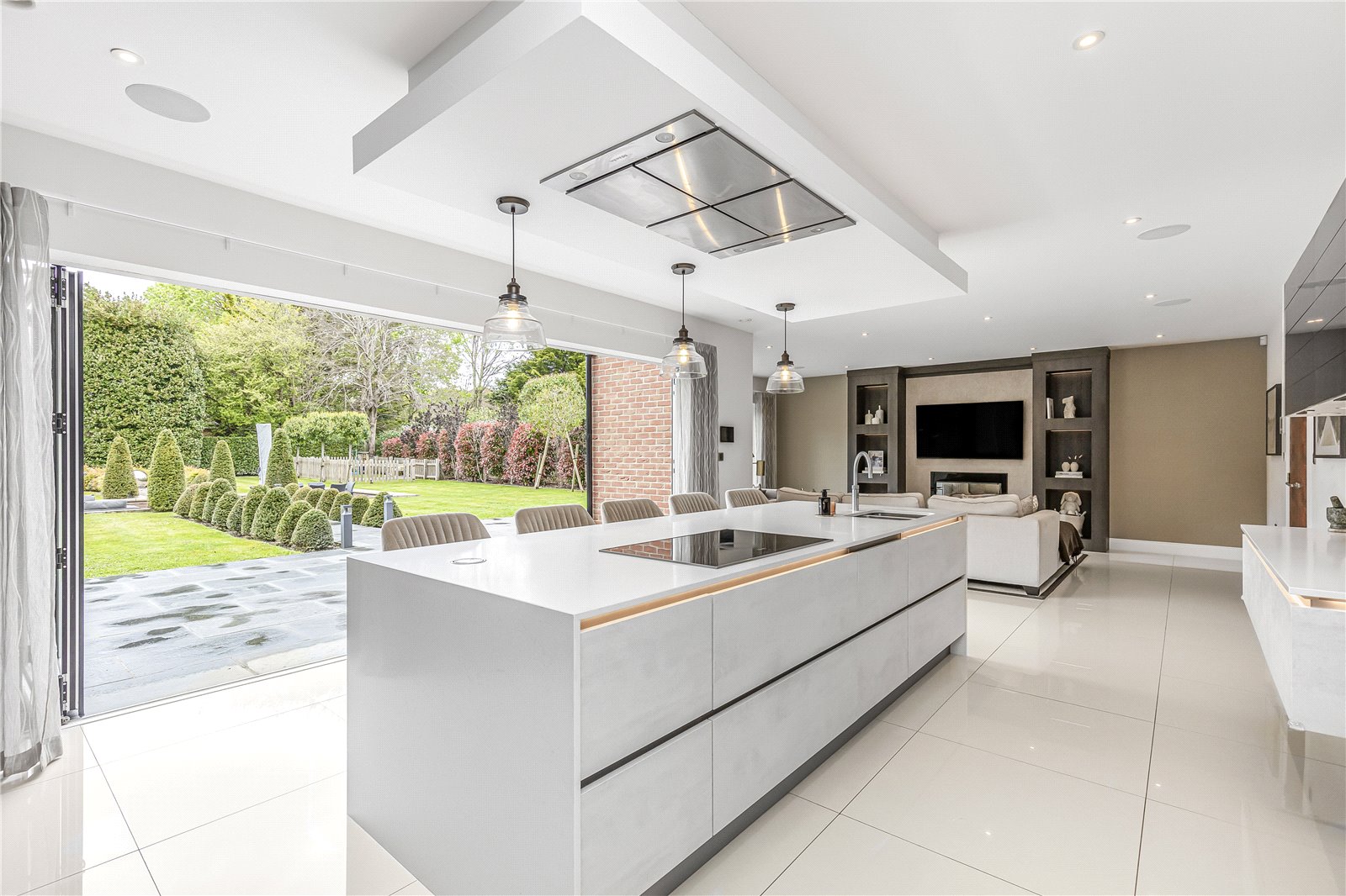 - Seamless indoor-outdoor flow via dual sets of bifold doors opening to a landscaped garden with stone terrace, sunken seating area and mature planting