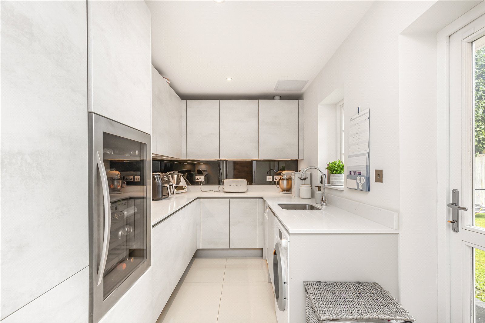 Adjacent, the utility room is equally well-appointed, offering laundry facilities, a wine cooler, a second Miele dishwasher, a separate freezer, and additional garden access — perfect for busy family life or effortless entertaining.