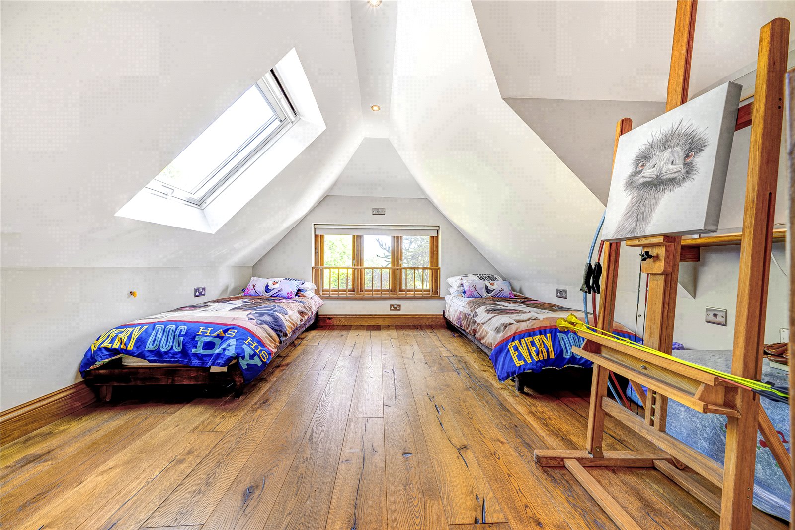 Upstairs the principal bedroom suite serves as a true sanctuary, featuring an ensuite bathroom with large Duravit roll top bath, walk-in shower, WC and a wash hand basin and an elegant mezzanine dressing area. In addition, there are three further bedrooms all of which benefit from en-suite shower rooms, ensuring comfort and privacy.