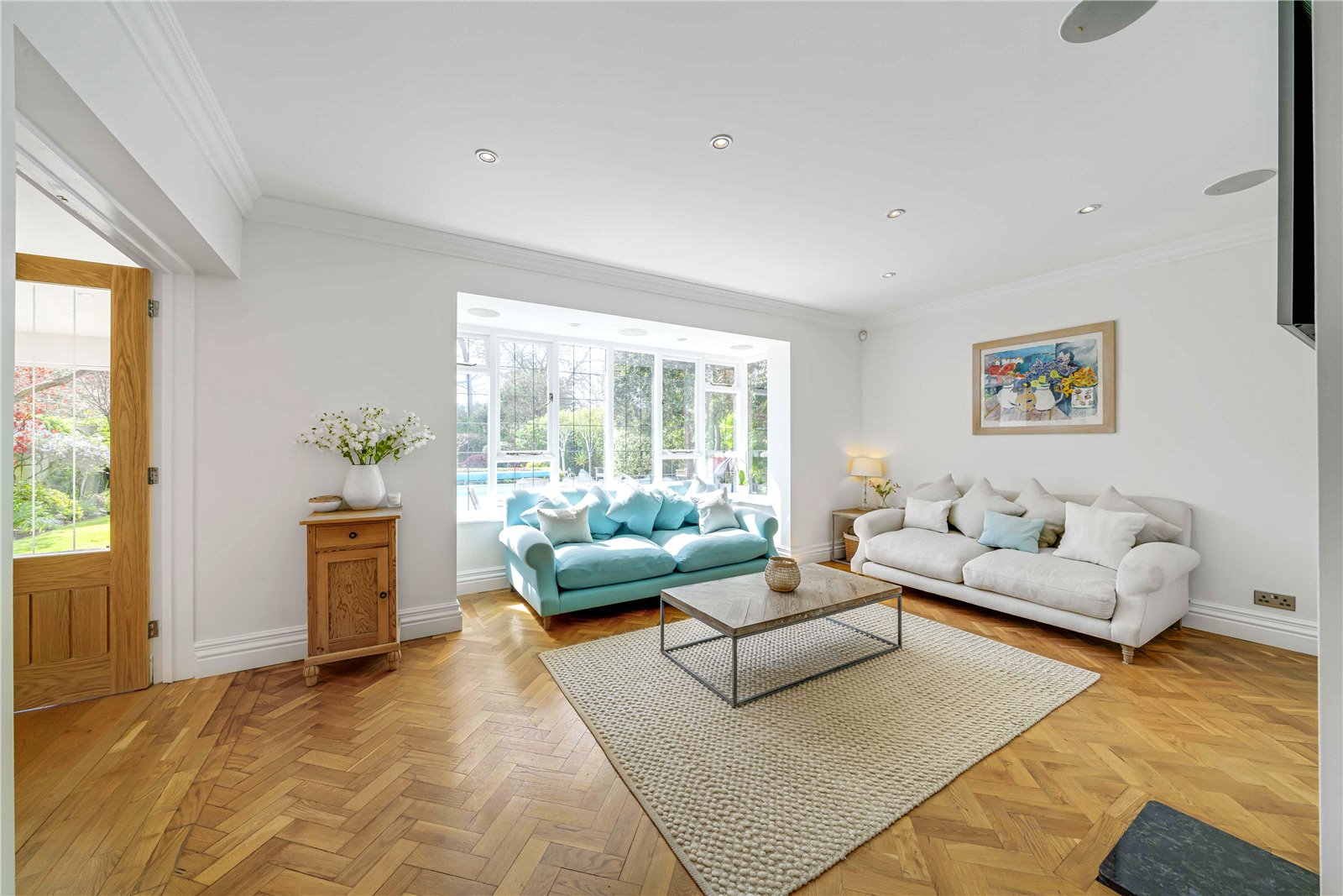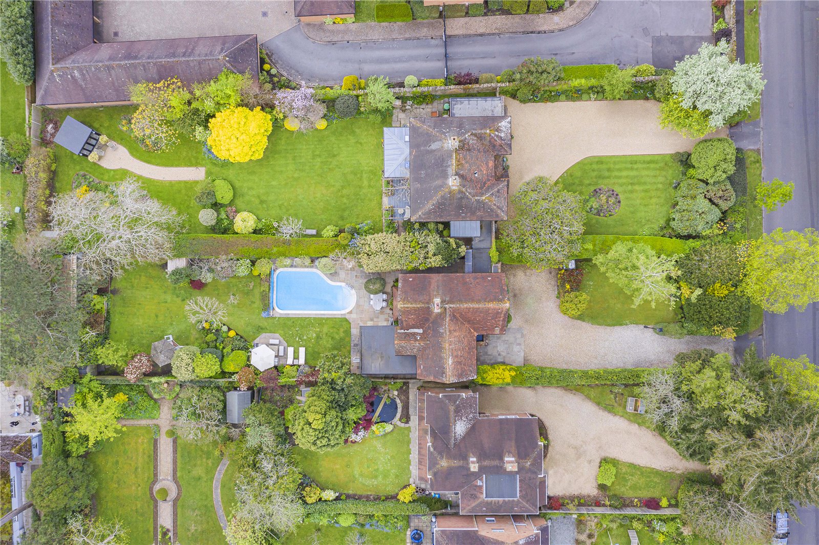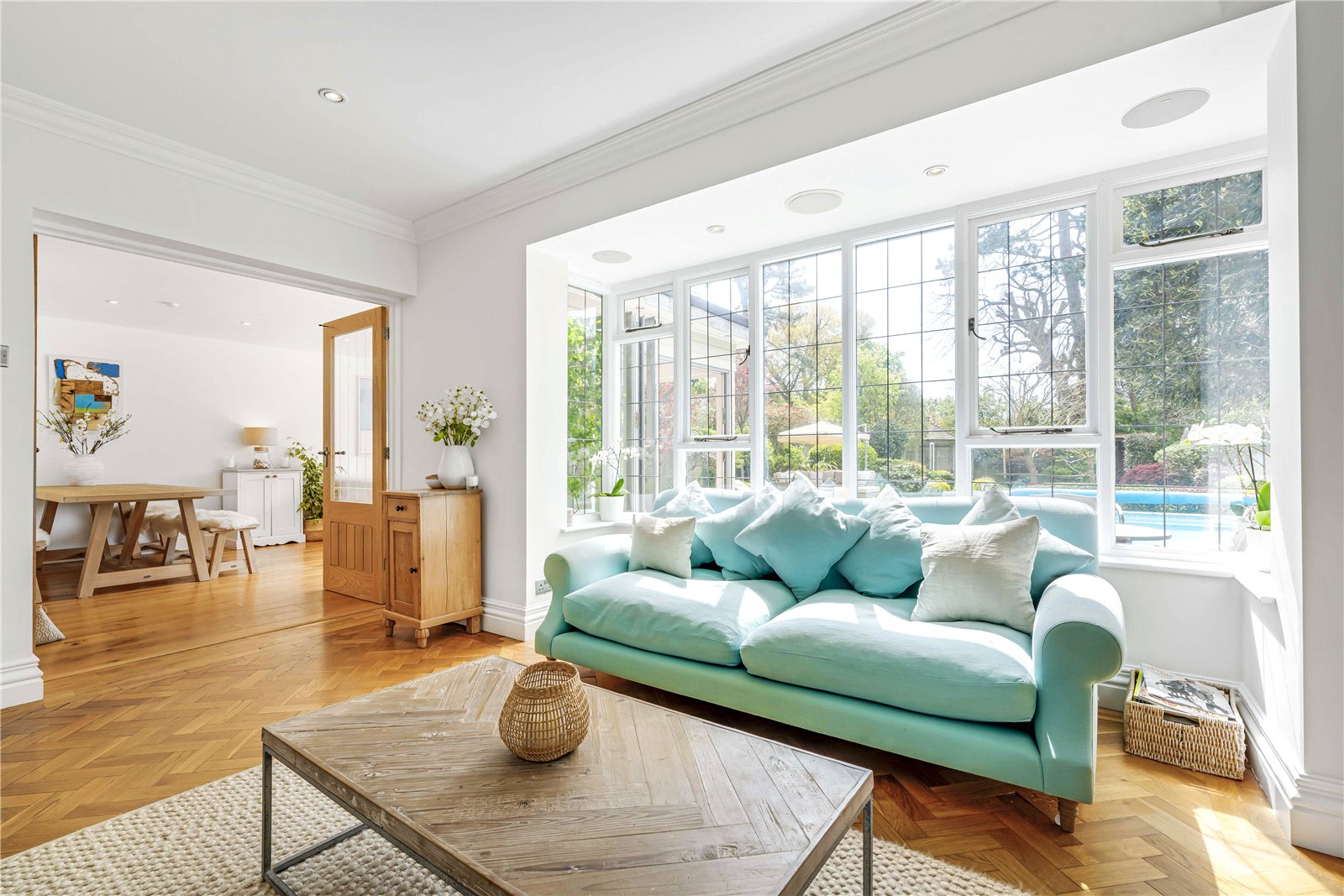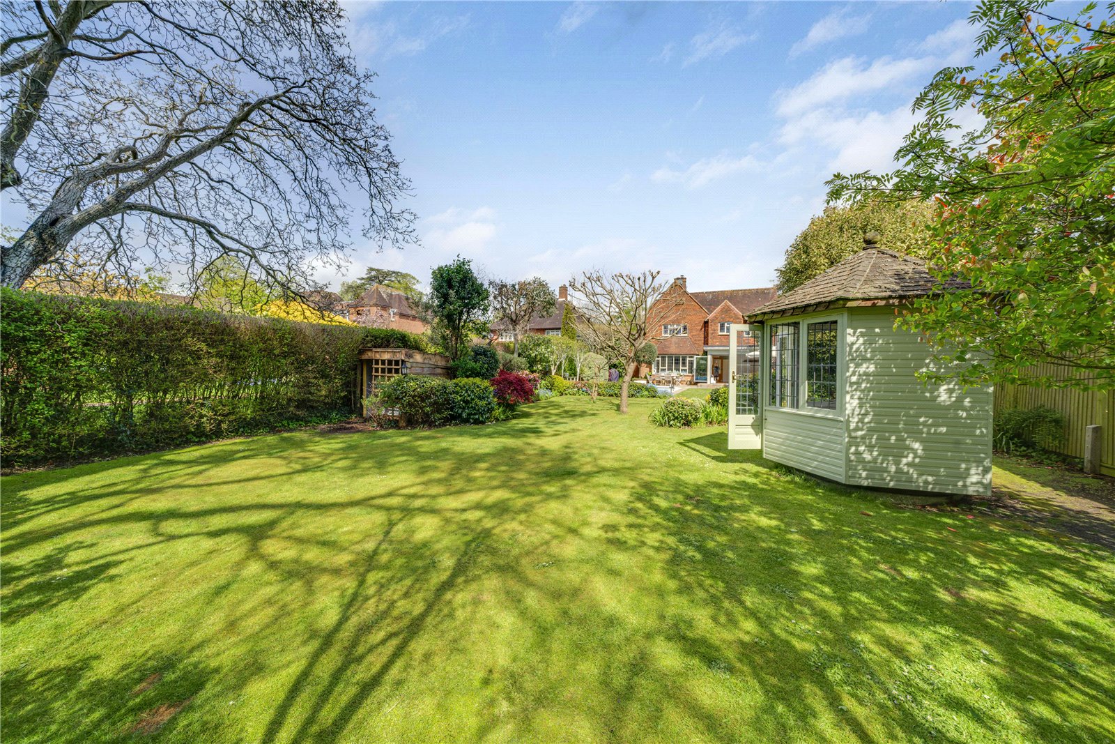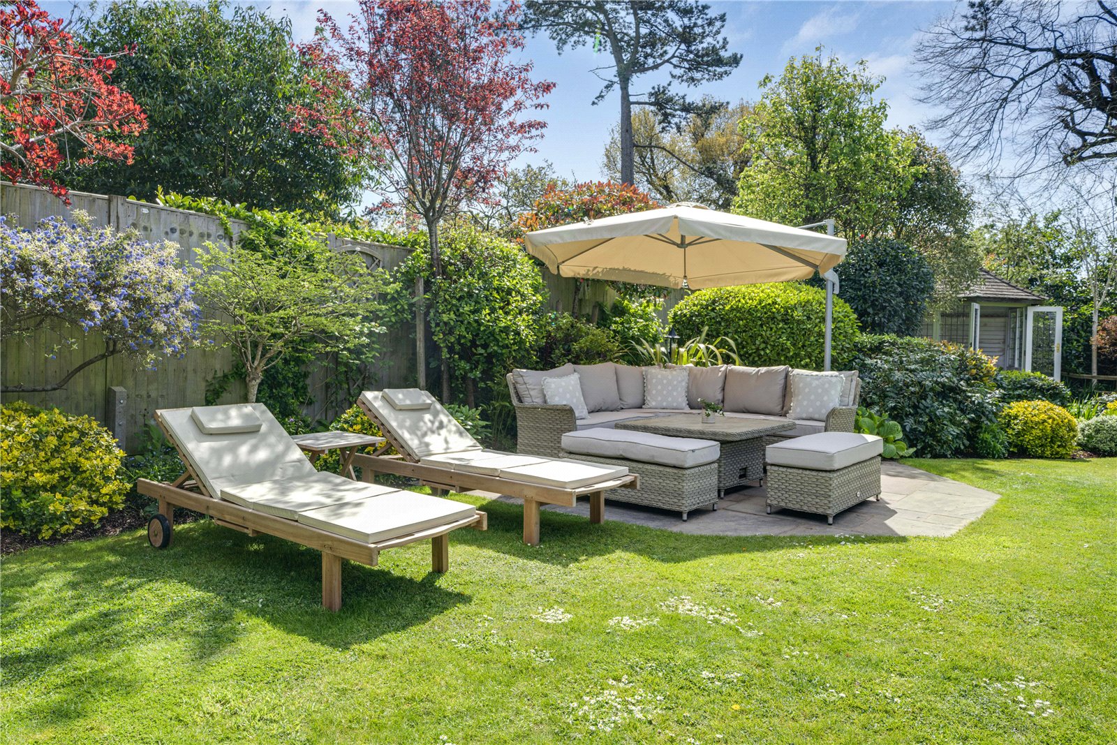 - South-facing rear garden with heated pool, Jacuzzi-style seating, lush lawns, and a revolving summerhouse.