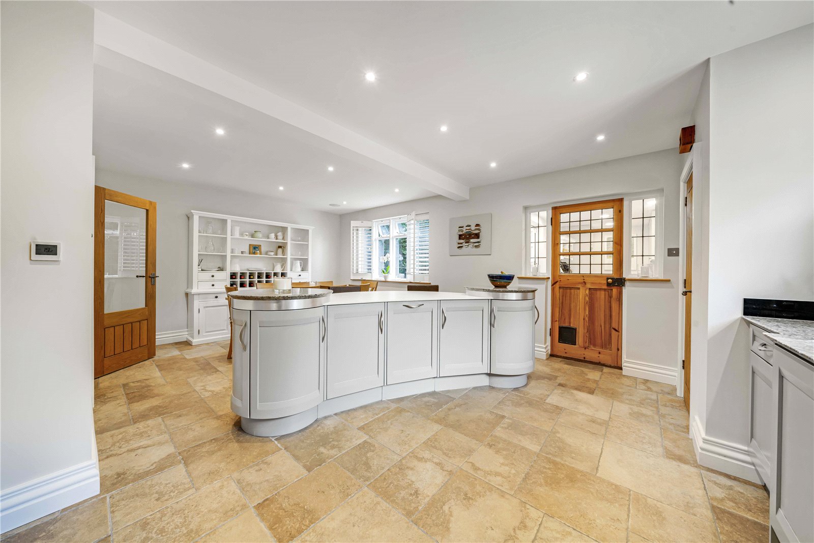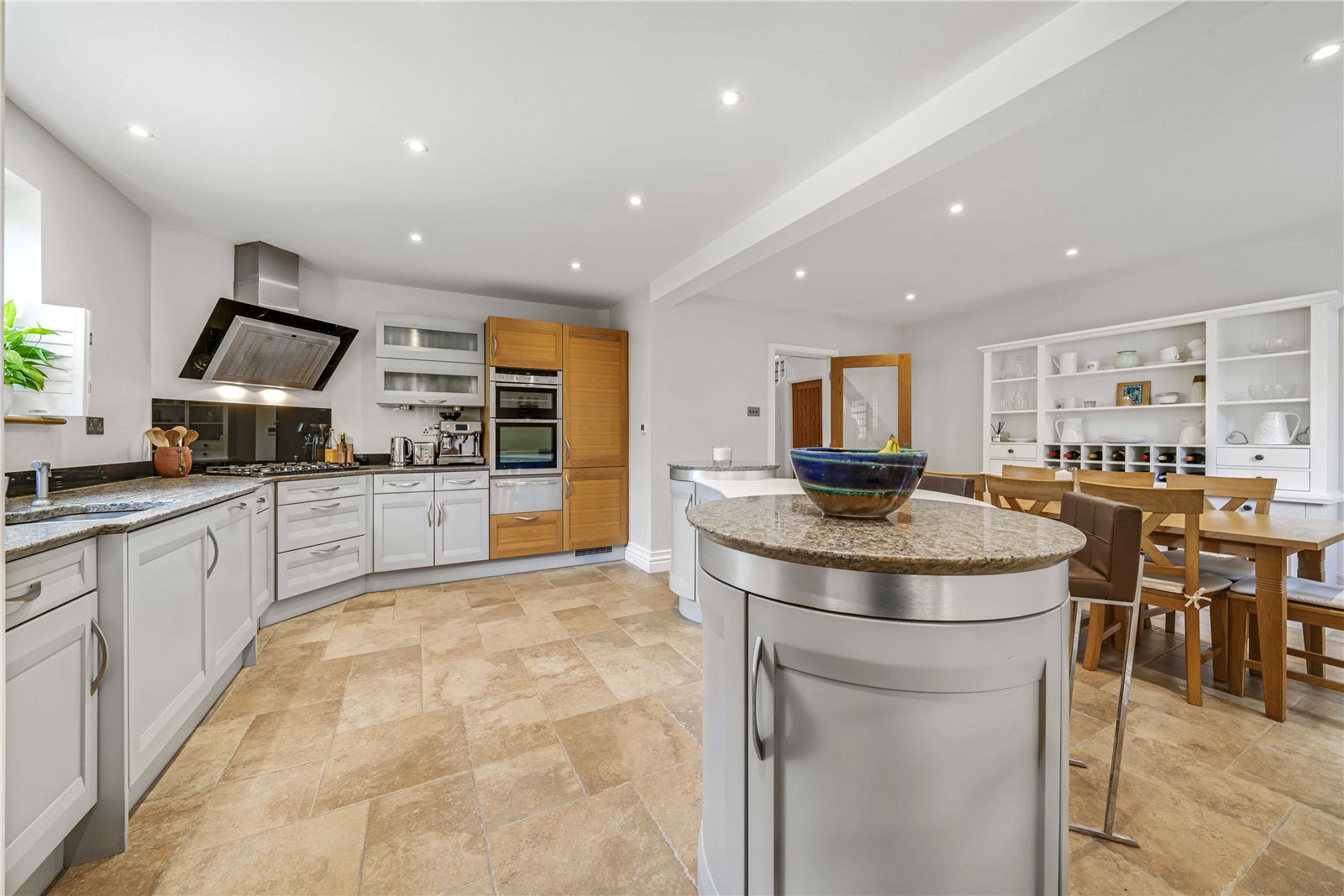 - Impressive Sylvarna kitchen/breakfast room with bespoke cabinetry, granite, and glass surfaces, anchored by a stylish island unit.