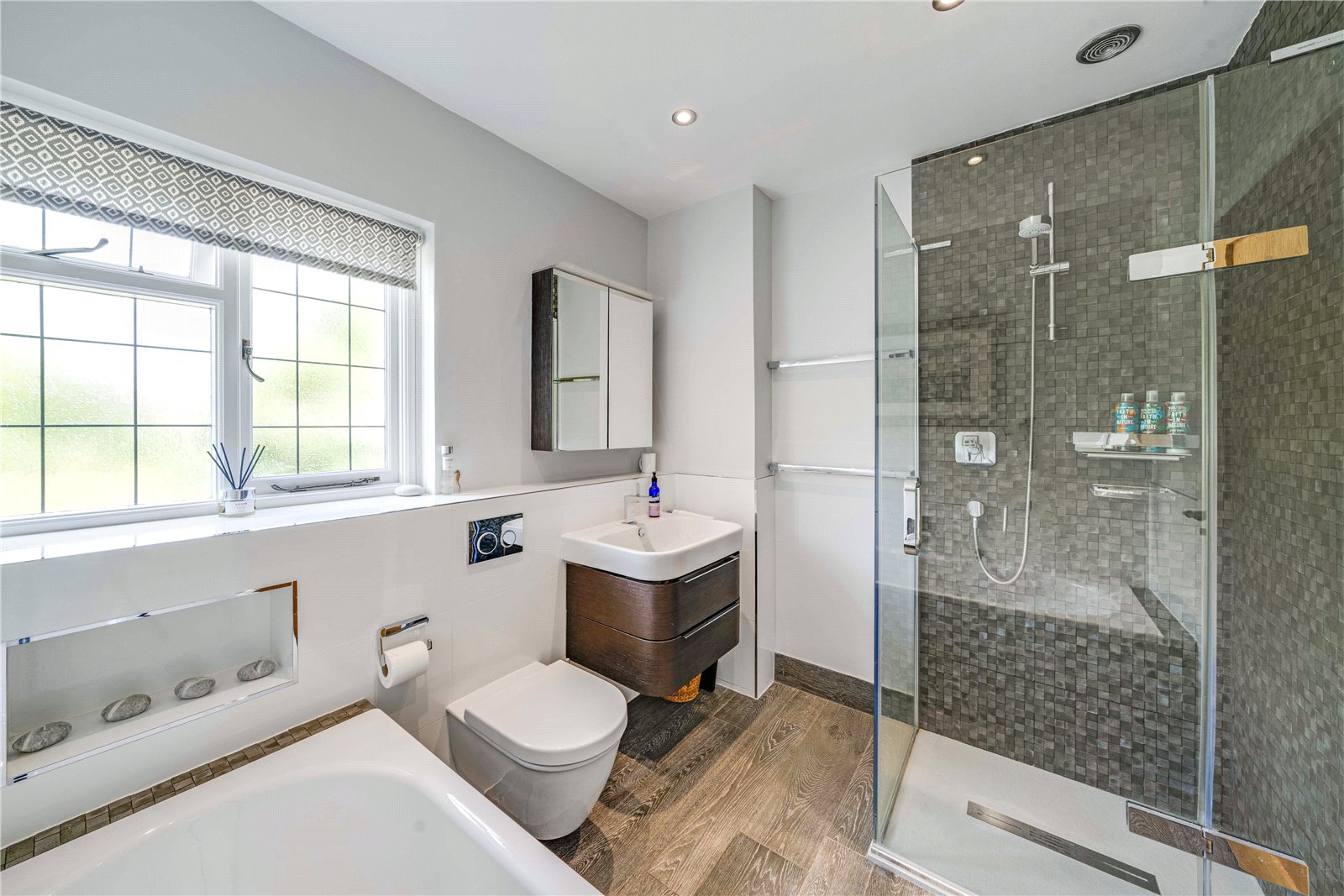 - Modern family bathroom with luxurious bath and superb shower cubicle.
