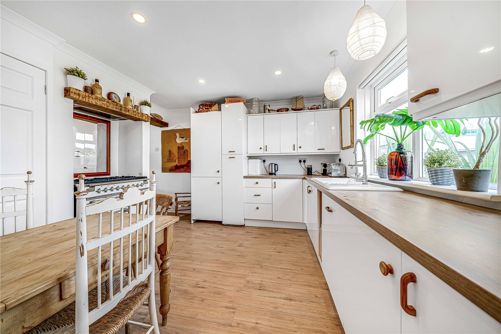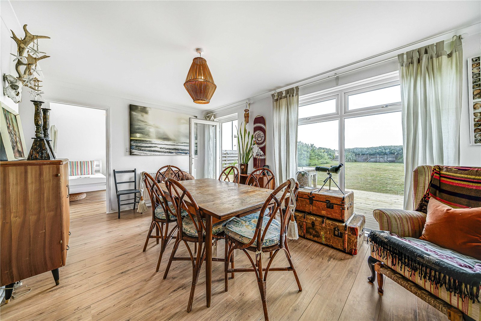 Enjoy the luxury of five bedrooms, providing flexibility and comfort. Three bedrooms are conveniently located on the ground floor, offering various living arrangements. The en-suite bathroom adds a touch of privacy and convenience to the living experience. The reception areas are conveniently positioned to take maximum enjoyment of the rear garden and beach beyond. With exposed wooden floors and a cosy wood log burner for an enhanced look and cosiness.