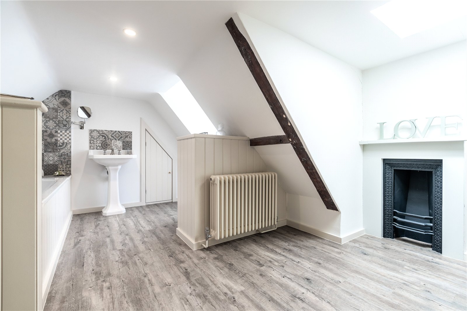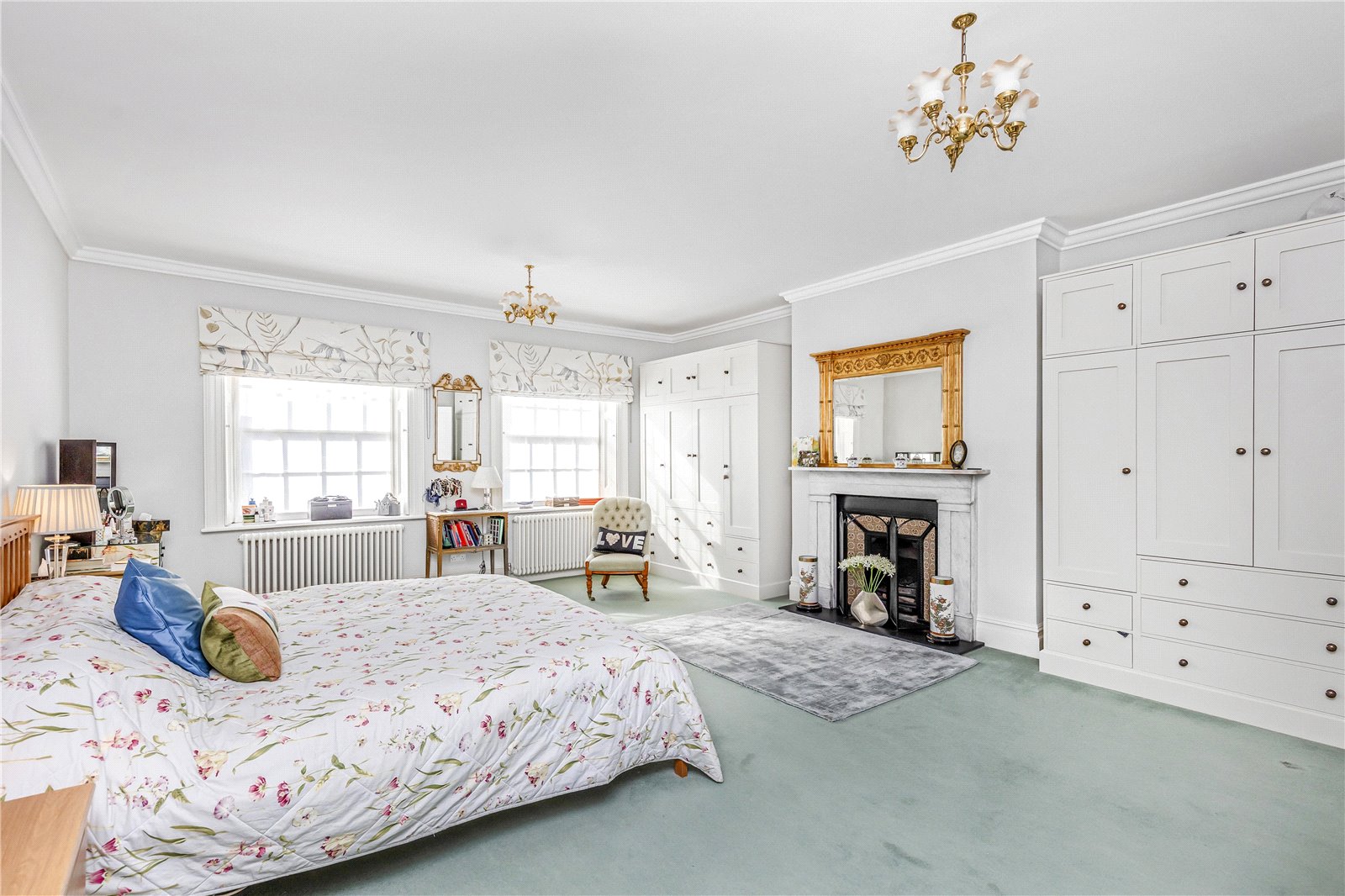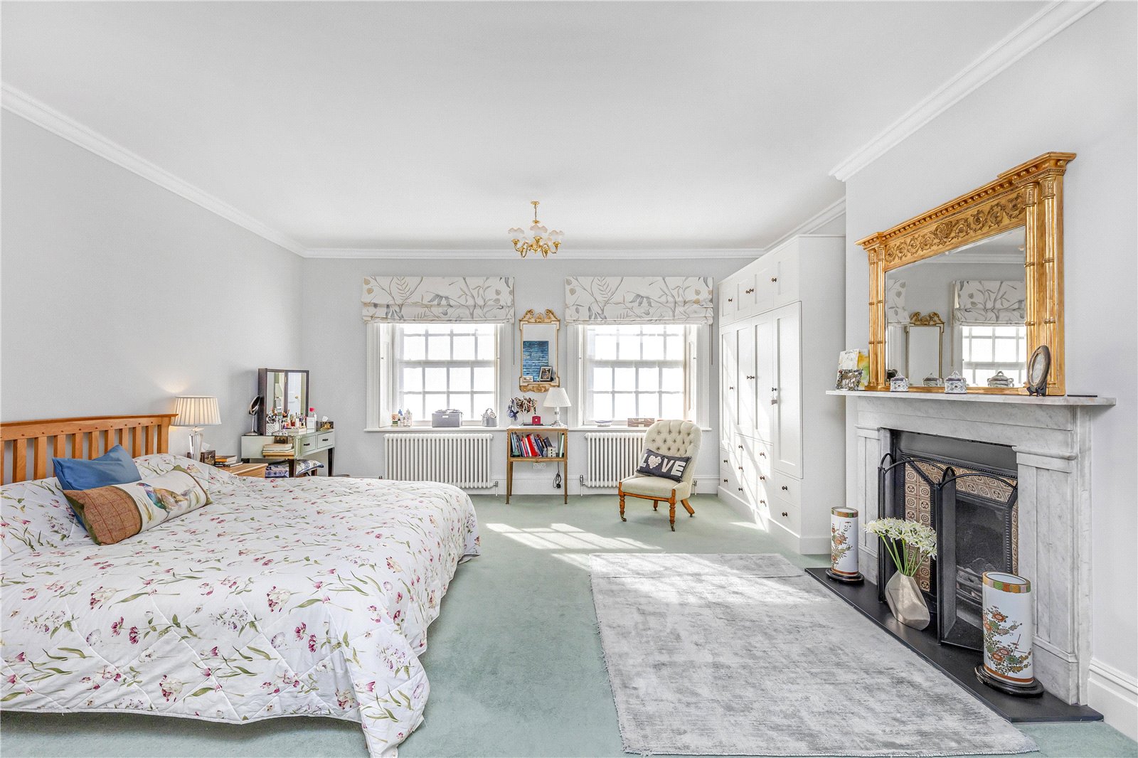 - Period features include lofty ceilings, antique fireplaces, Georgian panelling and functional shutters