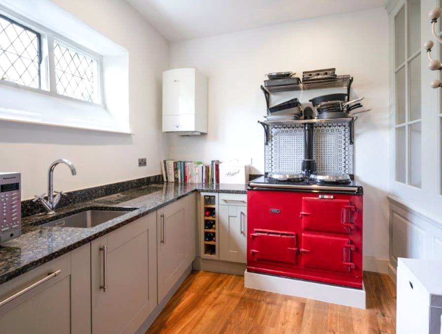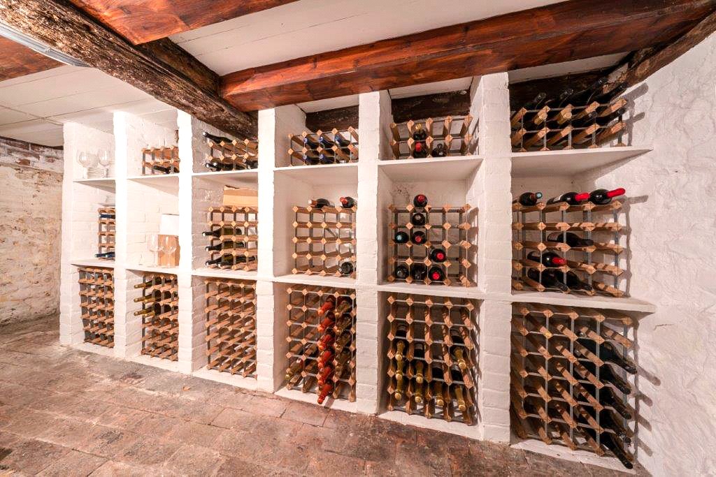 Additional features include a second kitchen/utility area, equipped with a large fridge/freezer, second dishwasher, washing machine and a two-oven gas-fired Aga. Descending a staircase leads to an extensive cellar complex, complete with original wine bins and a strong room walk-in safe by Hobbs Hart & Co of Cheapside, notably by Appointment to Buckingham Palace and The Bank of England.