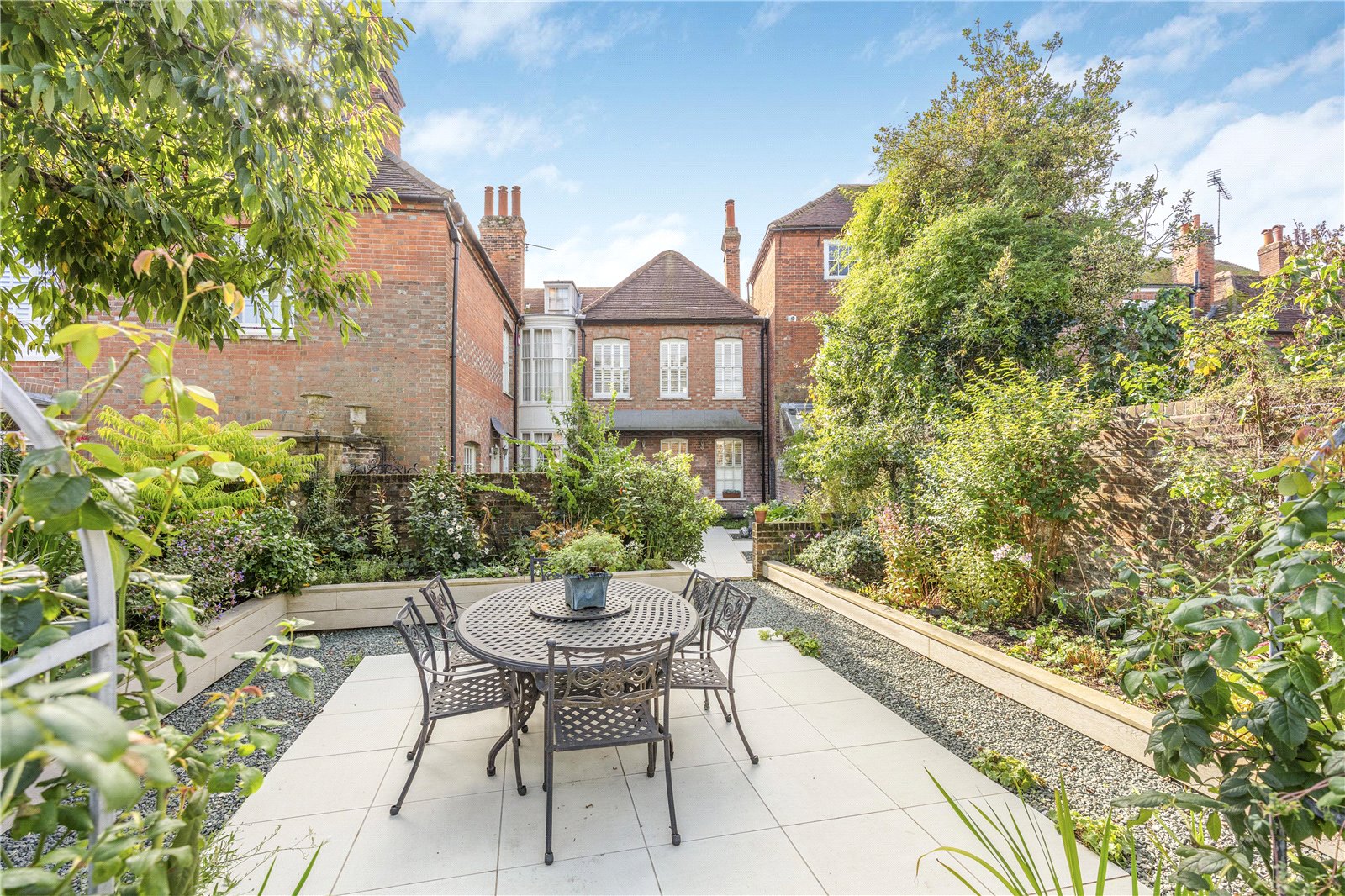 The delightful landscaped walled garden of Lion Street House has been meticulously designed to enchant the senses throughout the seasons.