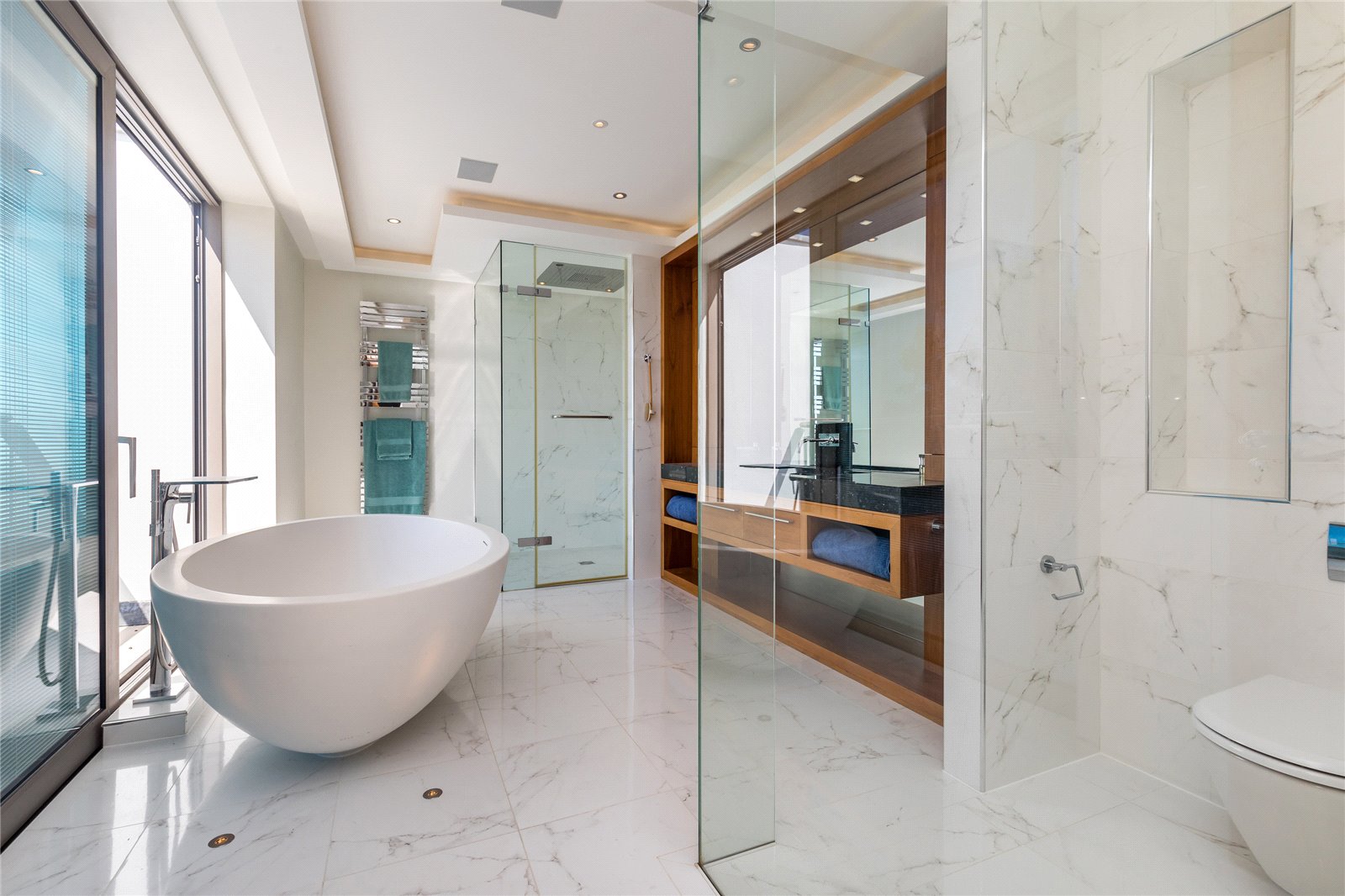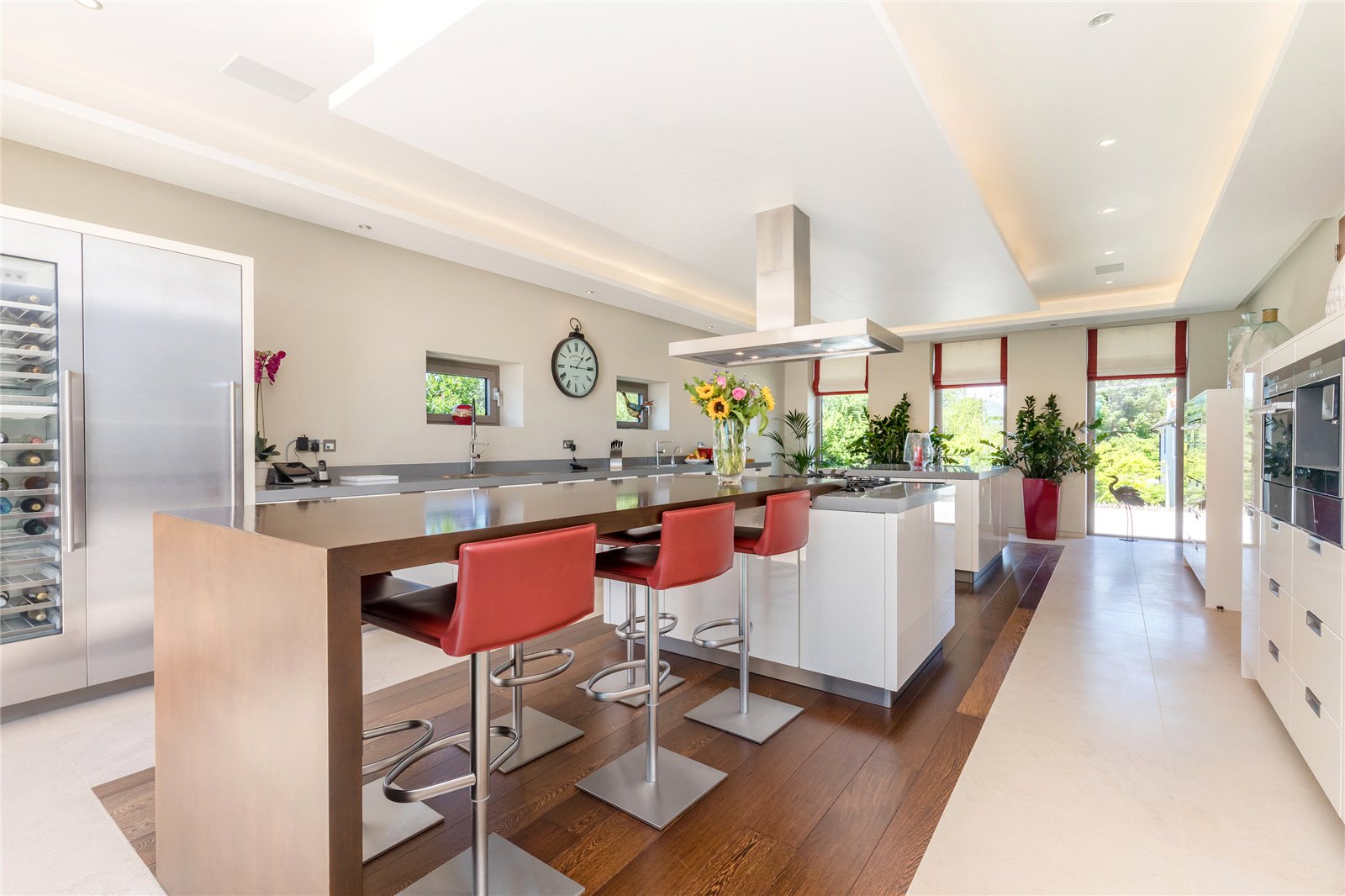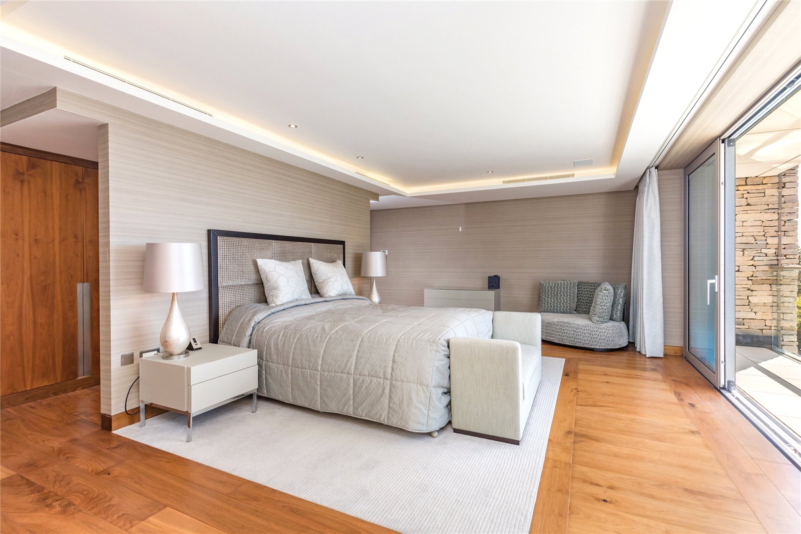 The sense of luxury continues upstairs, where six generously sized double bedroom suites each enjoy their own opulent en-suite bathrooms. Both the principal and guest bedrooms benefit from access to a private balcony.