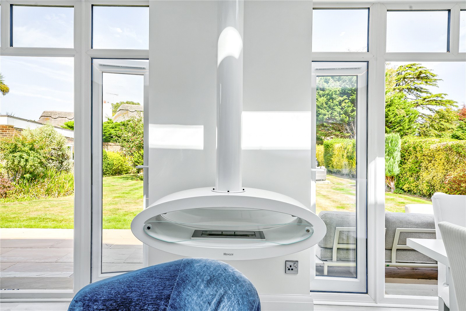 Designed for both relaxed family living and stylish entertaining, the kitchen pairs sleek contemporary finishes with generous workspaces, a natural connection to the dining and seating zones, and a stunning ceiling-hung Henley fire that brings warmth and elegance to the heart of the home.