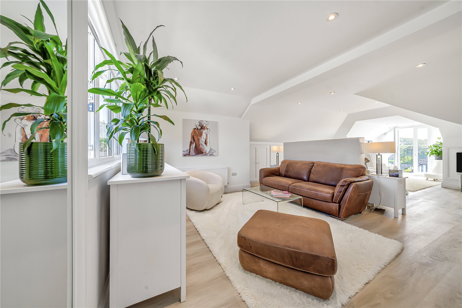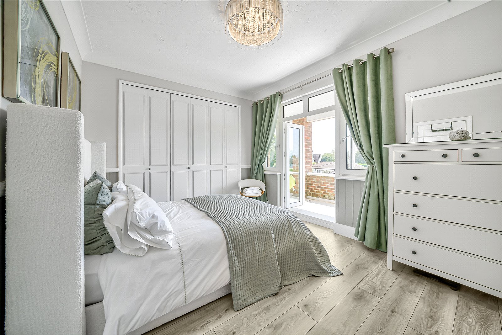 Upstairs, the transformation continues. A roof enlargement and loft conversion have unlocked the full potential of the second floor, now home to a generous, light-filled principal suite with garden views at one end and a Juliet balcony facing south. The beautifully appointed en-suite is a true indulgence, featuring a walk-in shower, freestanding bath, twin sinks, and air conditioning. Bespoke built-in storage and a lounge area add to the sense of space and luxury, creating a sanctuary as elegant as it is comfortable.