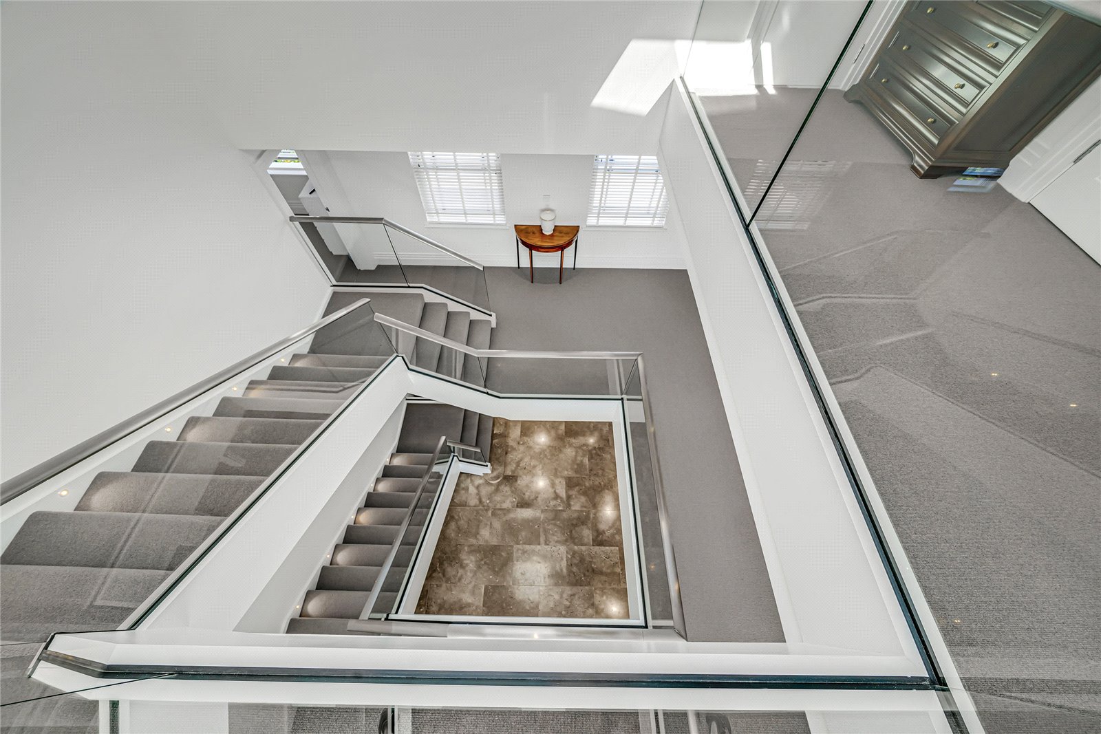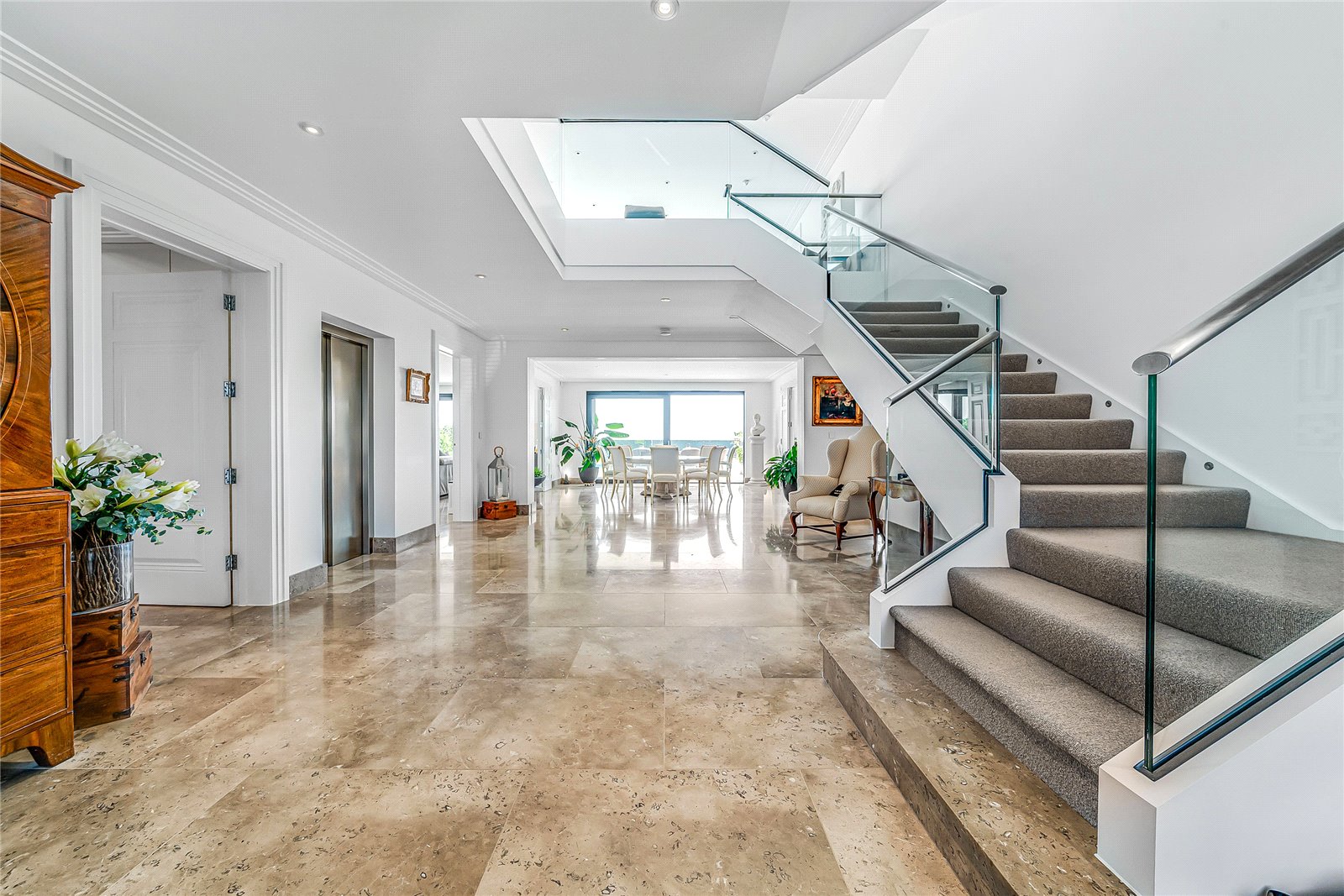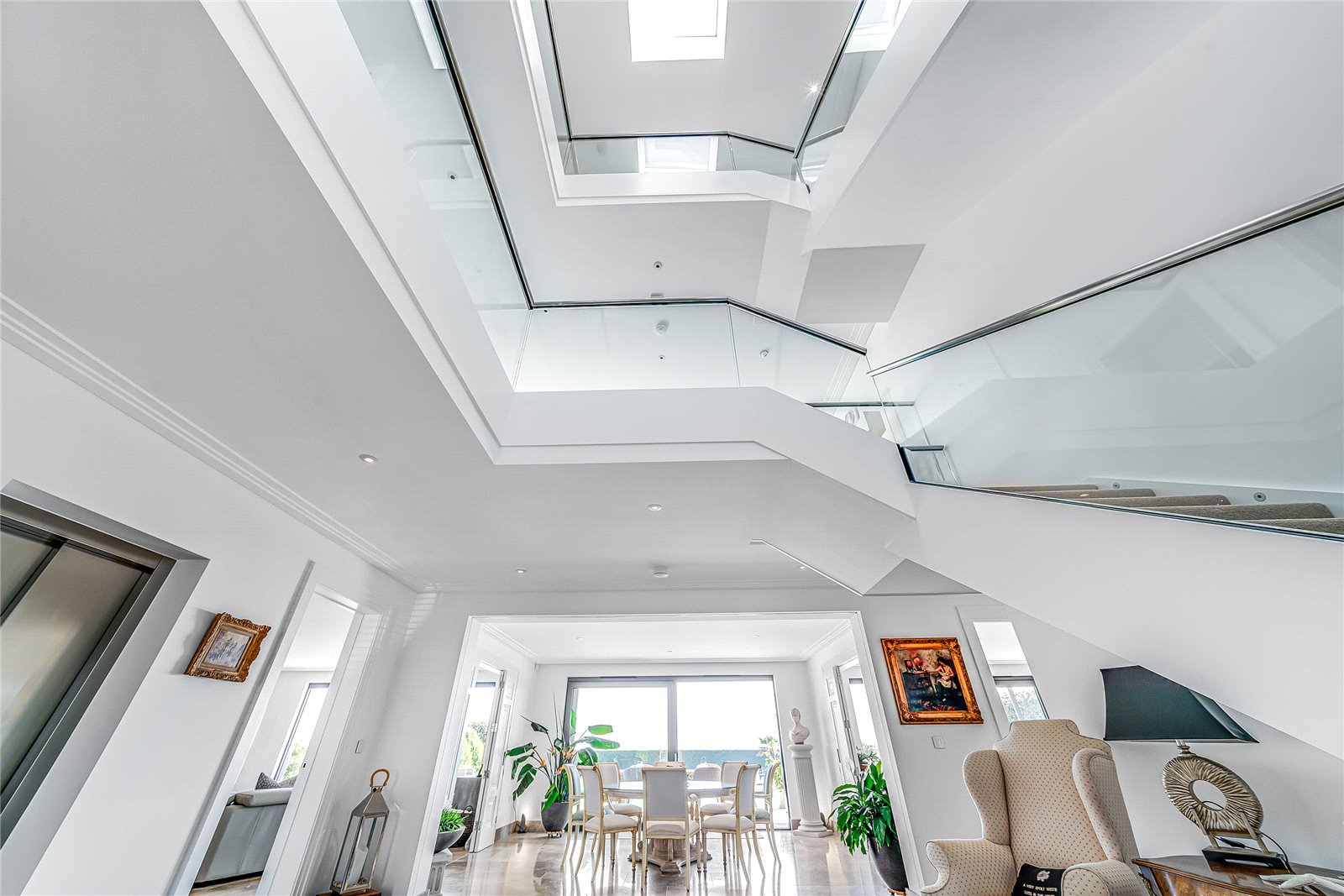 As you enter this stylish home, you are greeted with a breathtakingly spacious grand entrance hall which allows views of the entire length of the property and onto the garden beyond. An elegant easy-rise staircase and an encased elevator provide access to all floors, while the atrium and skylight above bathe the area in natural light.