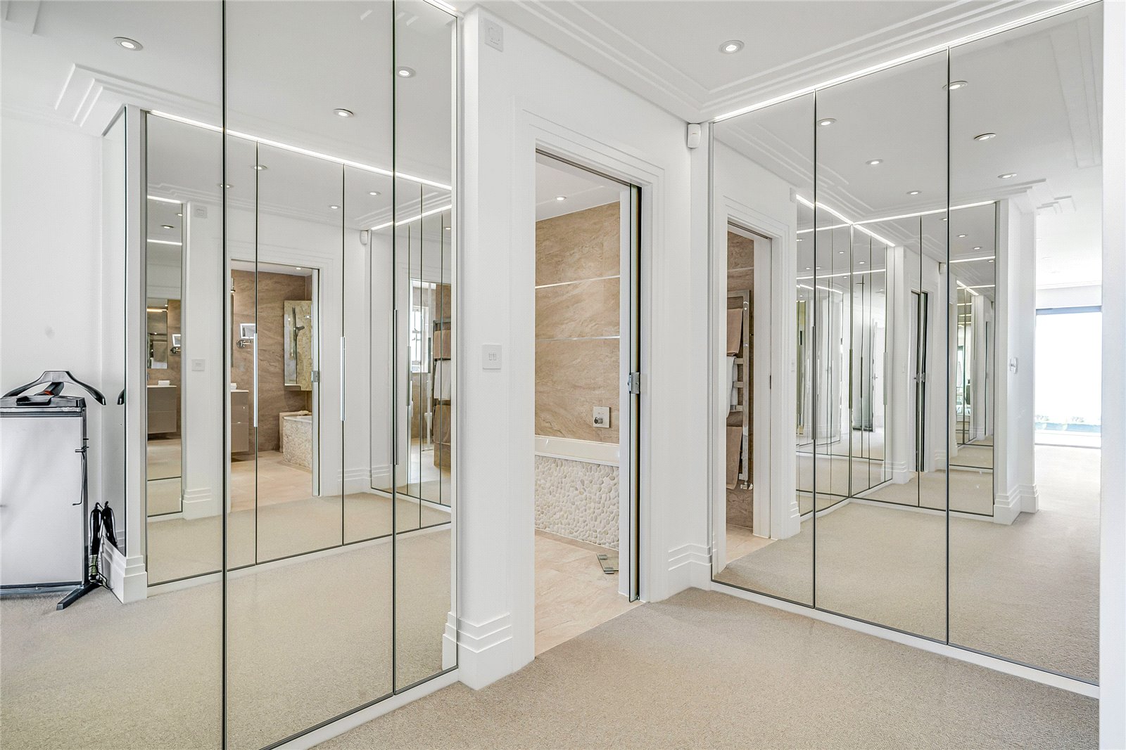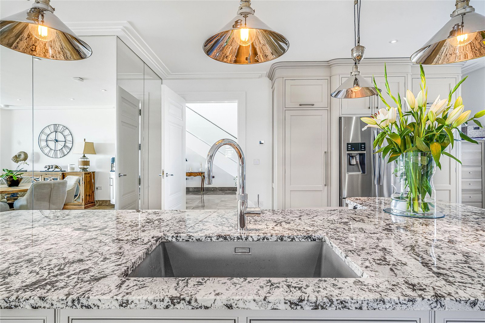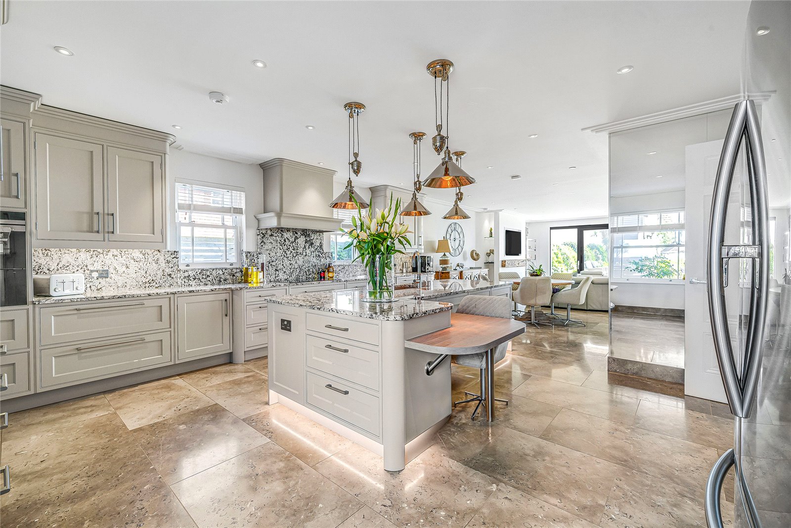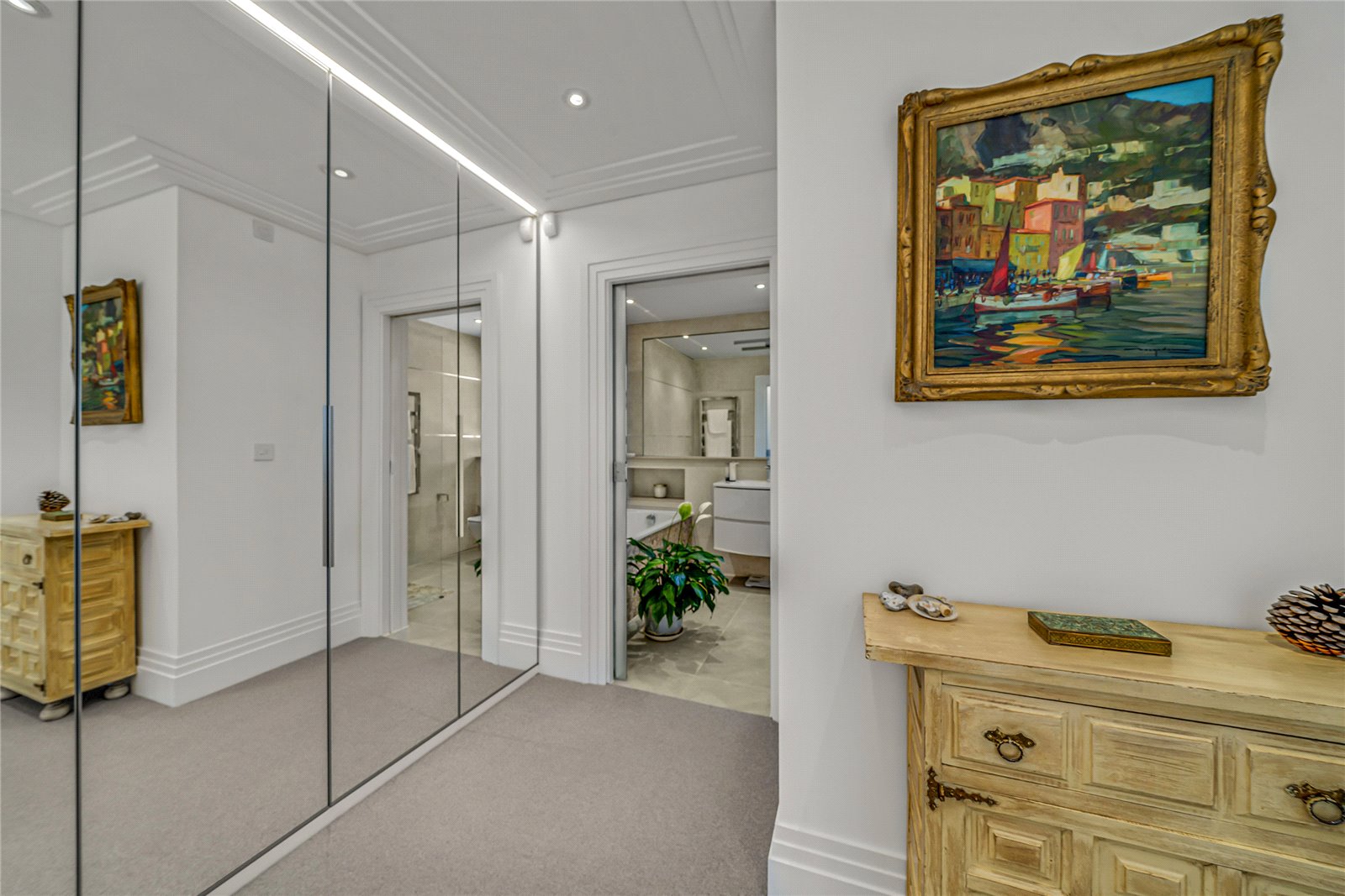 As you enter this stylish home, you are greeted with a breathtakingly spacious grand entrance hall which allows views of the entire length of the property and onto the garden beyond. An elegant easy-rise staircase and an encased elevator provide access to all floors, while the atrium and skylight above bathe the area in natural light.