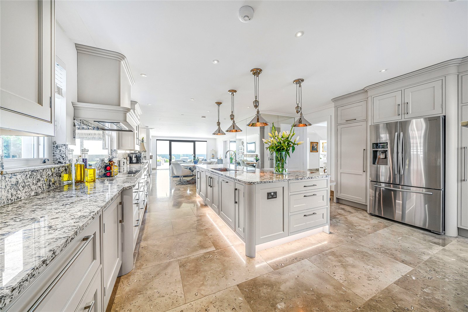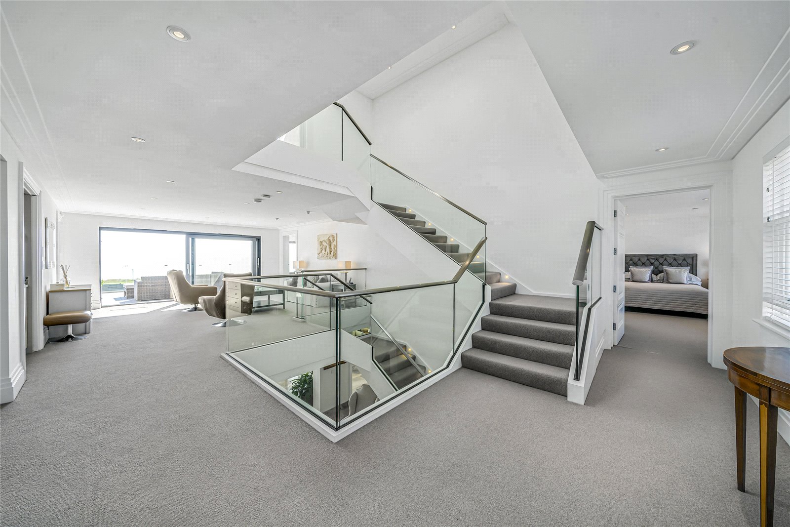 Elegance knows no bounds as you step onto the 17.4m (57ft) first-floor glass-fronted balcony, accessible from the two principal bedroom suites and an upper lounge, which is a prominent area of the design and enjoyment of this home. From this vantage point, relish breathtaking vistas that extend far beyond the horizon. Set within a discreet, private estate in a charming West Sussex village designated as an 'Area of Special Character,' this residence is a true gem.