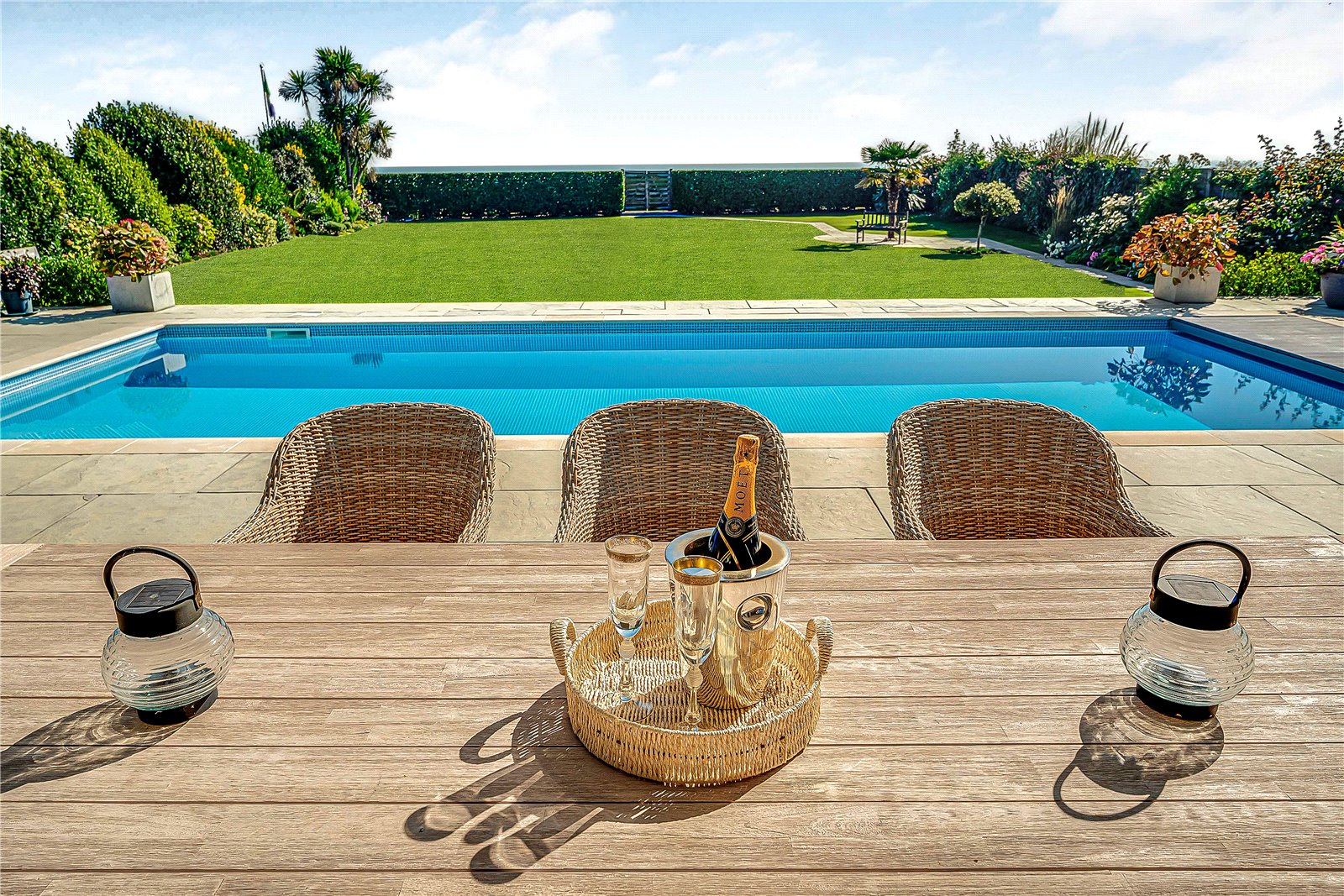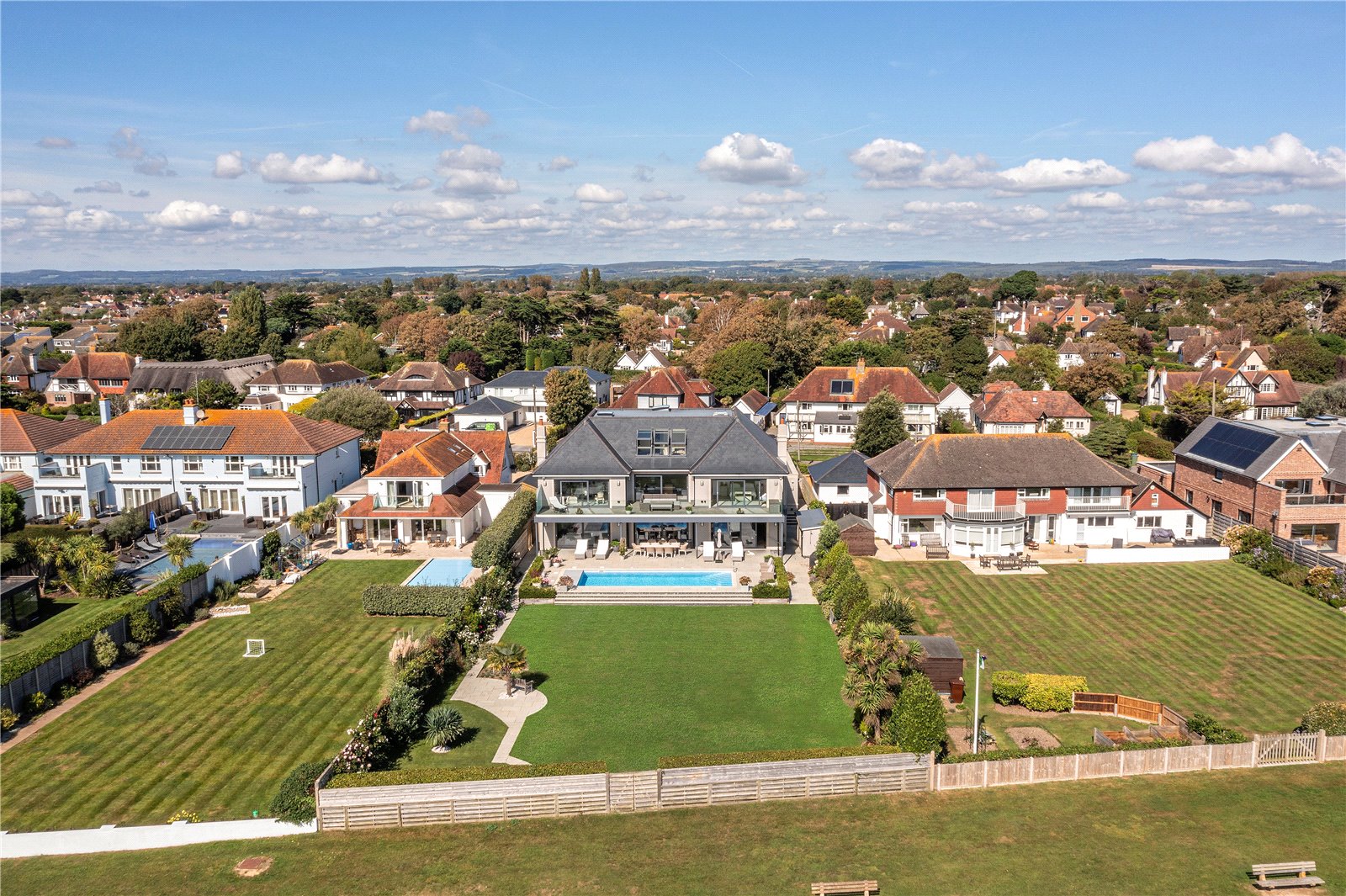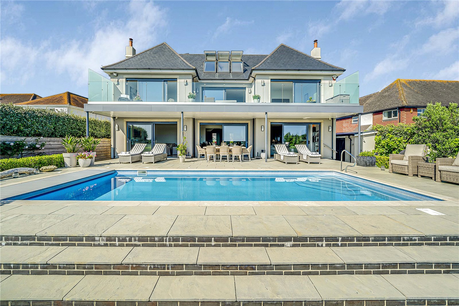 Situated on a prestigious private estate in West Sussex, this elegant seafront home offers just under 6500 sqft of luxury living. Enjoy unobstructed panoramic English Channel vistas, a heated outdoor pool, and a sun-soaked south-facing garden with direct access to a privately owned greensward and tranquil beach.