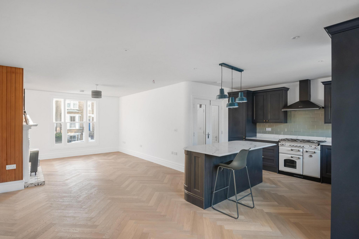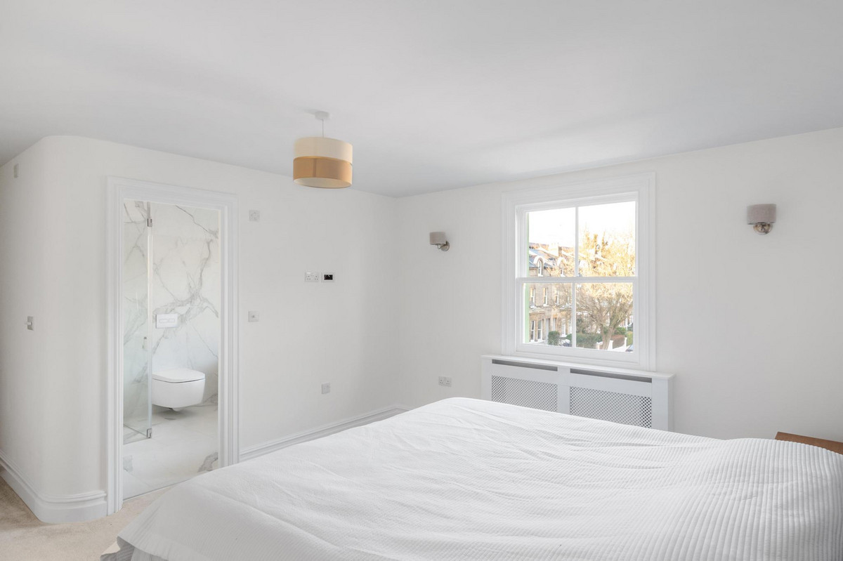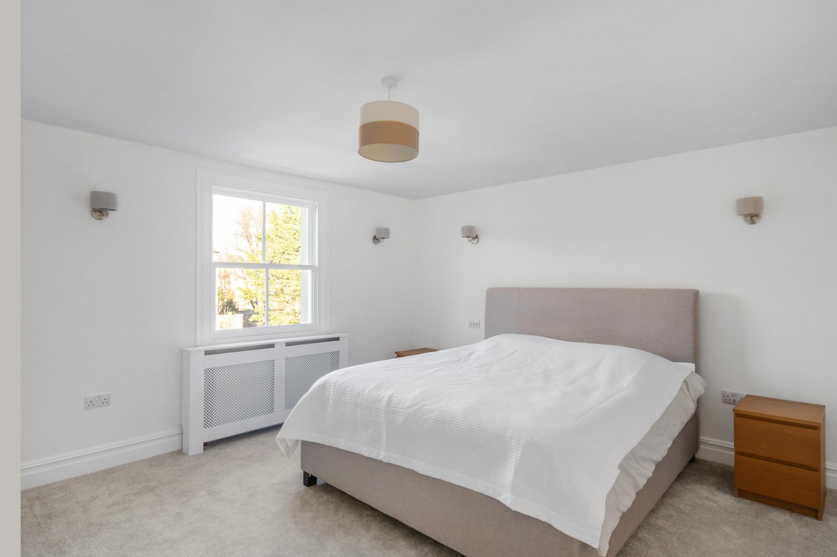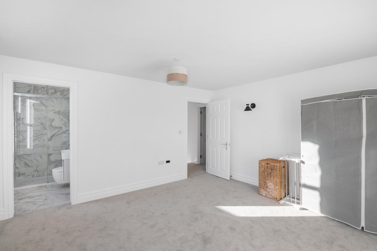 Meticulously restored to its former glory, the property seamlessly blends historic charm with contemporary design. The current owner has revived many of Barry Bucknell’s original features while incorporating modern touches. The heart of the home is a spacious, open-plan living area complemented by a sleek, fully equipped modern kitchen—perfect for entertaining or relaxing with family. Upstairs, three generously sized bedrooms are paired with three luxury bathrooms, ensuring comfort and privacy across the first and second floors.
