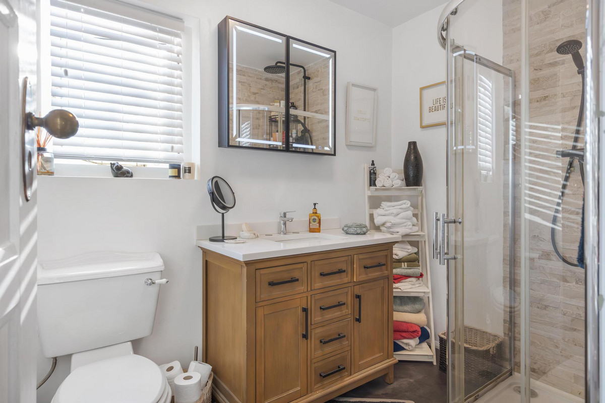 As you make your way upstairs, the generously sized landing enhances the sense of space, with plenty of built-in storage to keep everything neatly organised. The property offers three well-proportioned bedrooms, providing comfortable living space for families or professionals alike.