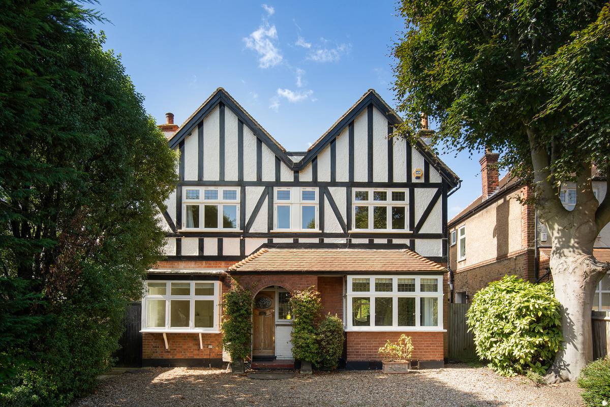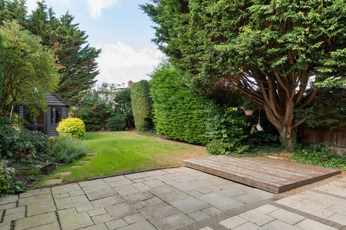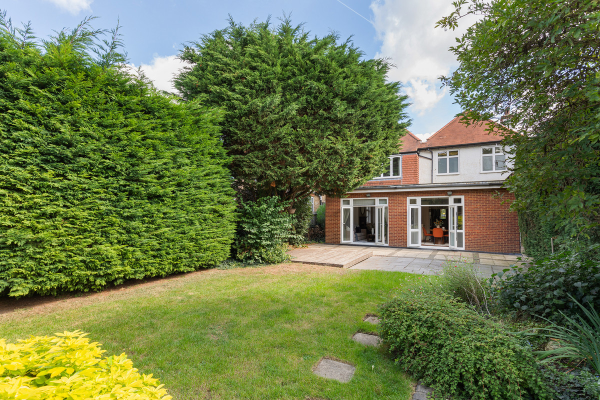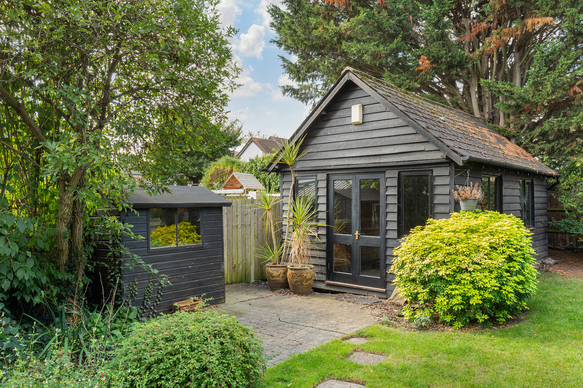 The exterior of the property is equally impressive, featuring a deep front garden with extensive off-street parking. The rear garden, which extends to 90 feet and faces west, is beautifully landscaped with a large terrace, an immaculate lawn, and mature, well-stocked borders. There is also a large summer house that can serve as a garden room or home office, along with a timber shed for storage. The property benefits from gas-fired central heating and is being offered with no forward chain, making it a fantastic opportunity for those looking for a ready-to-move-in family home in a prime location.