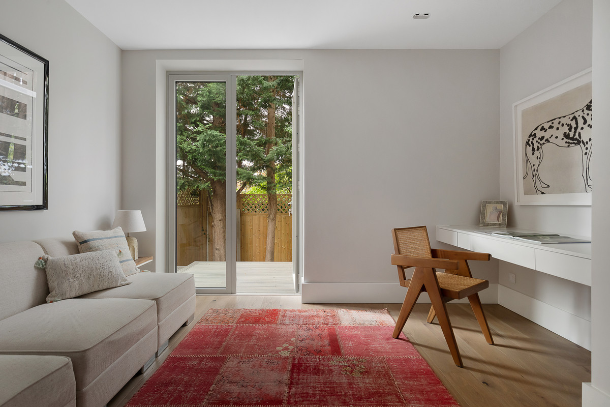 Adjacent to this is another luminous reception room, effortlessly connected to the kitchen and dining space, creating a harmonious flow throughout. Practicality meets elegance with a convenient utility room and a well-appointed boiler room. There is also an office or study, drenched in sunlight and offering direct access to the meticulously designed garden. It also boasts its own beautifully designed en-suite bathroom, adding a touch of exclusivity.