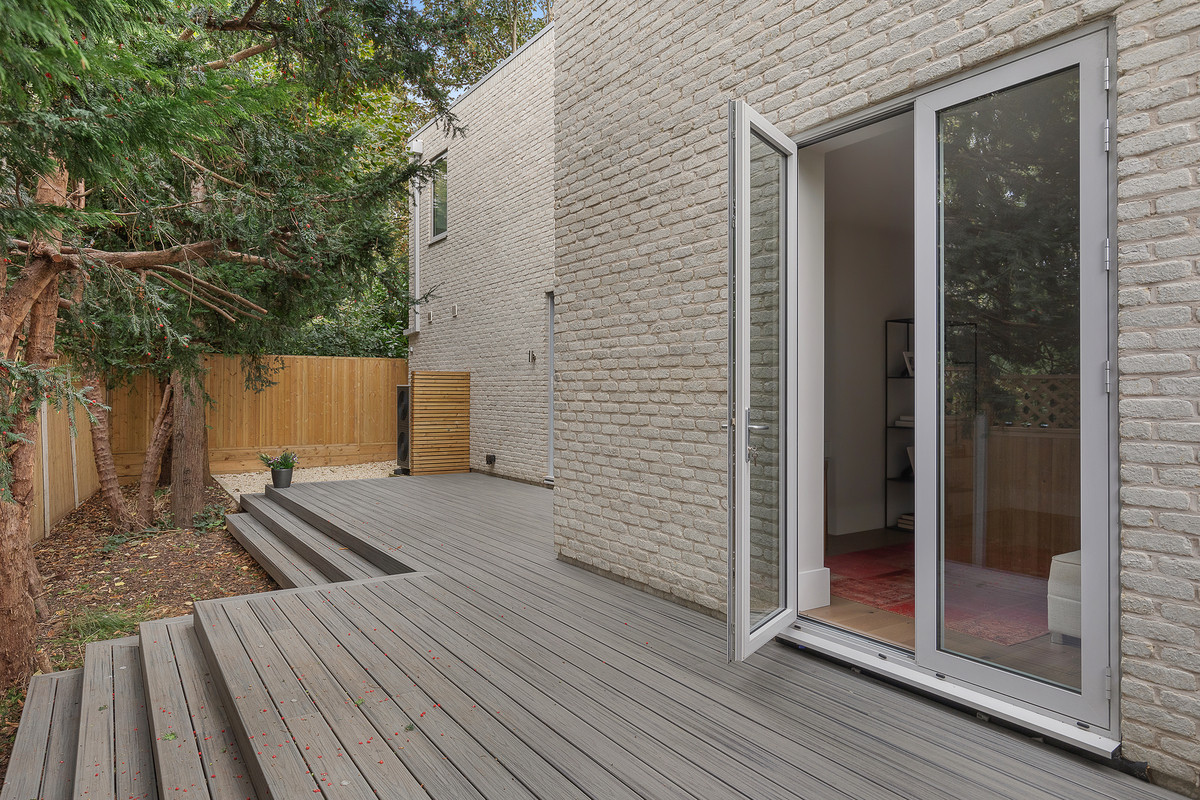 Outside, you'll discover a beautifully landscaped South-facing garden constructed with top-quality materials, perfect for basking in the sun. To the rear, a serene and shaded terrace provides the ideal spot for relaxation.