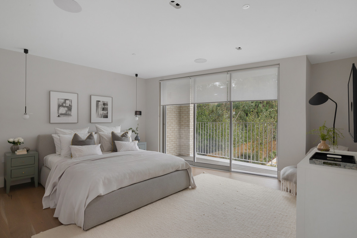 The first floor unveils four generously sized double bedrooms, three of which feature their own en-suite bathrooms, while the fourth enjoys access to a modern family bathroom located just across the hall. The principal bedroom stands out with its grandeur, featuring a tremendous en-suite complete with a double vanity unit, a separate walk-in rain shower, and a luxurious bathtub. Furthermore, it offers a balcony that overlooks the stunning garden. Each bedroom is equipped with fitted wardrobes, bedside lighting, an integrated sound system, USB power sockets, and elegant engineered wood flooring.
