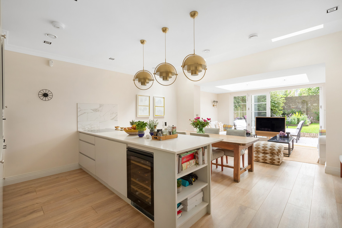 Our current vendors selected this particular home due to the fact it is end of terrace and as a result has a double-width rear garden with a desirable south-westerly aspect and a private, pleasing front elevation. Enhancements include an extended ground floor living area and a transformed lower ground floor, previously a garage and storage space, into a versatile playroom/guest room featuring bespoke cabinetry, an additional bedroom, and an en-suite shower room.