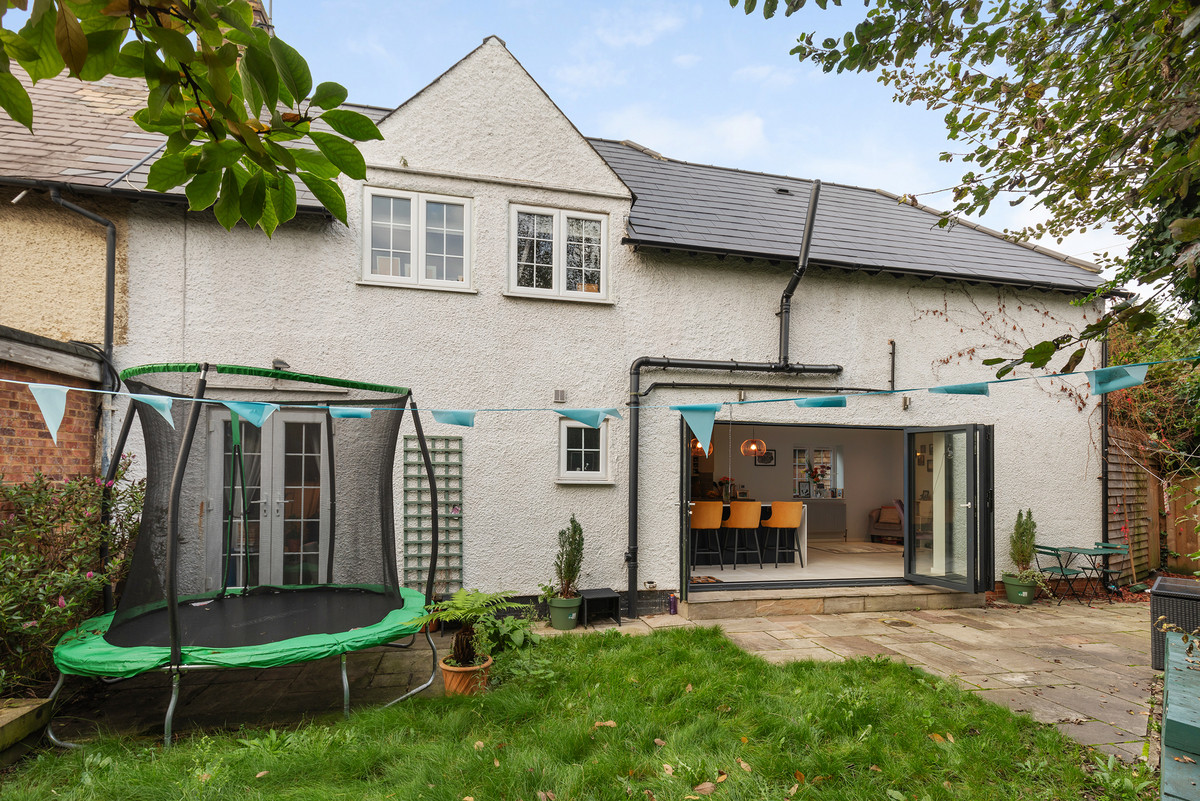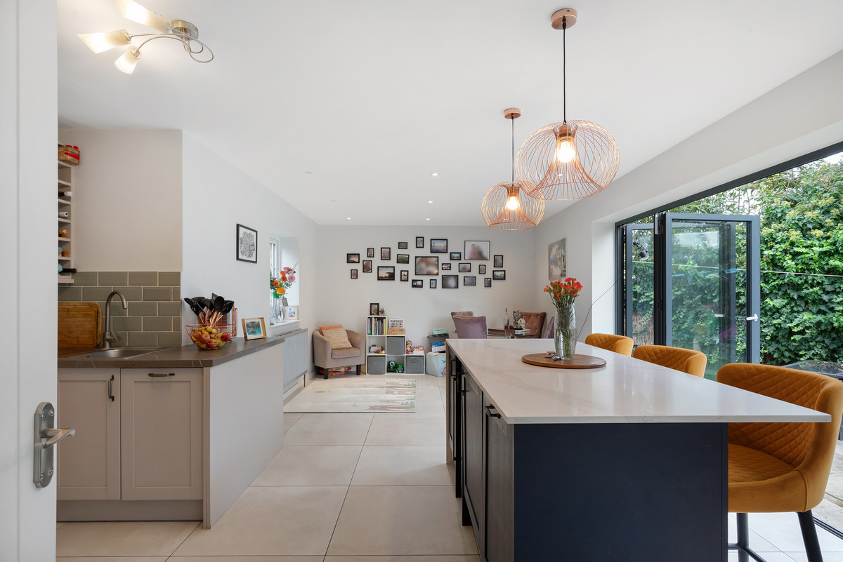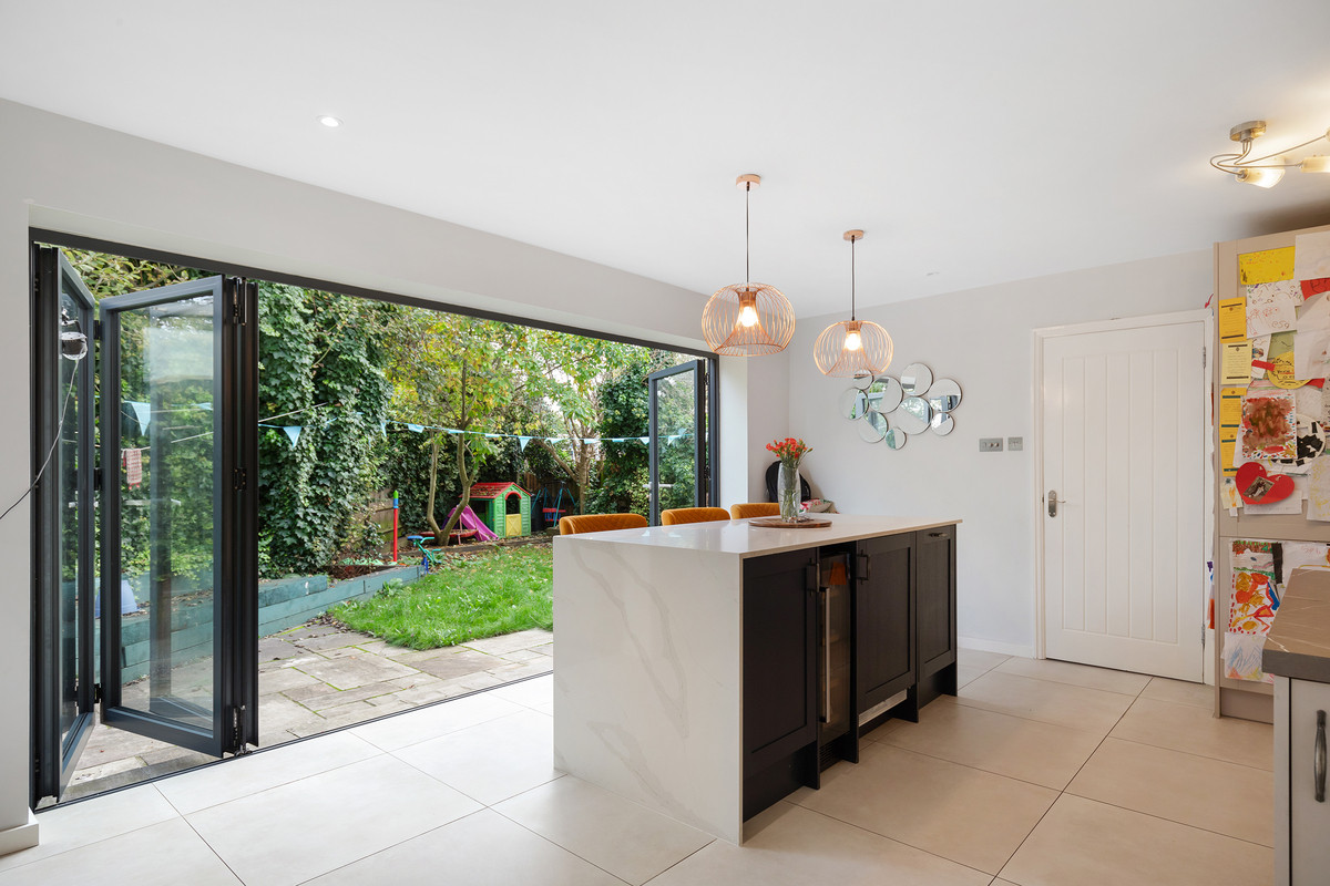Step inside to find a stunning open-plan kitchen, equipped with state-of-the-art appliances, sleek cabinetry, and expansive bi-folding doors that lead to a well-maintained garden. This seamless indoor-outdoor flow is complemented by underfloor heating, ensuring comfort year-round. The home’s layout includes four generously sized double bedrooms, providing ample space for family and guests, while multiple bathrooms feature stylish fittings and contemporary designs.