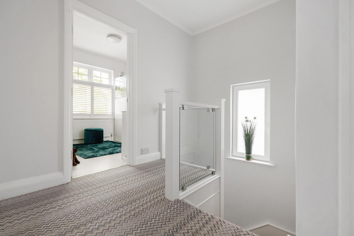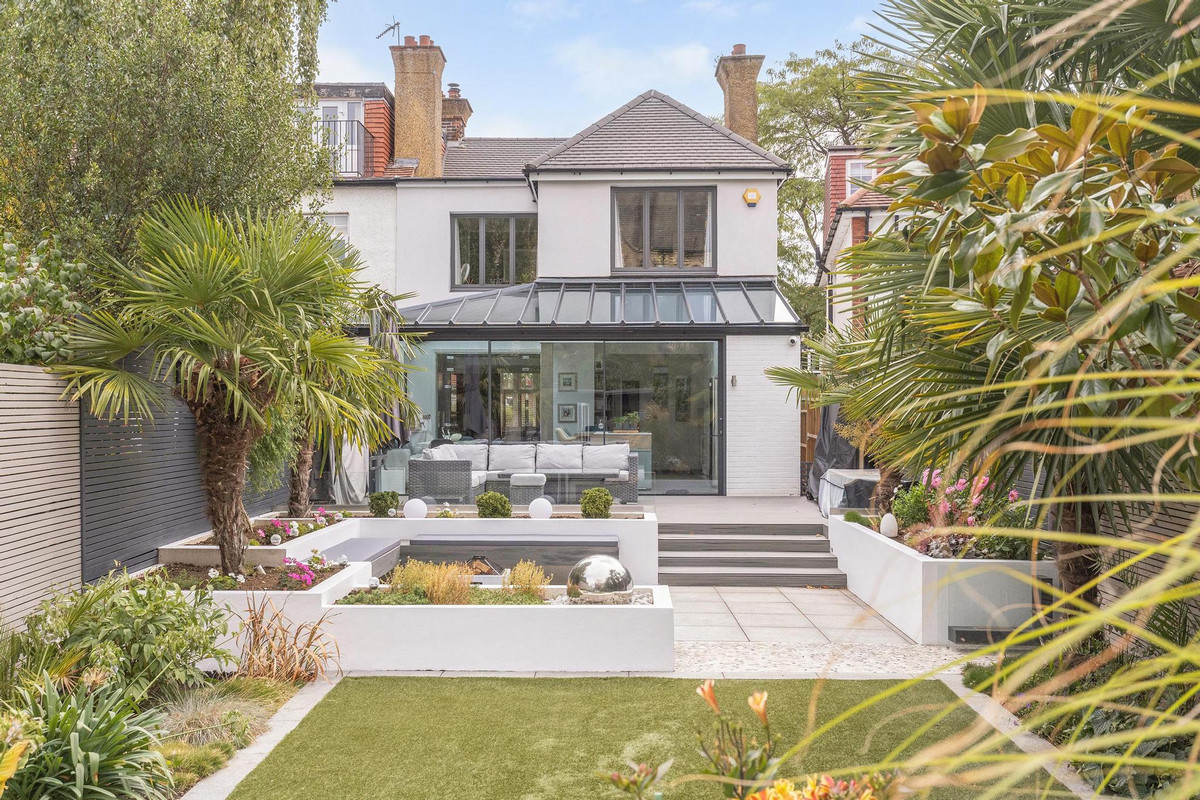 At the heart of the home is a stunning landscaped garden, designed by an award-winning designer, which provides a “country-like” outlook rarely found in central Ealing. From every angle, the garden frames the church beyond, creating a setting that feels tranquil and atmospheric, day or night. Adding to this is a beautiful garden room, ideal as a home office, entertaining space, playroom or gym, a flexible retreat that extends the living space seamlessly.