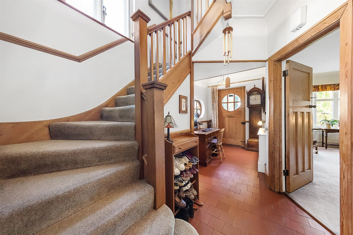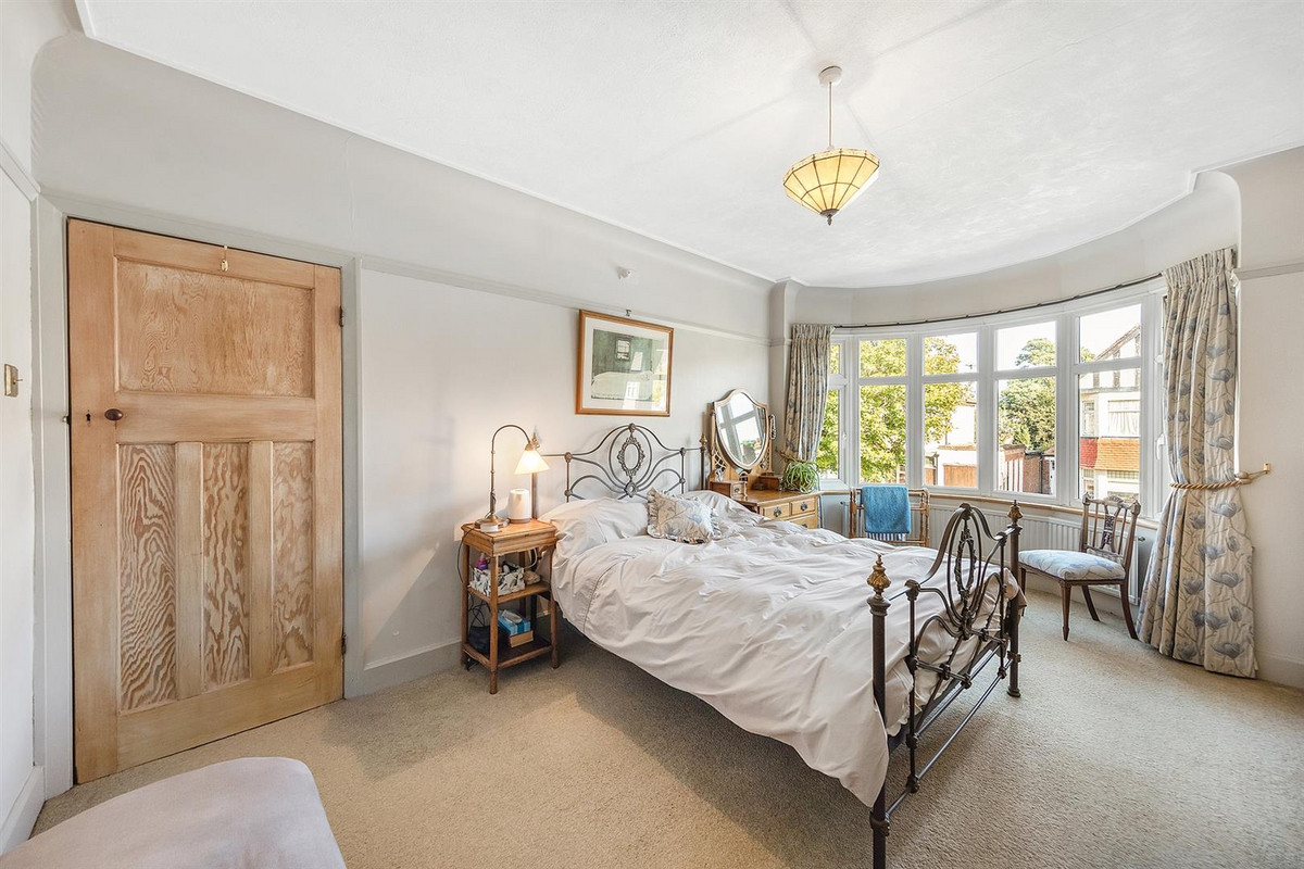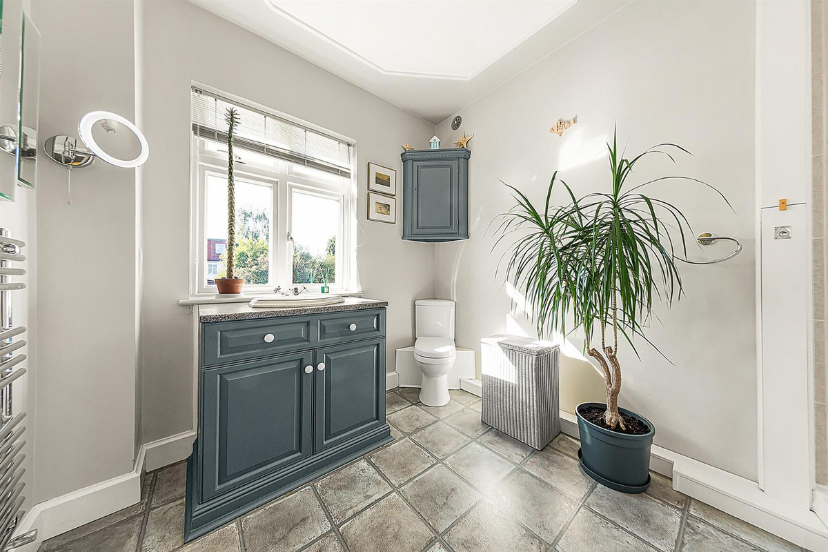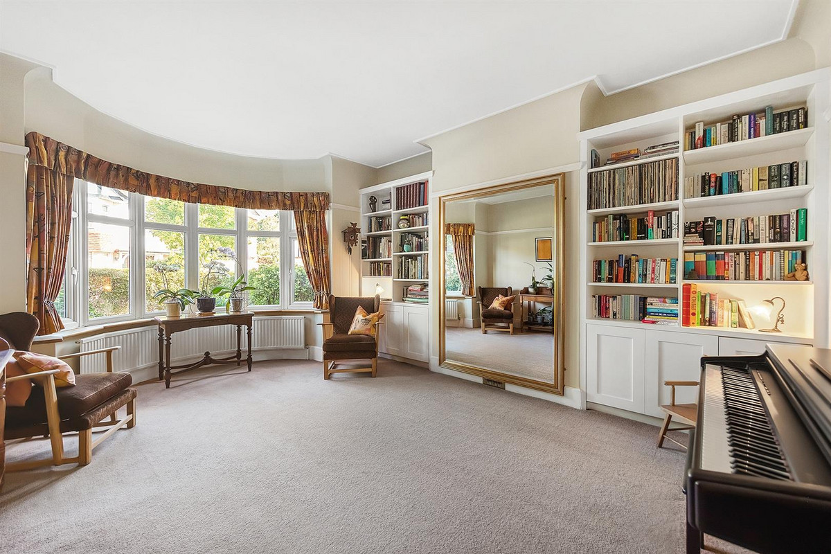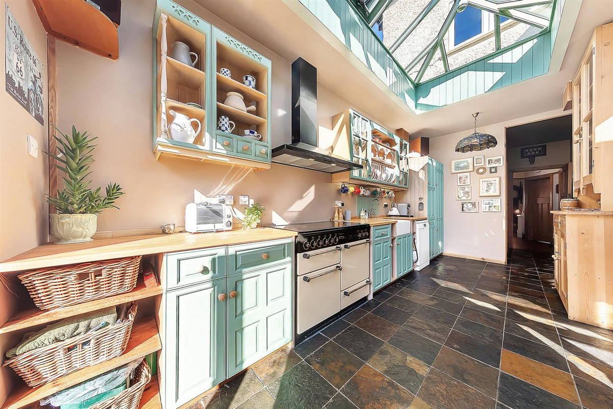 Accessed through a porch, the quarry-tiled entrance hall leads to each of the ground floor rooms. Period details feature throughout the house, including wooden doors, dado rails, picture rails and fireplaces. The front living room, currently used as a library and study, has fitted cupboards and bookshelves, and a large bow window to the front. The rear living room features a tiled fireplace and is semi-open plan to the large orangery extension that forms the kitchen and dining room at the back of the house. This room is bathed in natural light from two roof lanterns and French windows and doors to the garden. The fitted kitchen has a Belfast sink, an integrated fridge-freezer and space for a dishwasher. A rare feature in the kitchen is the original maid's call box! Completing the ground floor is a downstairs WC/laundry room and an understairs storage cupboard.