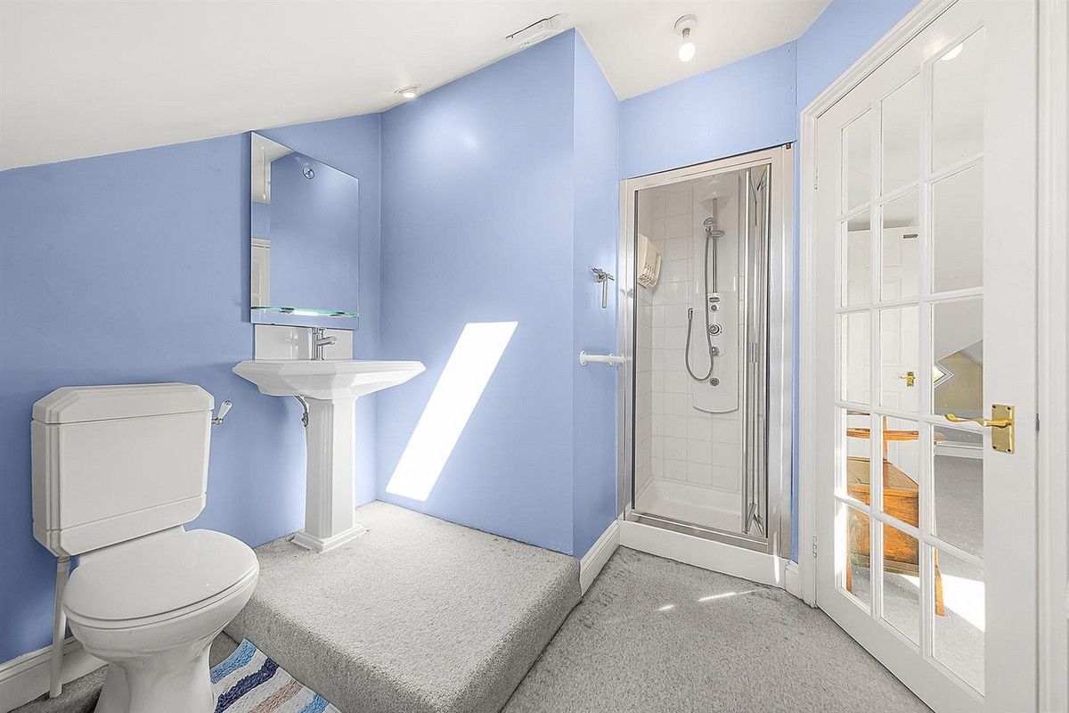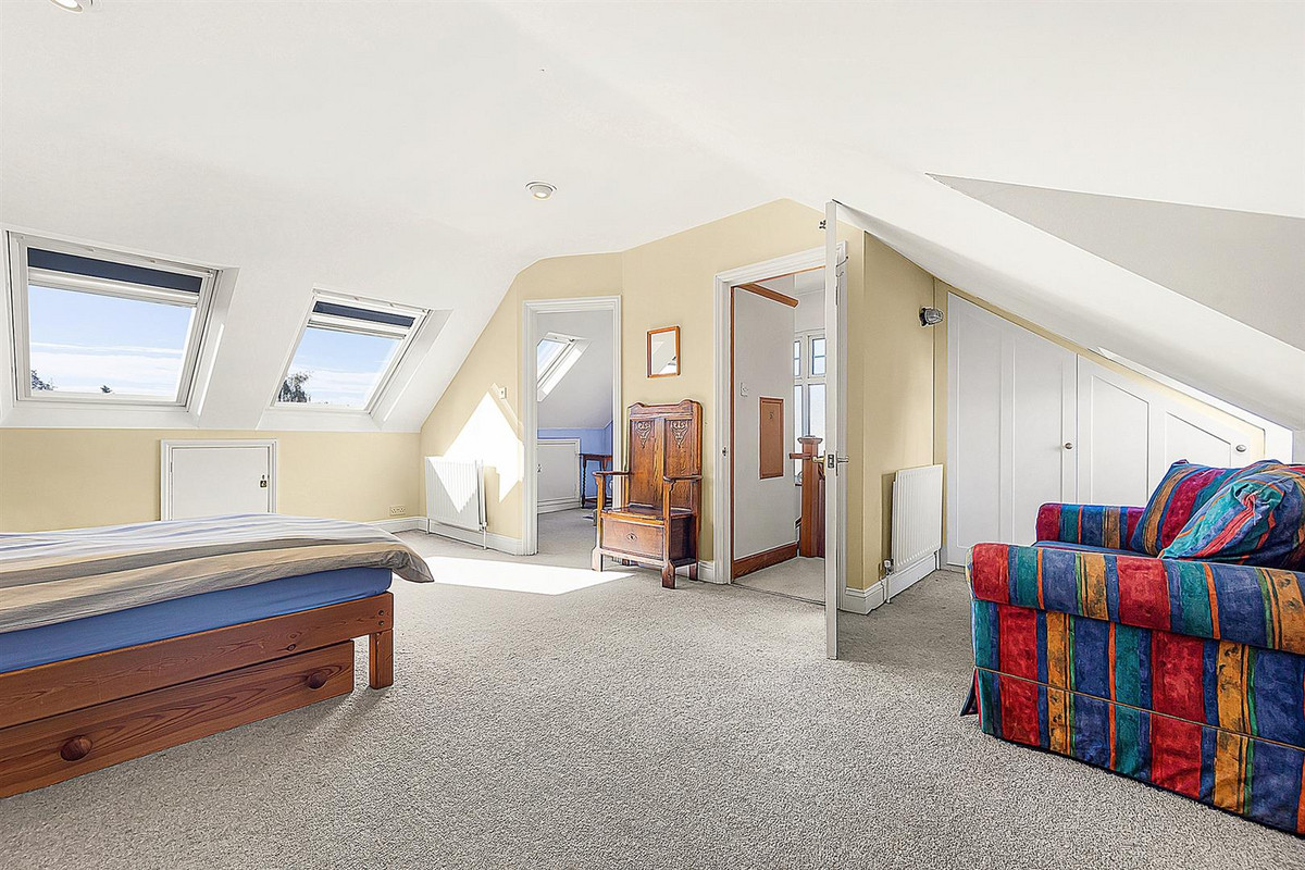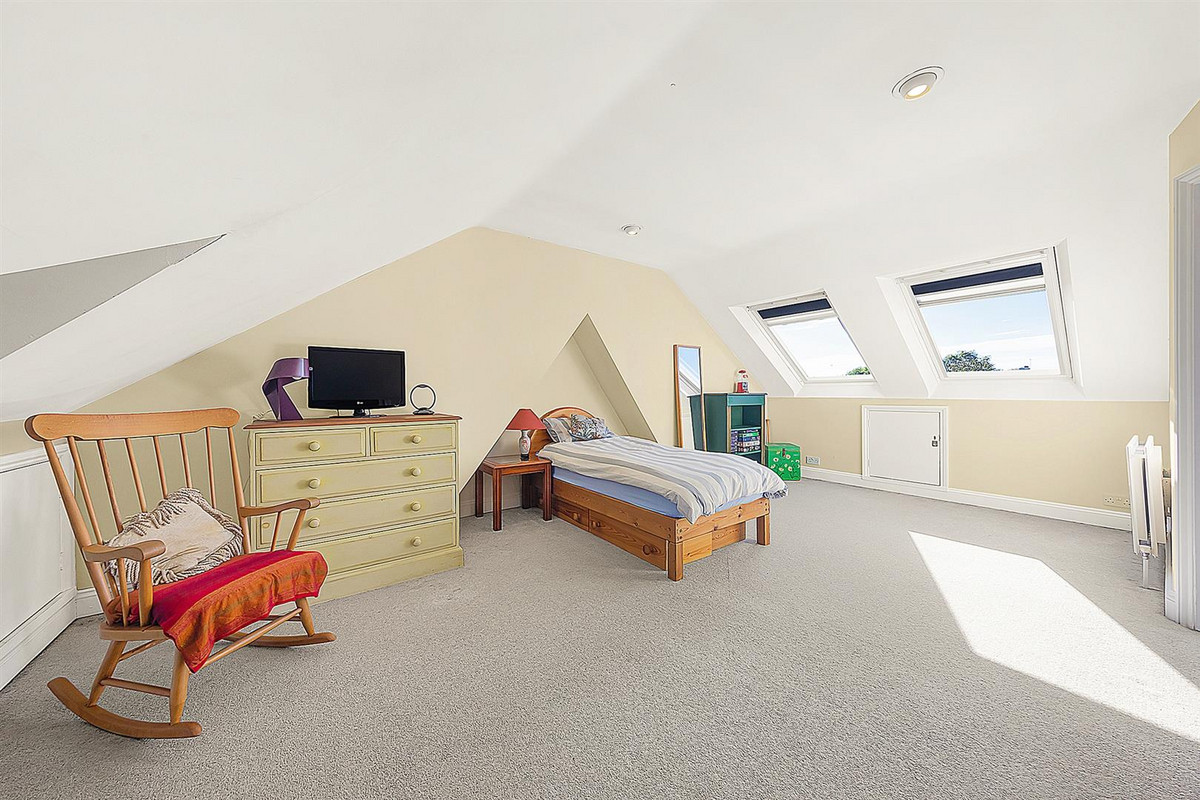 The main bedroom is in the converted loft and has an en suite shower room, fitted wardrobes and access to extensive storage in the eaves.