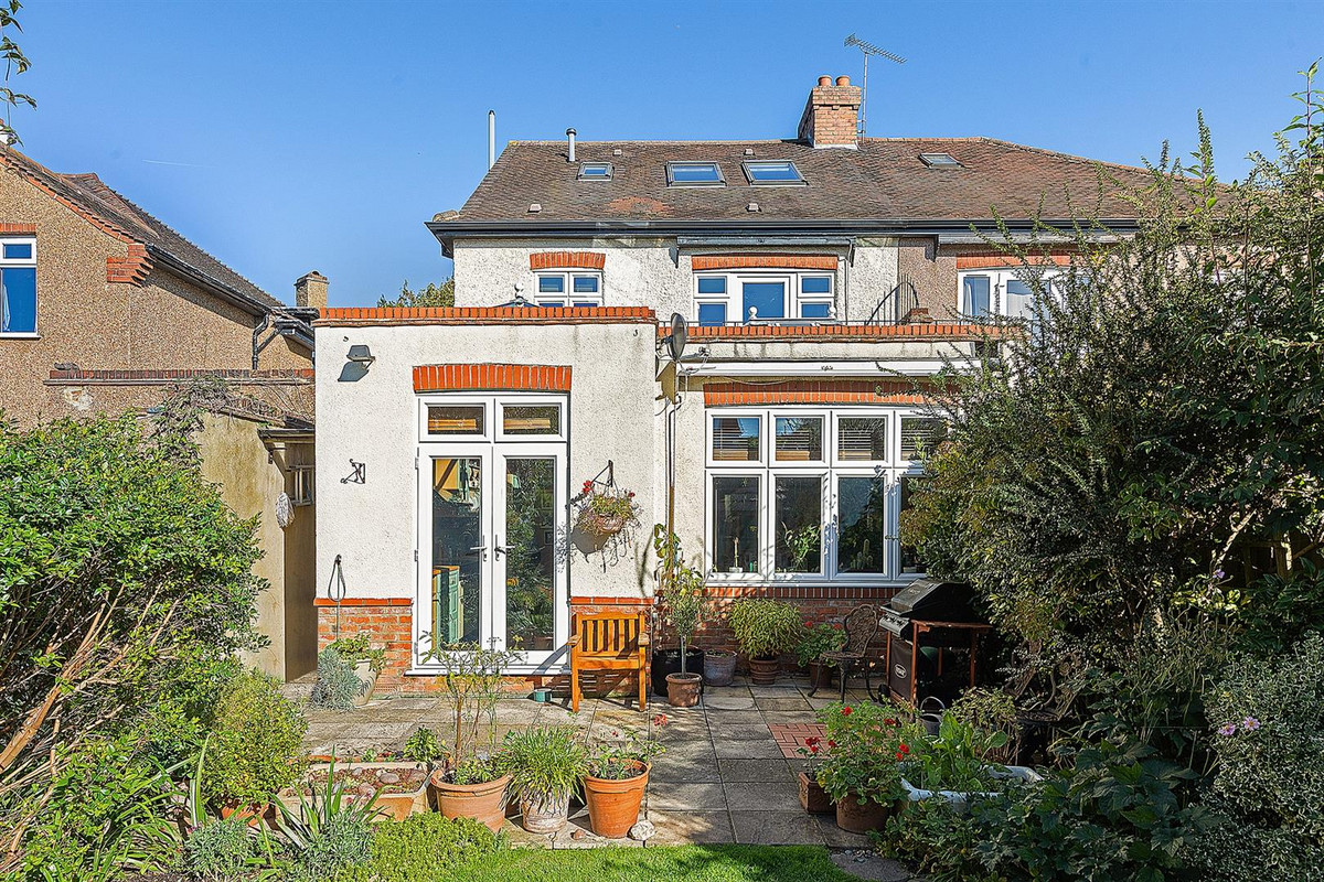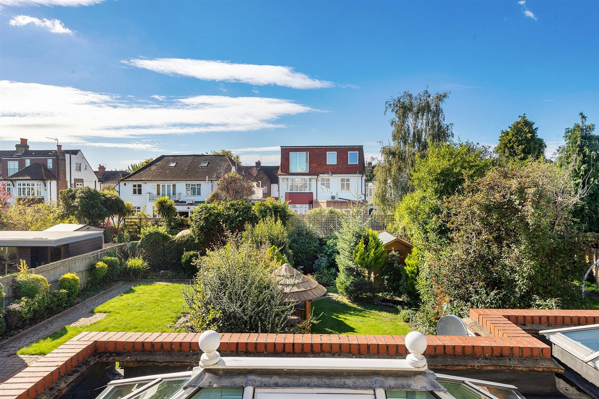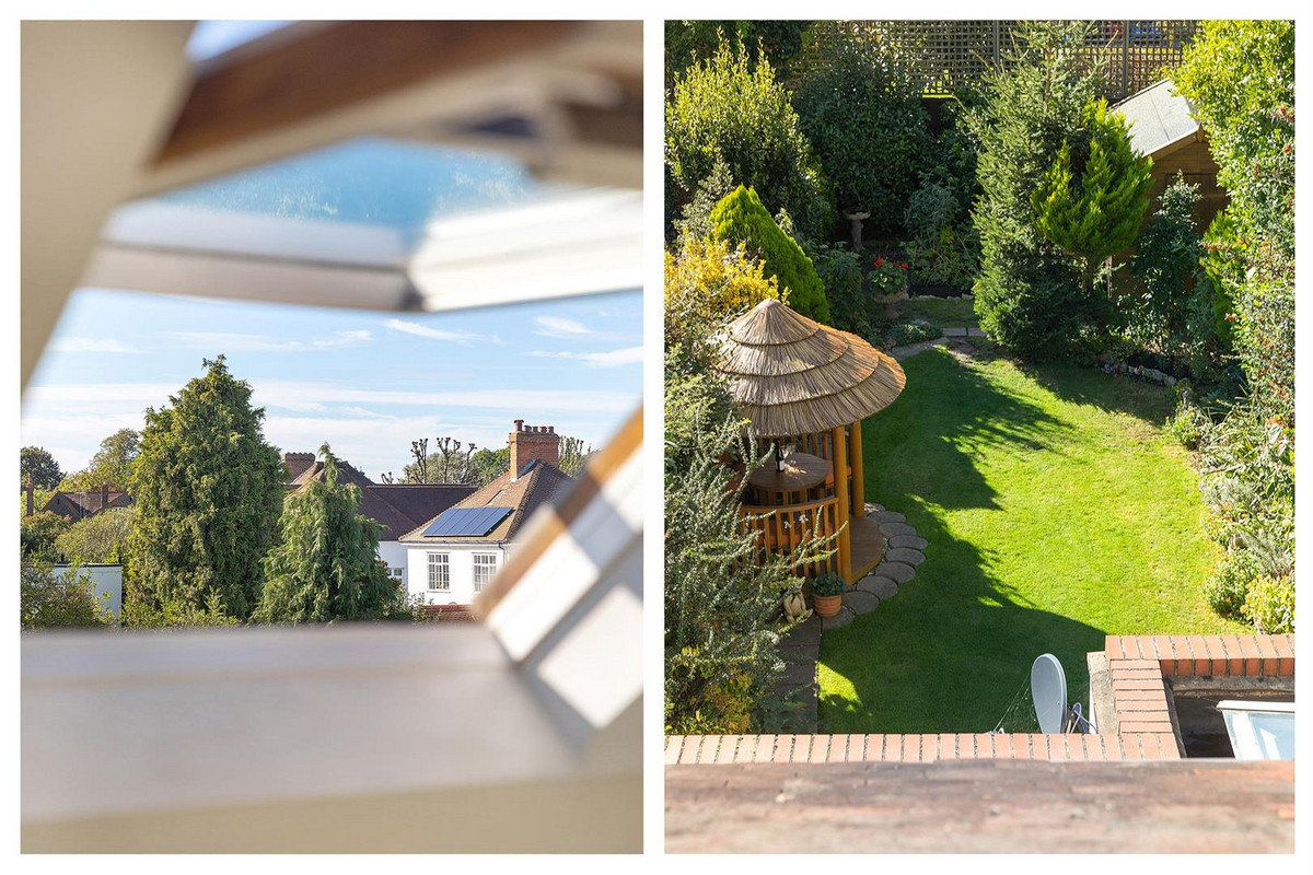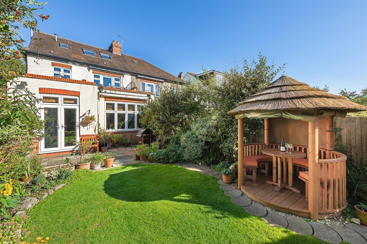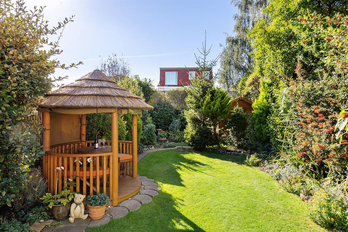 The front garden, bordered by a low wall and a hedge, is paved for off-street parking, and there is access along the side of the house to the rear garden. The well-tended, secluded rear garden faces south-west and features a terrace, lawn and borders planted with mature shrubs, and a Breeze House gazebo with electric heater. There is ample room at the end of the garden for a detached garden studio.
