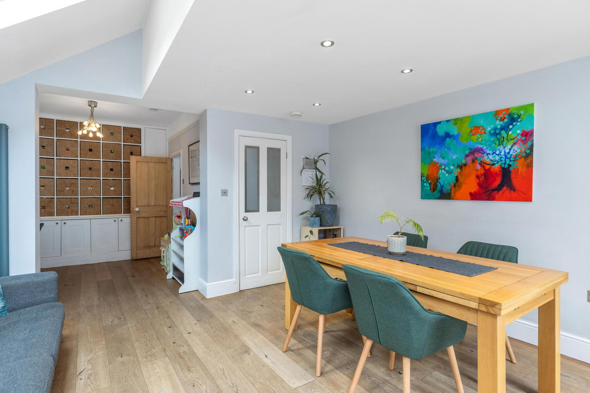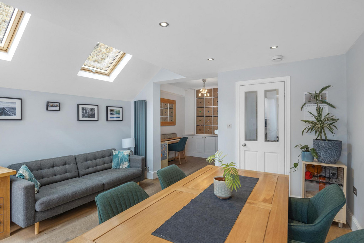 Upstairs, the first floor includes three well-proportioned bedrooms and a stylish family bathroom, while the top floor hosts a generous fourth double bedroom with ample eaves storage and an en-suite.