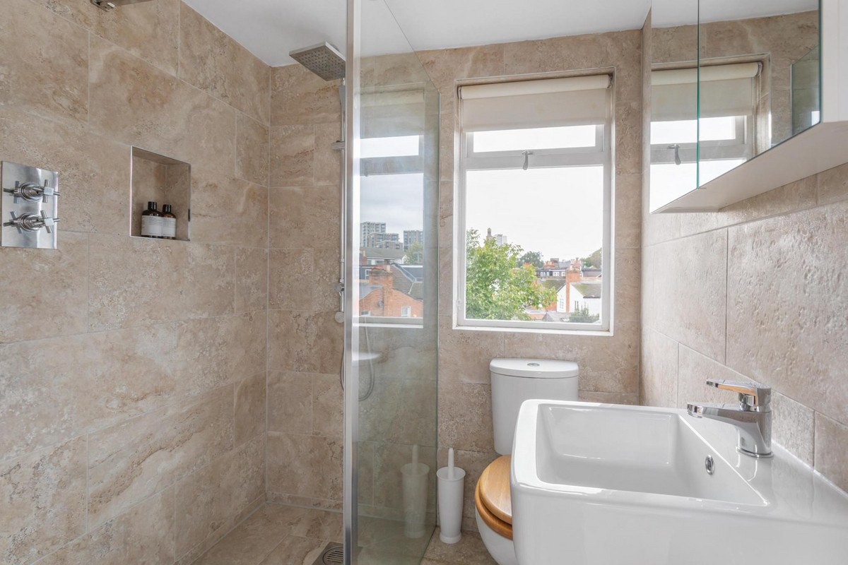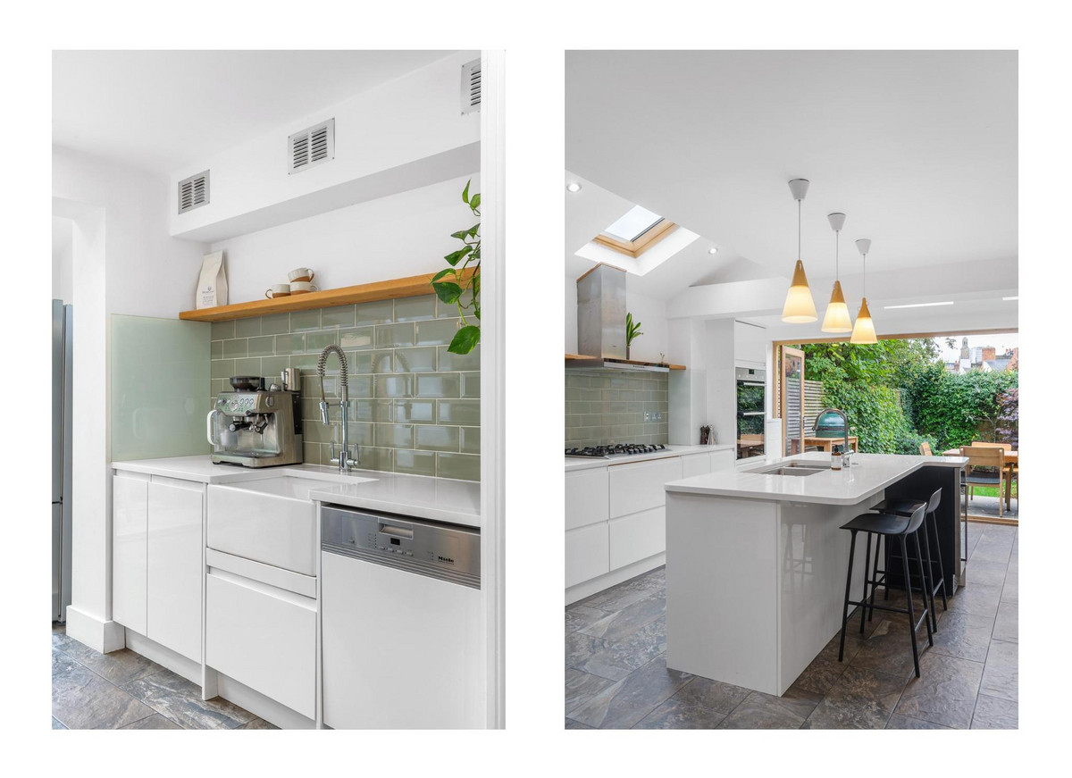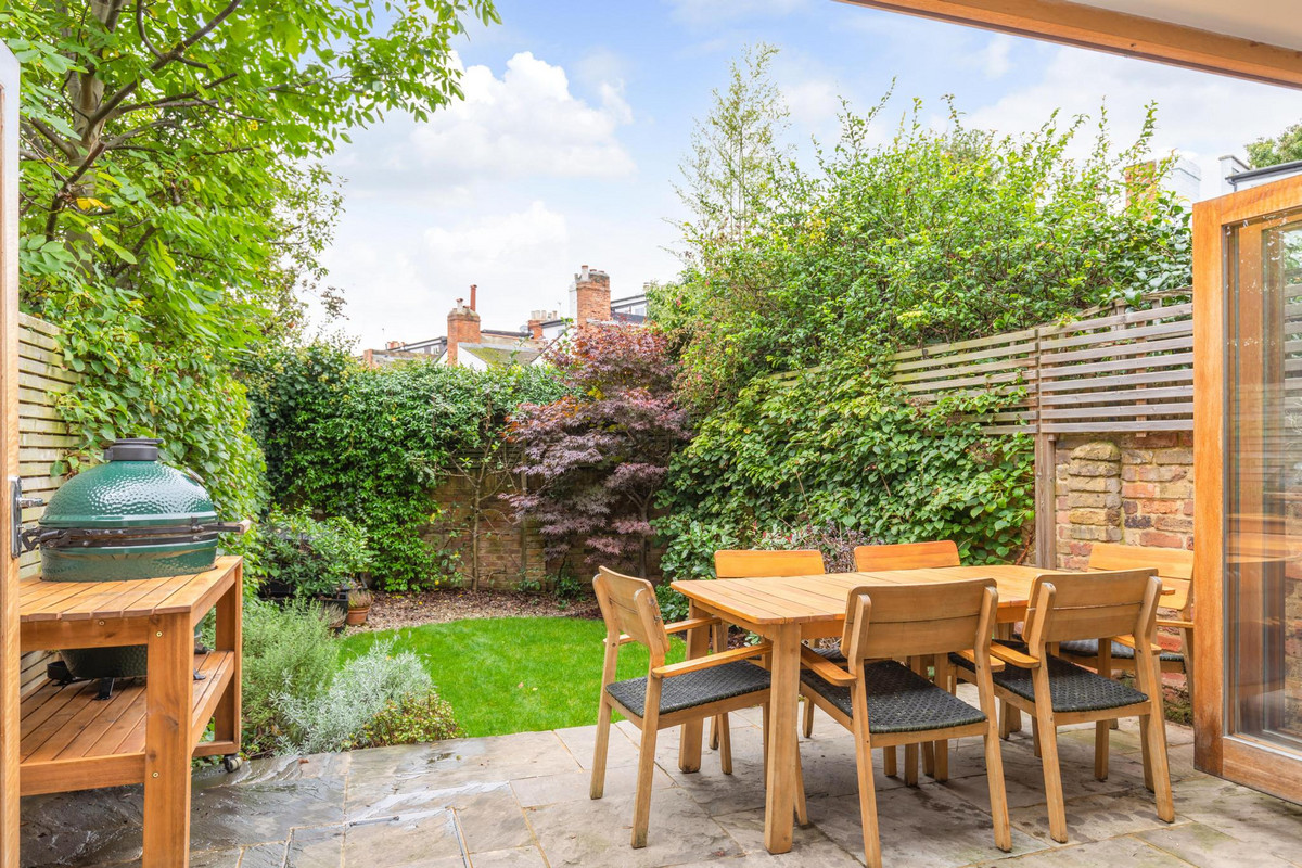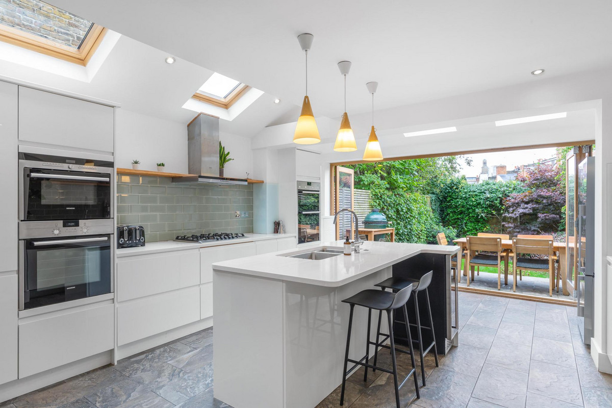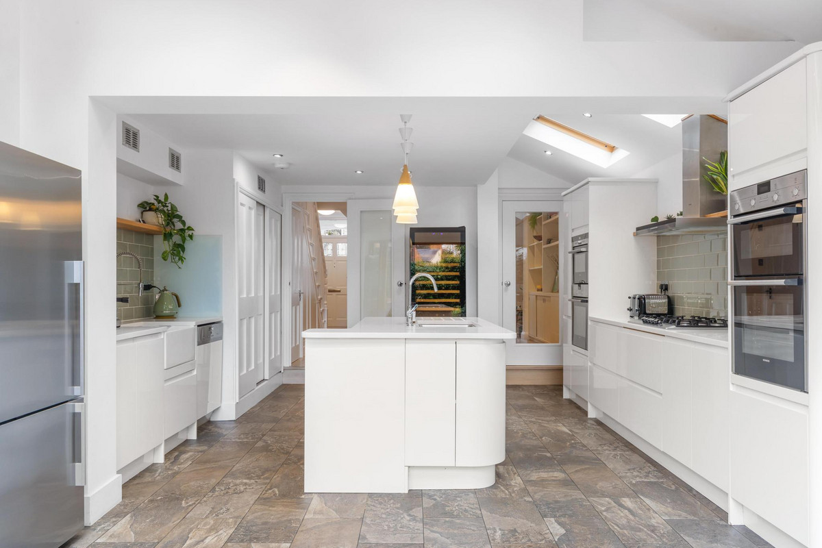 At the heart of the home lies a stunning extended kitchen/diner, thoughtfully designed to be both functional and welcoming. Anchored by a large, elegant island, this kitchen is perfect for meal preparation, casual dining, and gathering with family or friends. Flooded with natural light from the bi-fold doors, the space flows effortlessly into a well-sized, west-facing garden, ideal for al fresco dining and enjoying the warmth of the afternoon sun. The garden serves as a serene oasis, providing a peaceful escape from the bustle of city life.