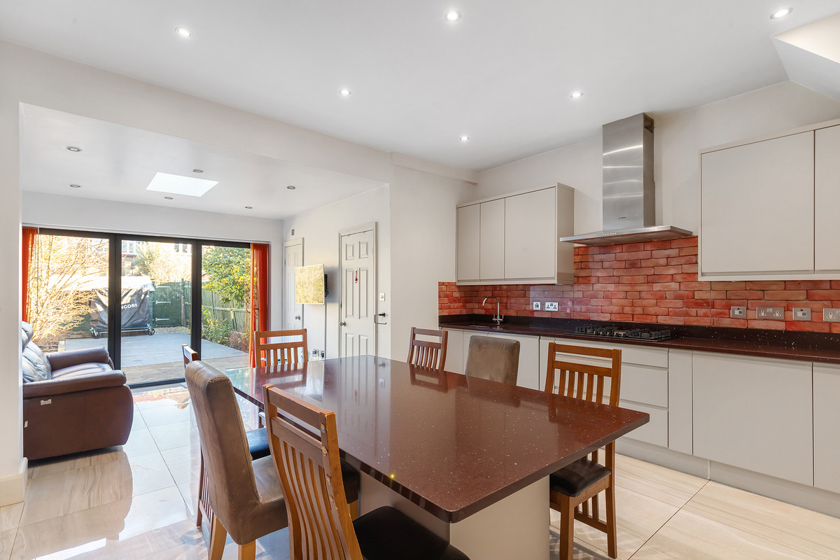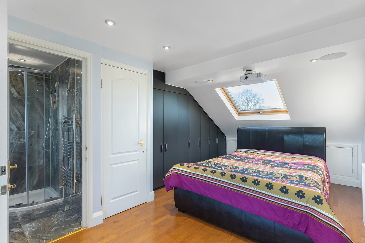 Venturing upstairs to the first floor, you'll discover three inviting bedrooms and a stylish family bathroom, all designed with comfort and functionality in mind. Ascending to the top floor, the loft conversion reveals a stunning view over the rooftops of Pitshanger making for a bright and spacious main bedroom featuring a generously proportioned en-suite shower room.