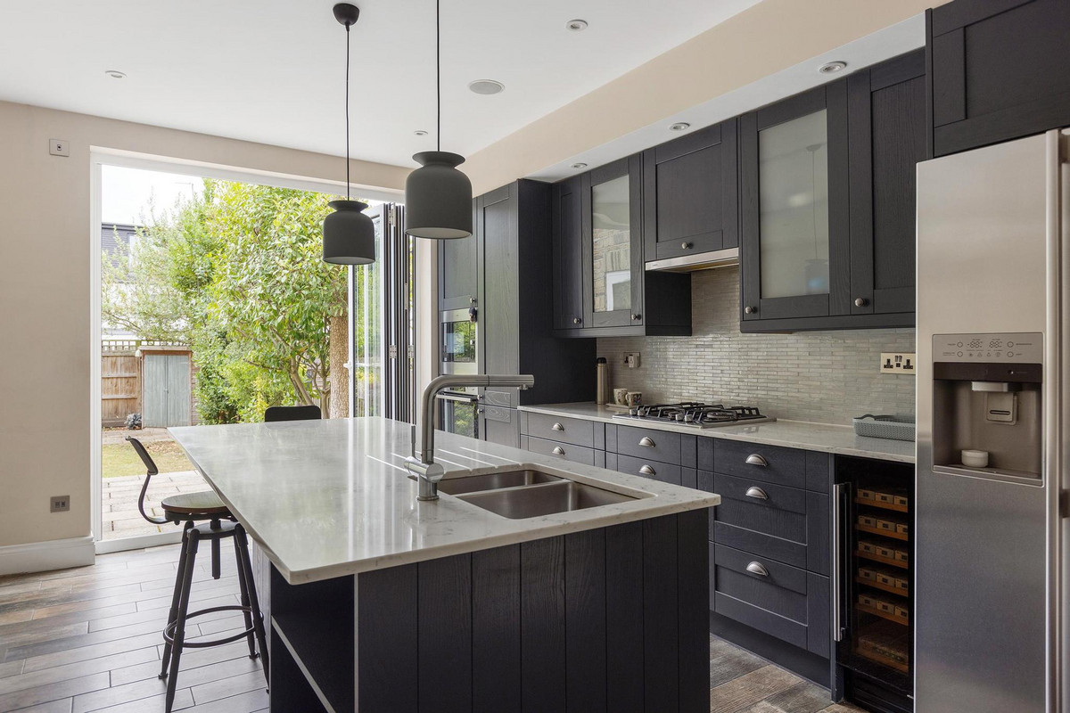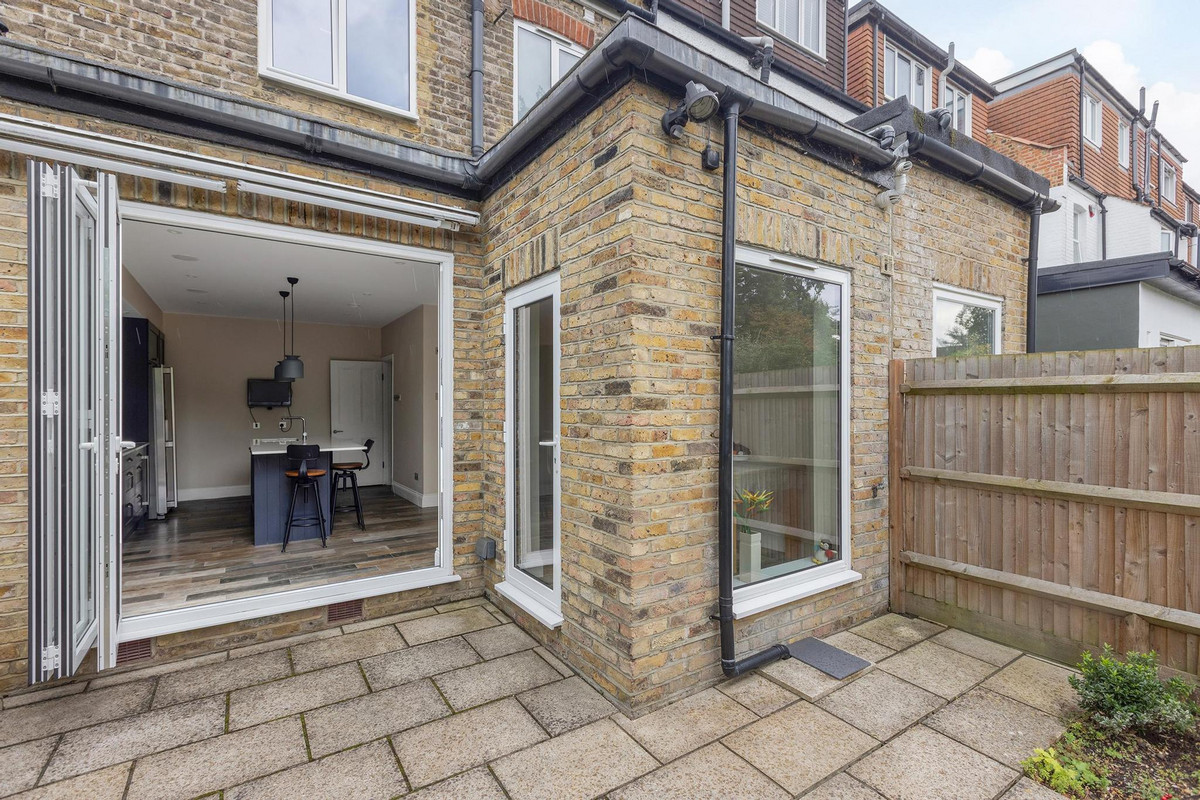 Set over three well-considered floors, the property has been thoughtfully arranged to balance period character with contemporary convenience. The ground floor has been beautifully opened to create a generous dual-aspect living and dining area, enhanced by underfloor heating and integrated ceiling speakers — perfect for both entertaining and day-to-day family living with bi fold doors opening onto a low maintenance, south west facing garden, the perfect spot for hosting summer BBQ with friends, or al fresco dinners with the family. A separate formal lounge and a ground floor WC further add to the functionality and comfort of the home.