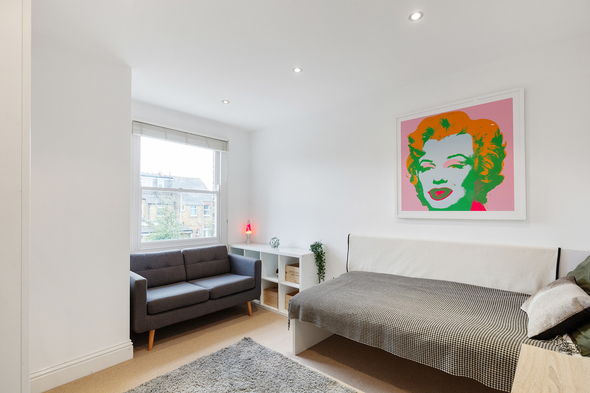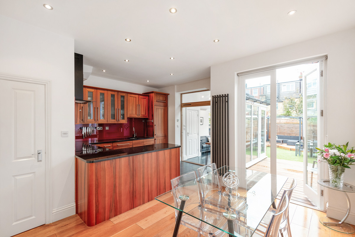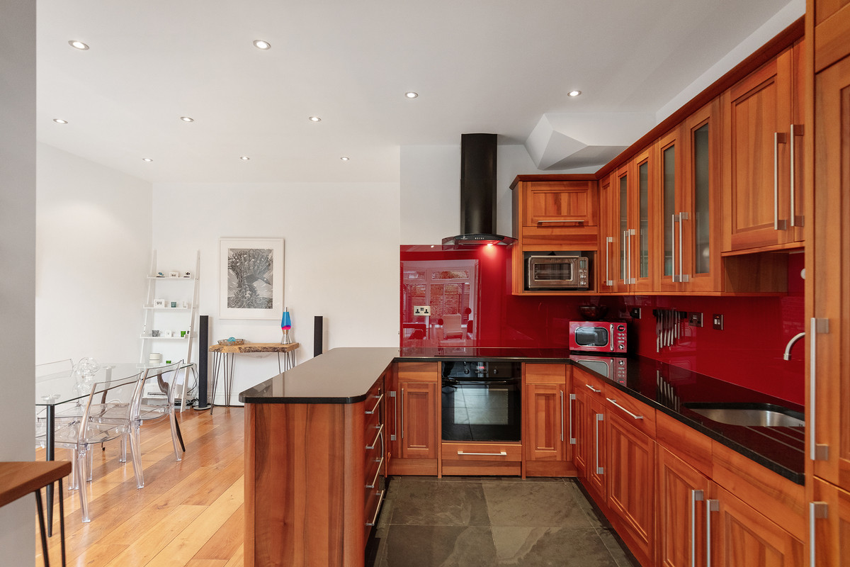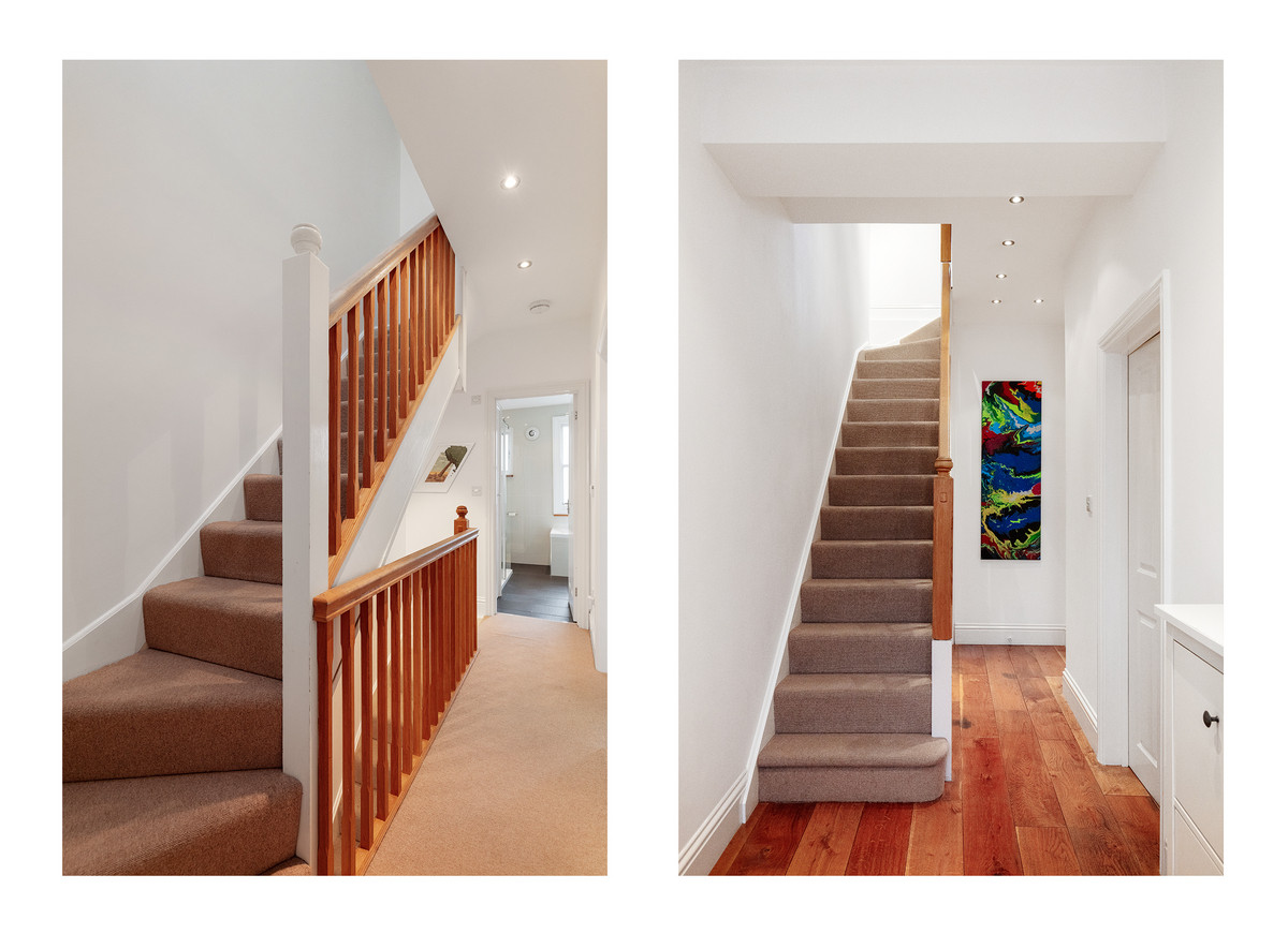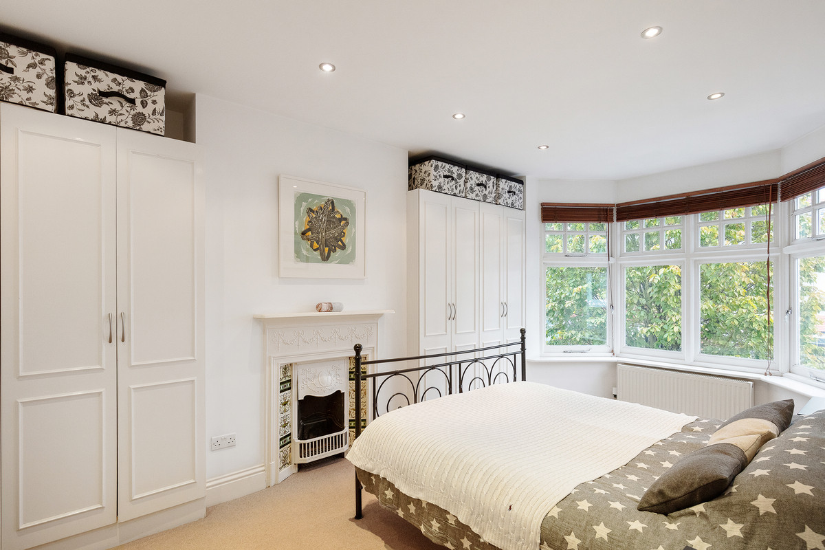 On the first floor, you'll find two well-proportioned bedrooms, along with a smaller room that could serve as an office or a child's room, complete with a double-glazed oriel bay window. The modern family bathroom on this level features underfloor heating and the top floor hosts a large bedroom with excellent head height, a stylish bathroom and plenty of eaves storage.