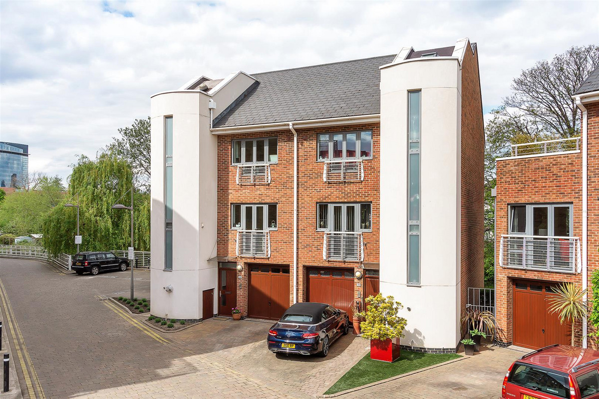 A unique contemporary townhouse in a sought-after waterfront location close to Brentford's regenerated town centre. The property, which is available with no onward chain, is set within a gated development with a concierge and has access to a large private driveway in addition to a garage. The property is accessed via a spacious entrance hall with access to the garage and a cloakroom. To the rear of the ground floor is a modern eat in kitchen with French windows leading to a waterfront garden. The whole first floor offers a spectacular open-plan living and entertaining space, with dining area. The second and third floor hosts the principle bedroom with an en suite bathroom and balcony with great views overlooking the river, as well as three additional bedrooms and a family bathroom.