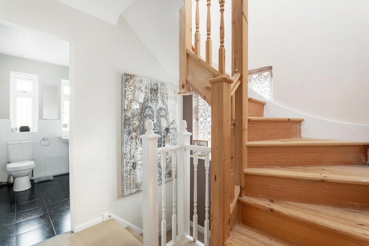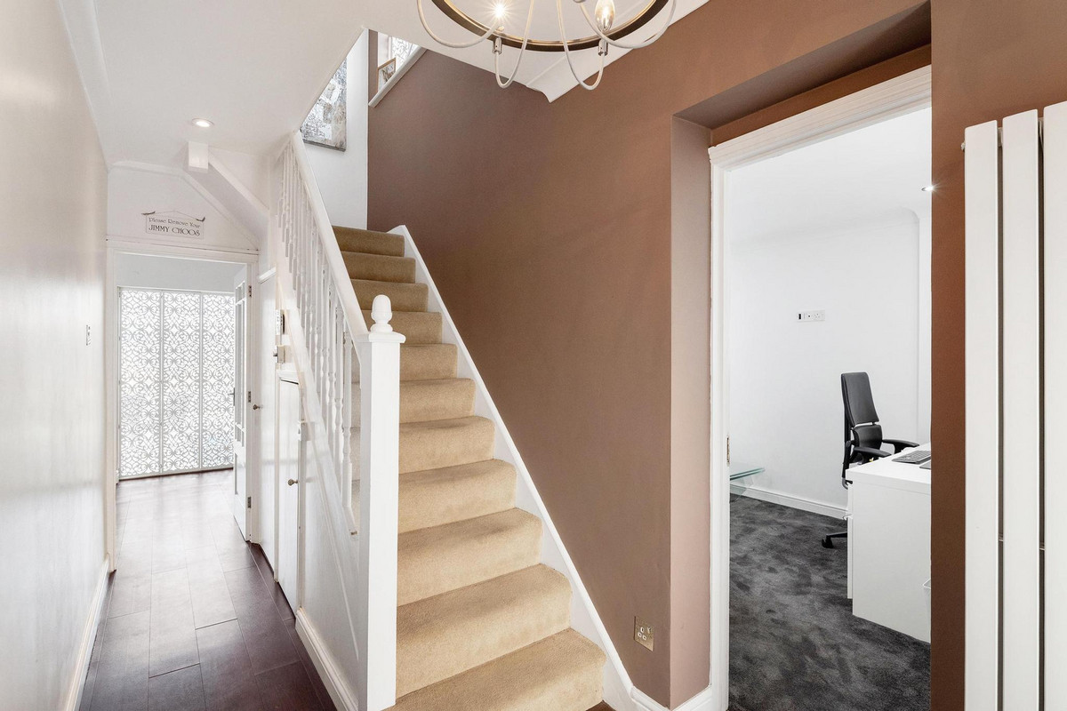 The ground floor welcomes you with an inviting hallway that leads to an array of versatile living spaces. The double reception room to a grand kitchen/dining area, serves as the heart of the home, ideal for both everyday living and entertaining. Complementing these areas is a guest room, a spacious bathroom, a study perfect to use as a home office and an integral garage. Each space is thoughtfully designed and bathed in natural light, enhancing the home’s warm and welcoming ambiance.