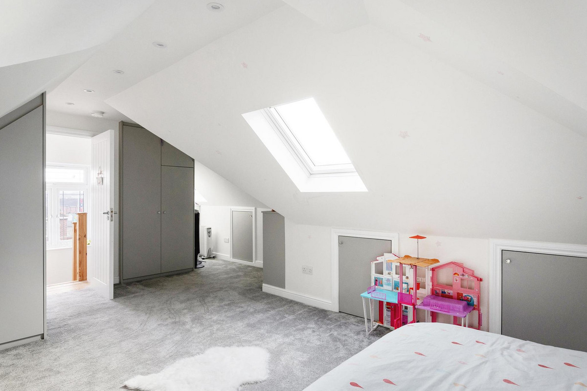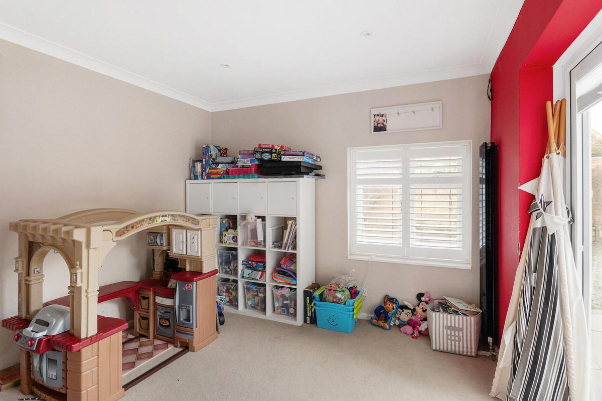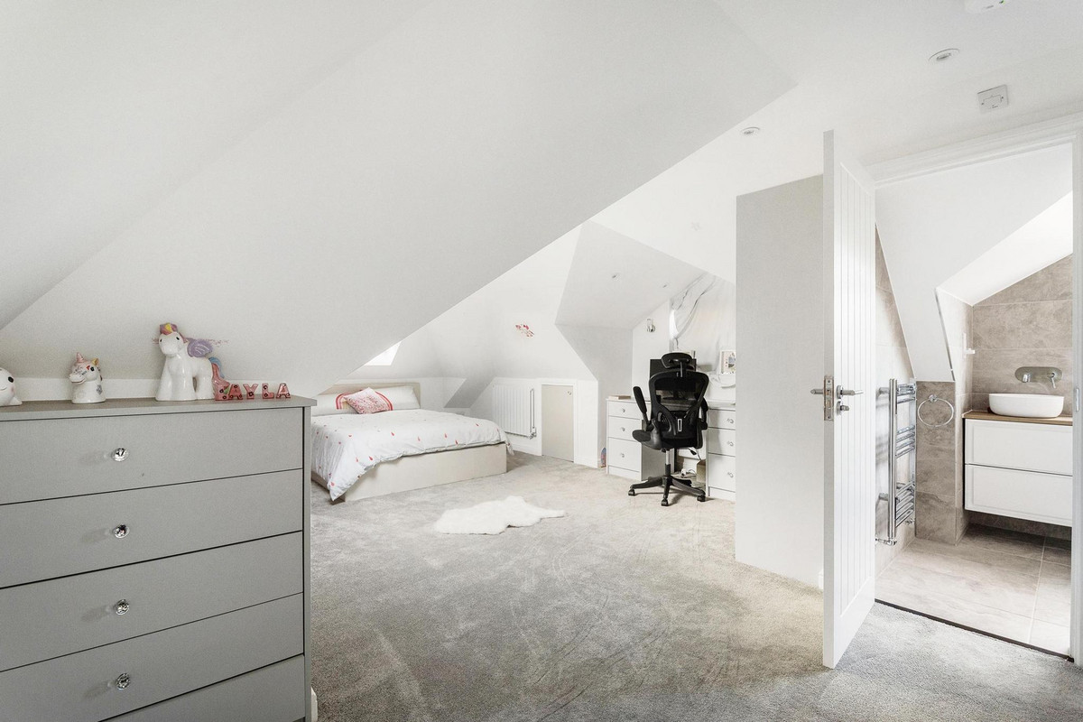 On the first floor, the master bedroom stands out with its dressing room and luxurious en-suite shower room. Three additional bedrooms and a well-appointed family bathroom ensure ample accommodation for growing families. The second floor reveals a fifth bedroom complete with its own en-suite bathroom featuring a beautiful free standing bath and convenient eaves storage, offering a private retreat for guests or older children.