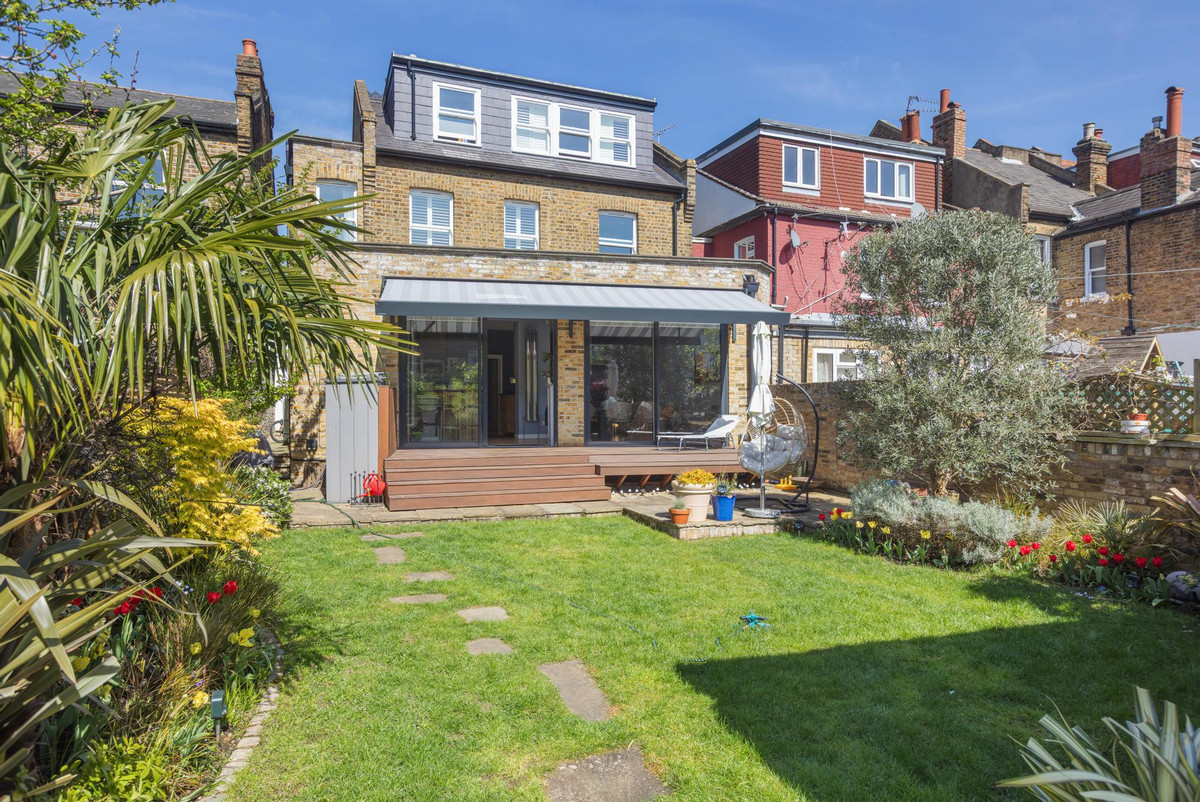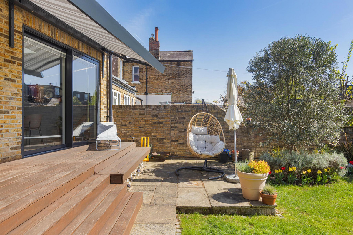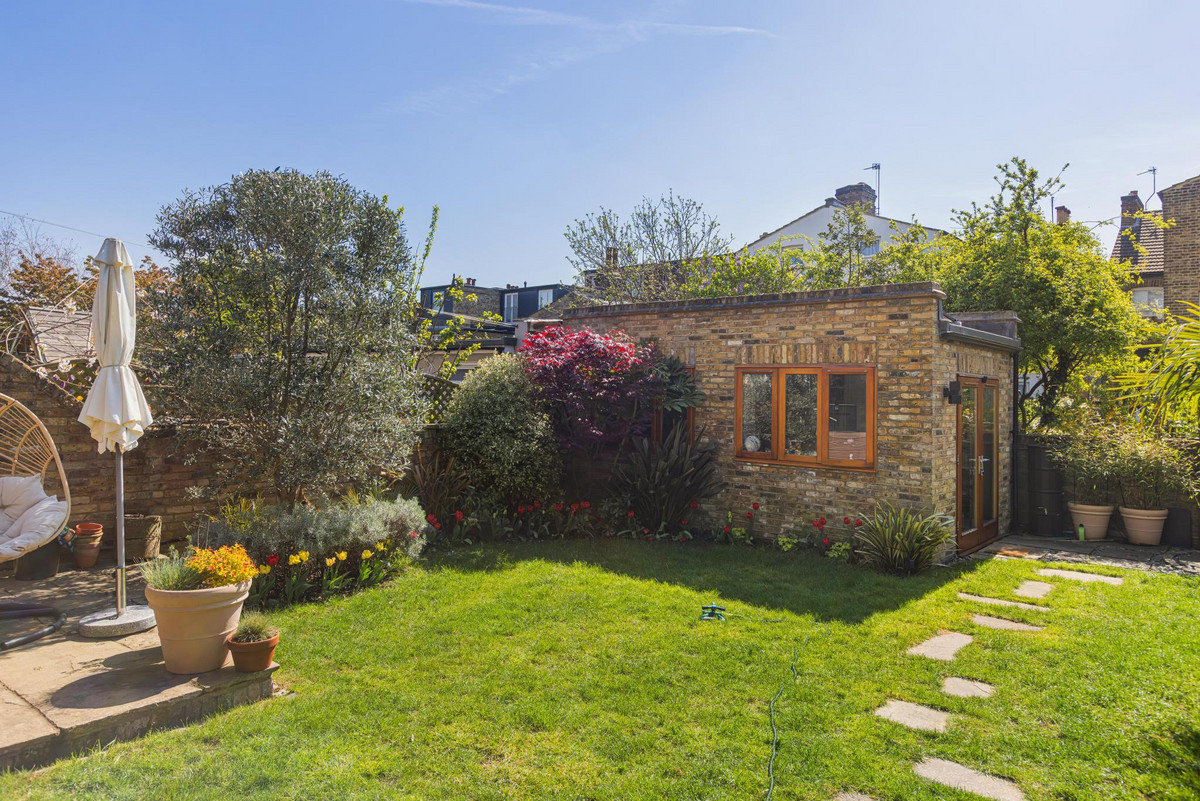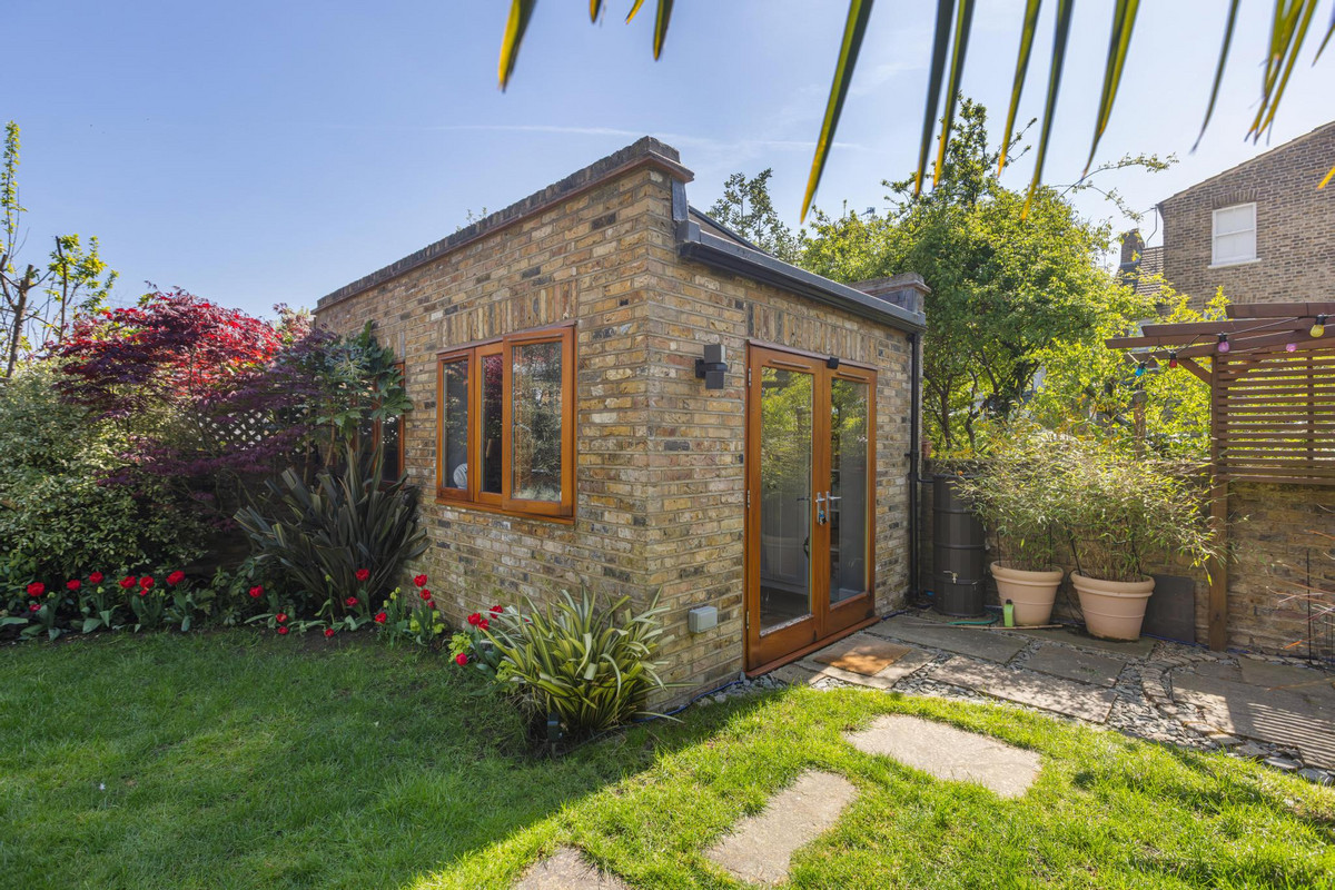 Externally, the house is equally appealing. To the front, the property enjoys a landscaped garden with off-street parking for a couple of cars. The rear garden is a real highlight—south-facing and beautifully maintained, it offers a private oasis perfect for both relaxing and entertaining. A raised decked terrace provides an ideal spot for al fresco dining, leading down to a patio area and a pristine lawn, bordered by mature planting and trees that provide both colour and privacy throughout the seasons. A secluded seating area under a pergola offers a peaceful retreat, and a brick-built garden studio at the end of the garden presents an excellent space for a home office, gym, or creative studio.