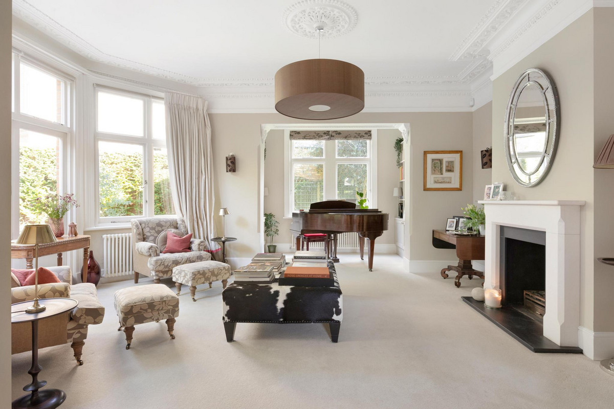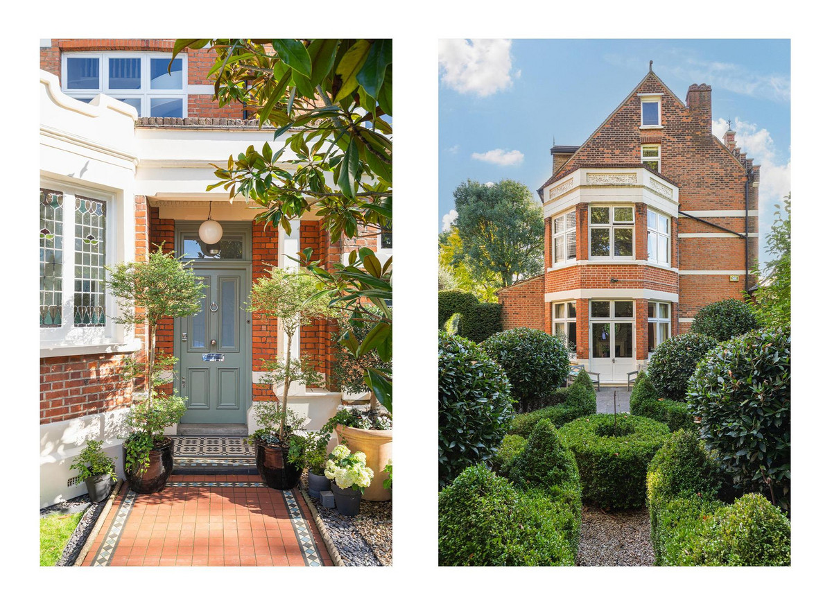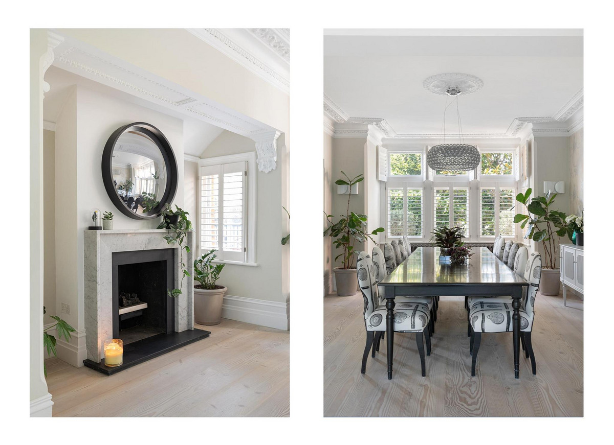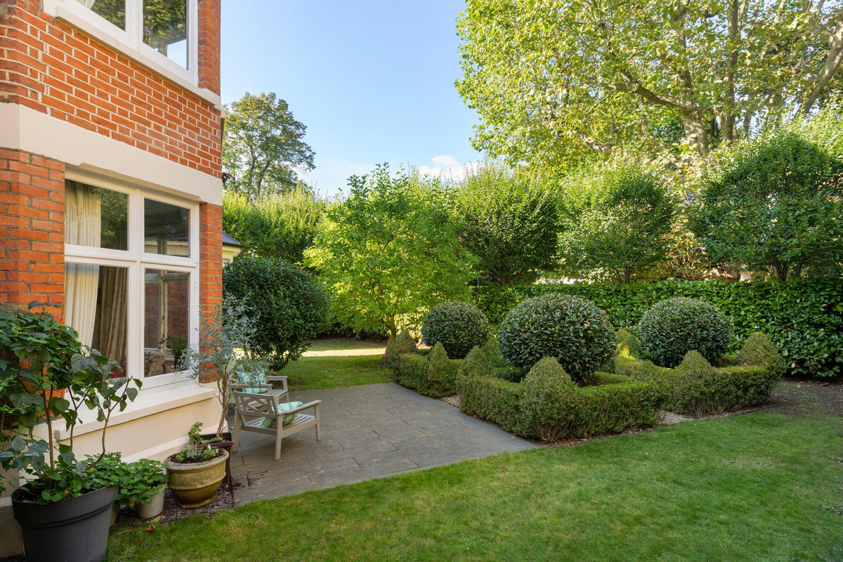 This stunning five-bedroom residence offers an expansive and elegantly designed living space, meticulously extended and finished to the highest standards by the current owner. Behind the striking green front door, the ground floor entrance hall welcomes you with a charming feature fireplace and the timeless elegance of original black and white marble flooring. To the left, a reception room boasts a working fireplace, shuttered bay windows, and direct access to the beautifully landscaped parterre garden.