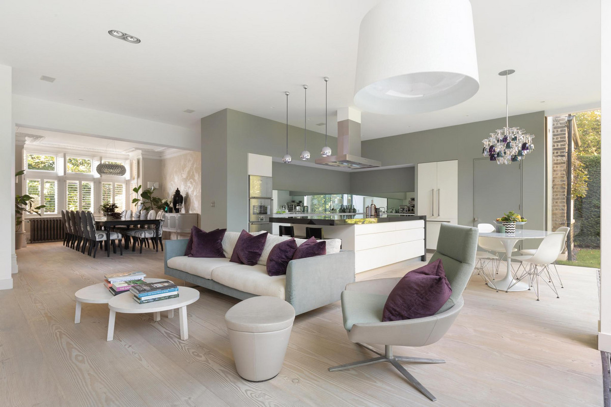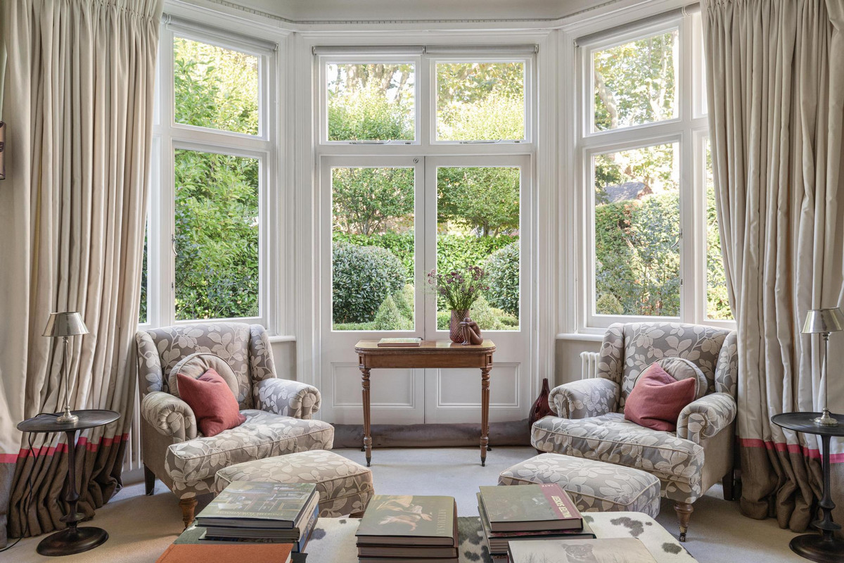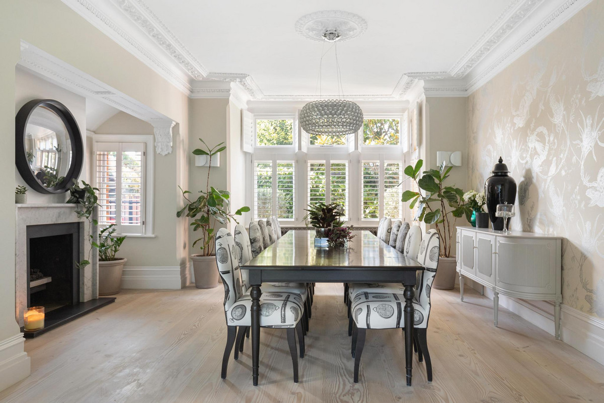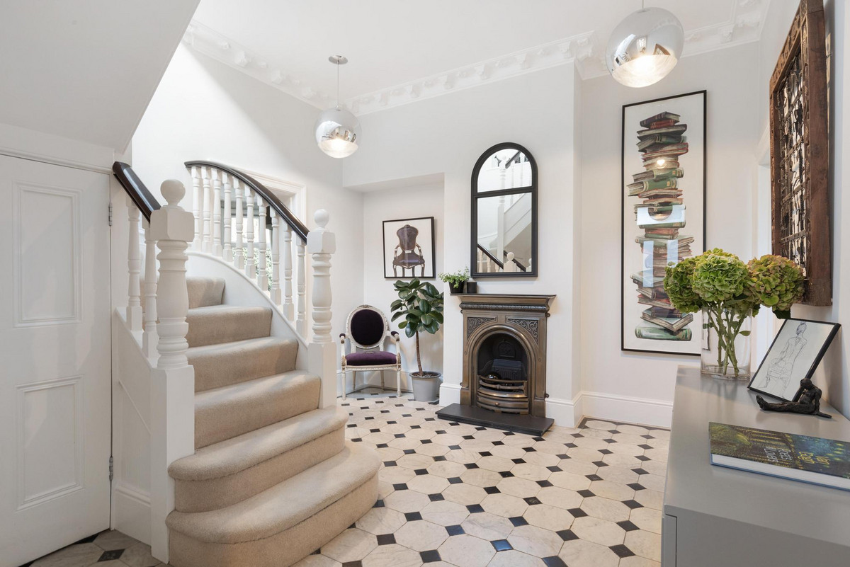 This stunning five-bedroom residence offers an expansive and elegantly designed living space, meticulously extended and finished to the highest standards by the current owner. Behind the striking green front door, the ground floor entrance hall welcomes you with a charming feature fireplace and the timeless elegance of original black and white marble flooring. To the left, a reception room boasts a working fireplace, shuttered bay windows, and direct access to the beautifully landscaped parterre garden.