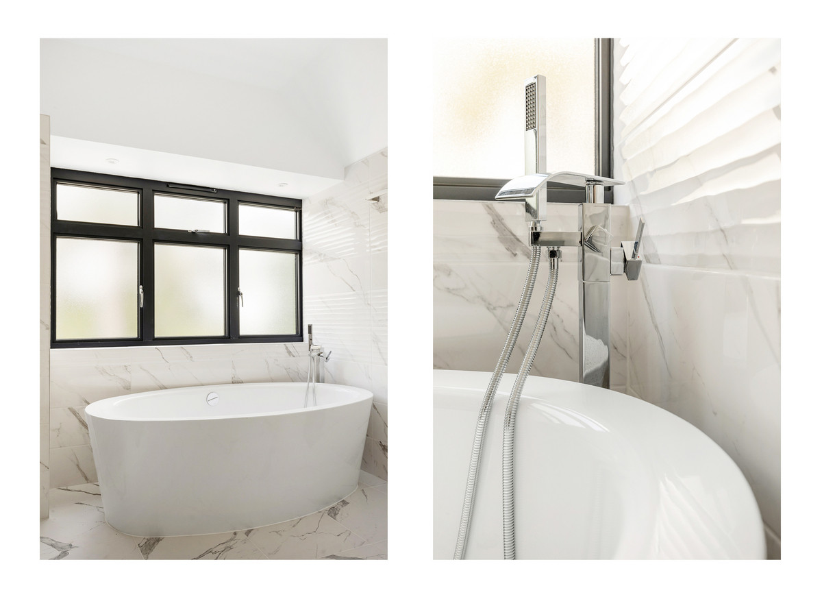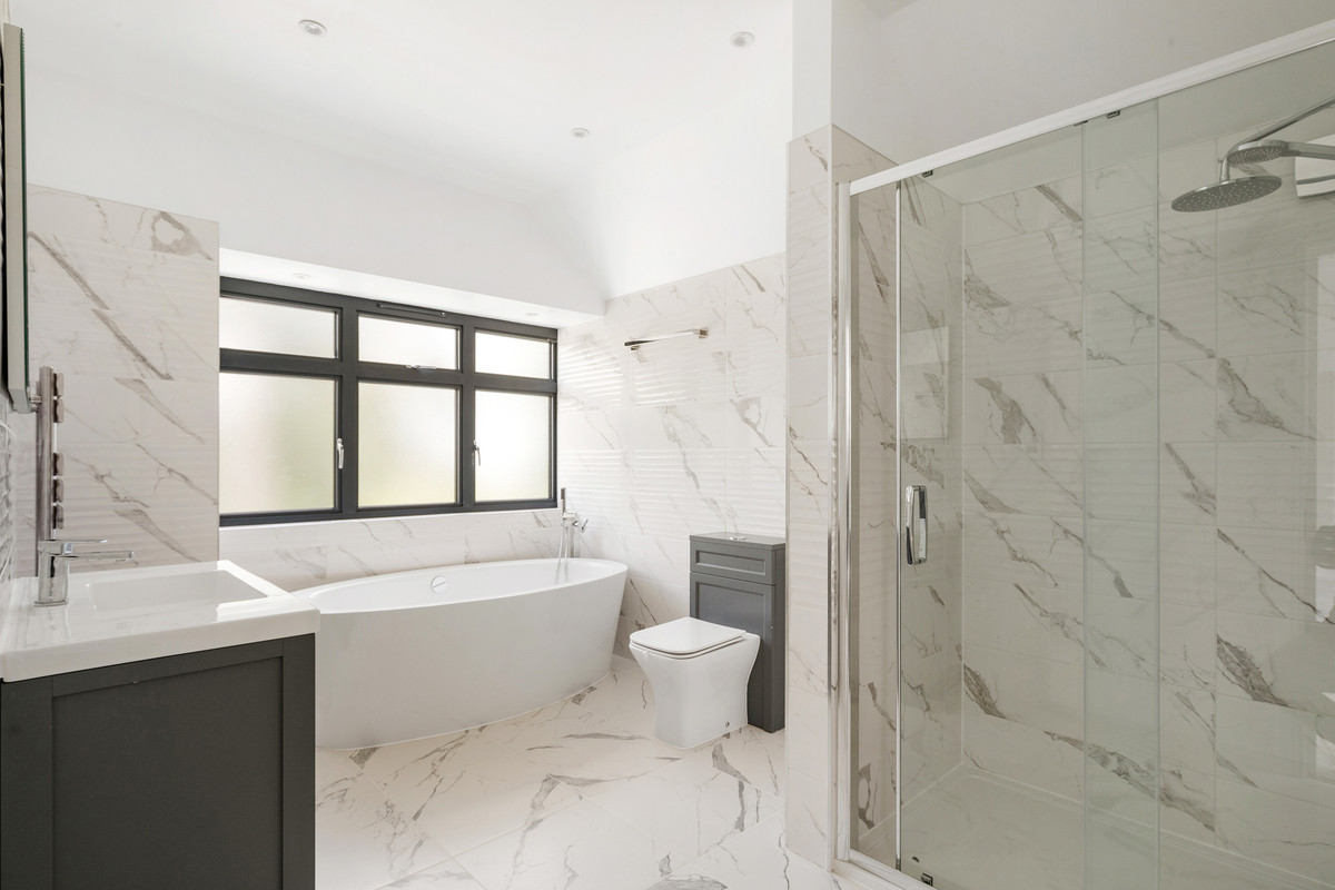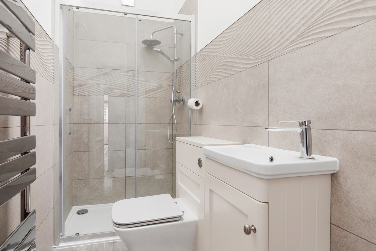 The second floor houses the principal bedroom which is flooded with natural light via the velux windows, boasts extensive storage with additional use of the eaves, and a large en-suit bathroom with both a shower and bathtub.