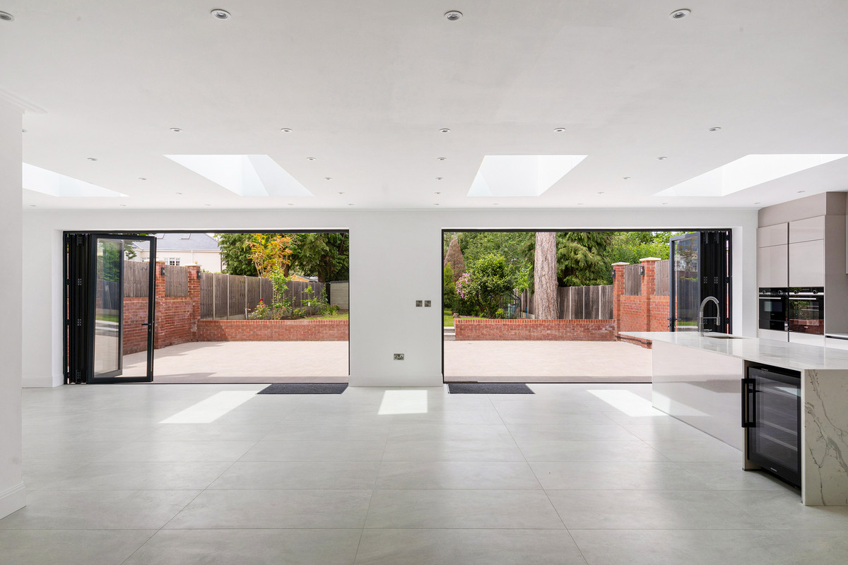 The reception is semi-open plan with the kitchen-diner and towards the rear of the property, you will find a fully fitted eat in kitchen-diner, informal lounge area, as well as wall to wall bi-folding doors leading out to the 250 ft + west-facing garden. Additionally on this floor you will find a garage, ample storage, a utility room and guest cloakroom.