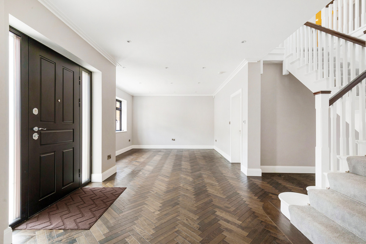 Upon entering this double fronted new build home, you are greeted with an expansive entrance hall, spanning the width of the property. From here, you can access every corner of the property and to the left, you enter the reception room. Whilst this is a new build home, the owner has implemented a level of character with Herringbone flooring throughout the ground floor, intricate cornicing, and a feature fireplace in the reception.