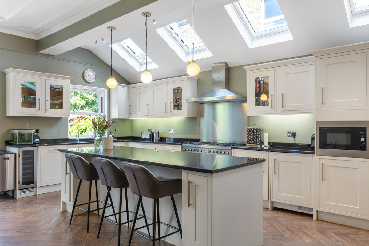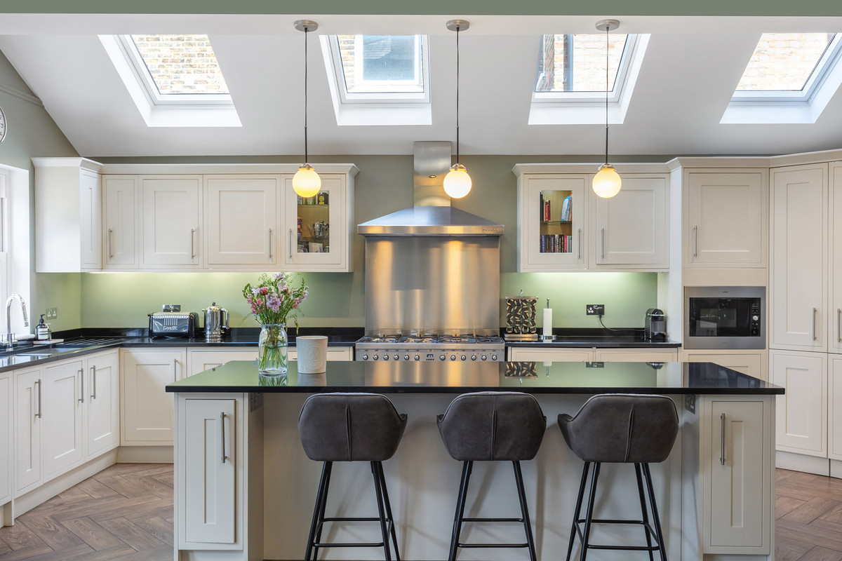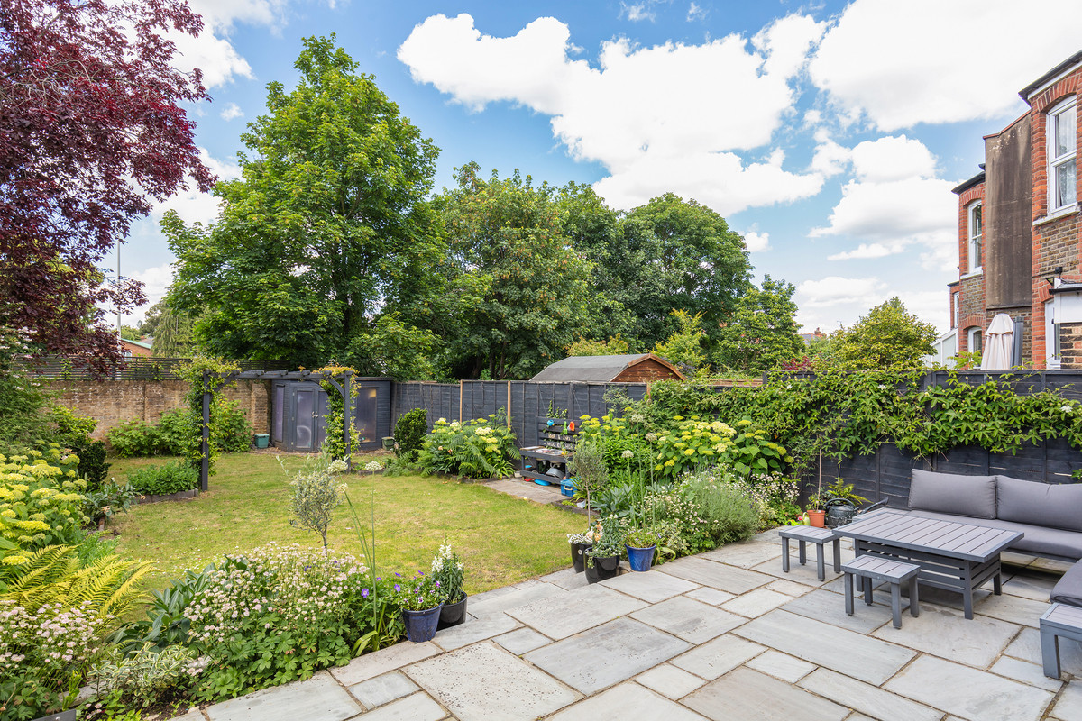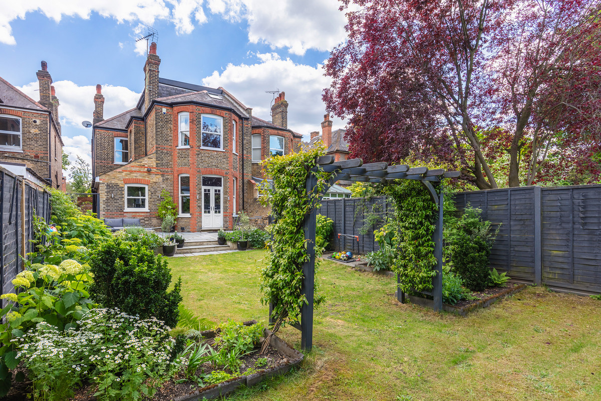Upon entering, you are greeted by a grand entrance hall that sets the tone for the rest of the home. The ground floor boasts two beautifully appointed reception rooms, each featuring original period details such as high ceilings, ornate cornices, and feature fireplaces, evoking a sense of grandeur and historical charm. The vast kitchen and dining area is a true highlight, designed for both family living and entertaining, with state-of-the-art appliances, bespoke cabinetry, and an abundance of natural light streaming through large windows and French doors that open onto the beautifully landscaped garden. The garden is one of many highlights to this beautiful family home, spanning nearly 60ft its offers a great sense of space given you are not overlooked and offers versatility with a large paved terrace, perfect for family gatherings, or al fresco dining and then large grassed area ideal for the little ones running around.