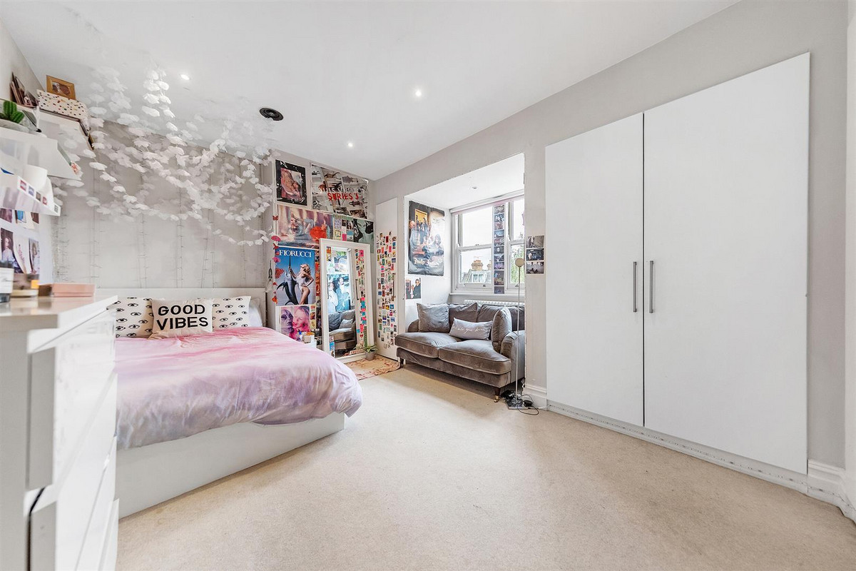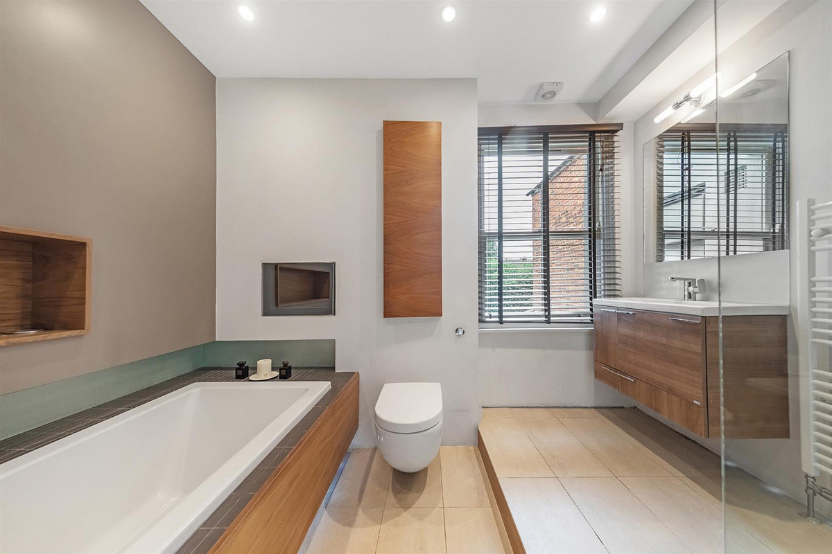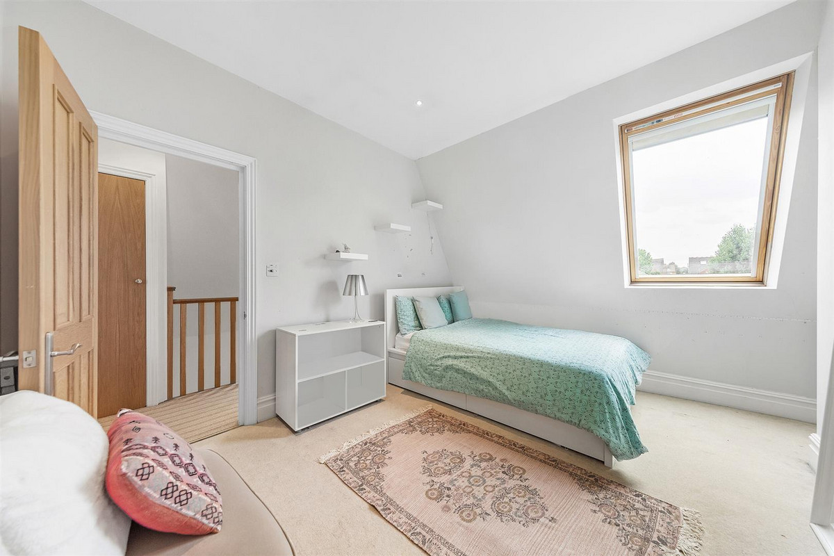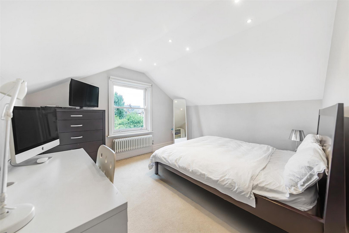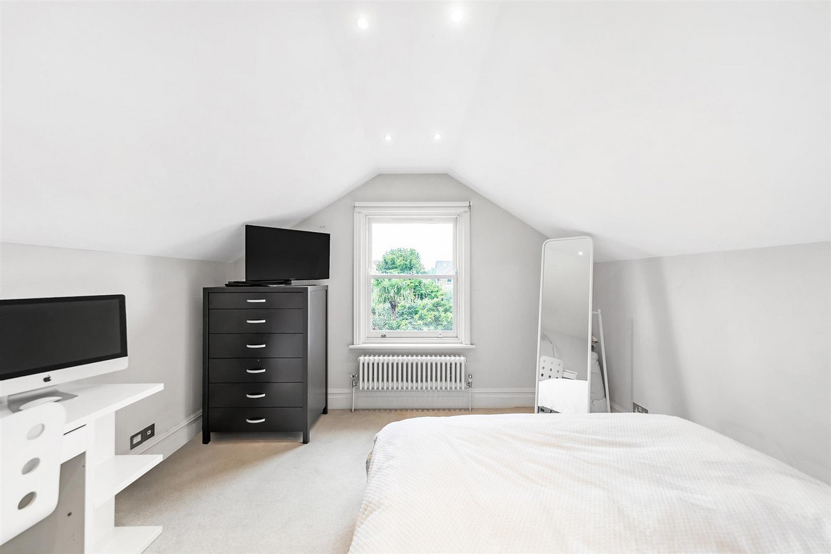 On the ground floor are three living areas, all arranged semi-open plan. The wide entrance hall leads to the living room at the front, the kitchen at the rear and also the guest cloakroom and utility room. The front living room has a grand fireplace, fitted shelves and a box bay with sash windows overlooking the front garden. The living room flows into the dining room, which has a matching fireplace, and wooden flooring unites the two spaces. The centrepiece of the house is the 27 ft kitchen, extended to both sides with dramatic skylights which bathe the space in natural light. A wealth of fitted kitchen units house integrated appliances and extensive storage, while a large island unit provides an opportunity for casual dining. There is ample room in the kitchen for secondary living and dining spaces, and sliding doors give a broad connection to the garden.||The main bedroom suite occupies the full width of the front of the house and comprises the bedroom, two dressing areas and a luxury en suite bathroom with inset bath, wall-mounted television and walk-in rainfall shower. The first floor is completed by another double bedroom, which overlooks the garden, and a separate bathroom. Three further double bedrooms, two with fitted wardrobes, and a bathroom are set on the second floor.||The property is presented in immaculate decorative condition, and features Lutron lighting controls and an integrated speaker system throughout. The ground floor and all bathrooms benefit from underfloor heating, while all bedrooms are carpeted.||The landscaped front garden is bordered by railings and an established hedge and provides space for off street parking, while a mature tree offers privacy. To the rear, a terrace by the kitchen leads to a lawn, and beyond that a cleverly designed outdoor room with decked floor, surrounded by mature trees and shrubs. The garden is not overlooked and enjoys an open westerly aspect.