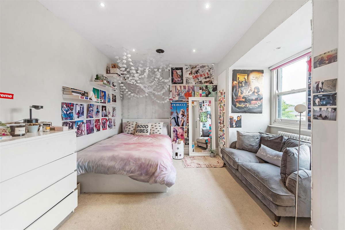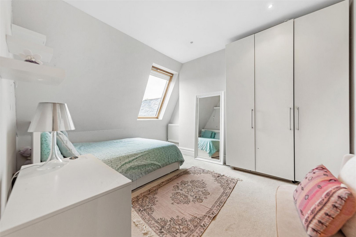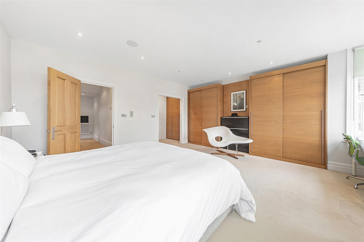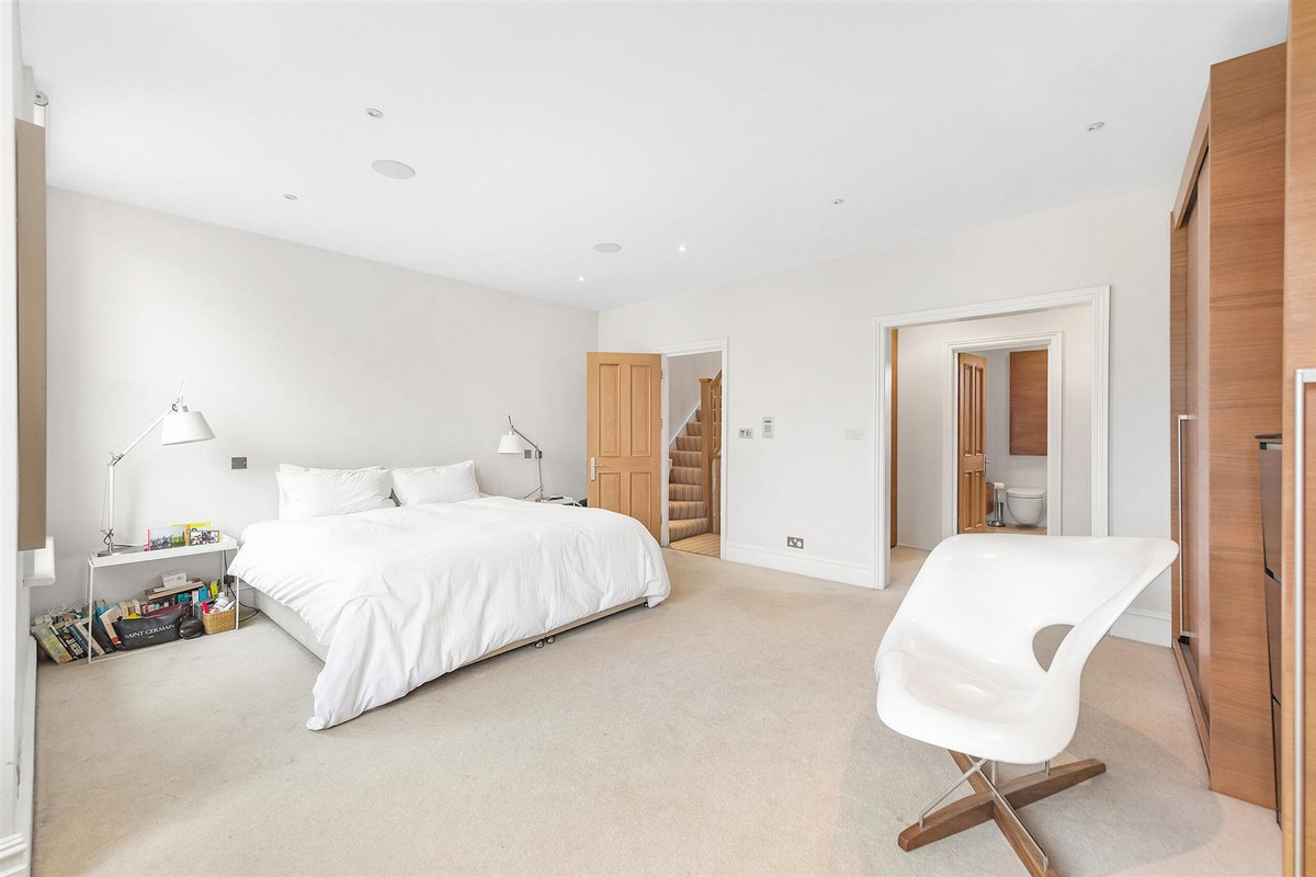 The main bedroom suite occupies the full width of the front of the house and comprises the bedroom, two dressing areas and a luxury en suite bathroom with inset bath, wall-mounted television and walk-in rainfall shower. The first floor is completed by another double bedroom, which overlooks the garden, and a separate bathroom. Three further double bedrooms, two with fitted wardrobes, and a bathroom are set on the second floor.