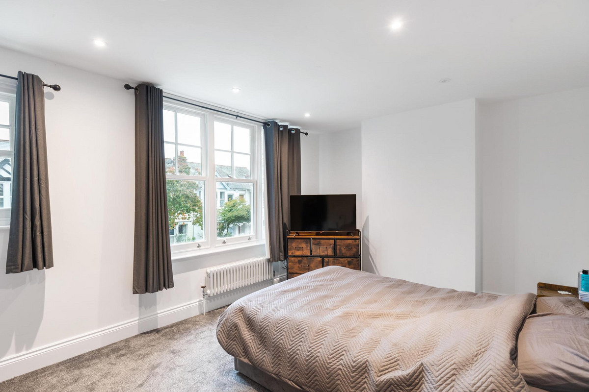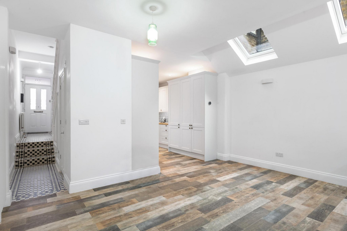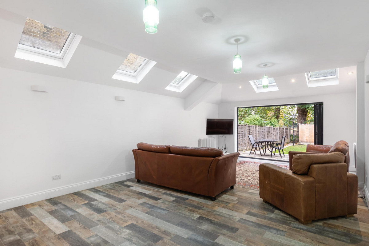 A standout feature is the expansive 50ft garden, accessible directly from the reception room through elegant bi-fold doors. This seamless indoor-outdoor connection floods the space with natural light and makes the garden a perfect spot for entertaining or simply relaxing while enjoying the stunning park views. The garden, along with the principal rooms, offers uninterrupted views of Lammas Park, and sunsets over this serene setting truly must be seen.